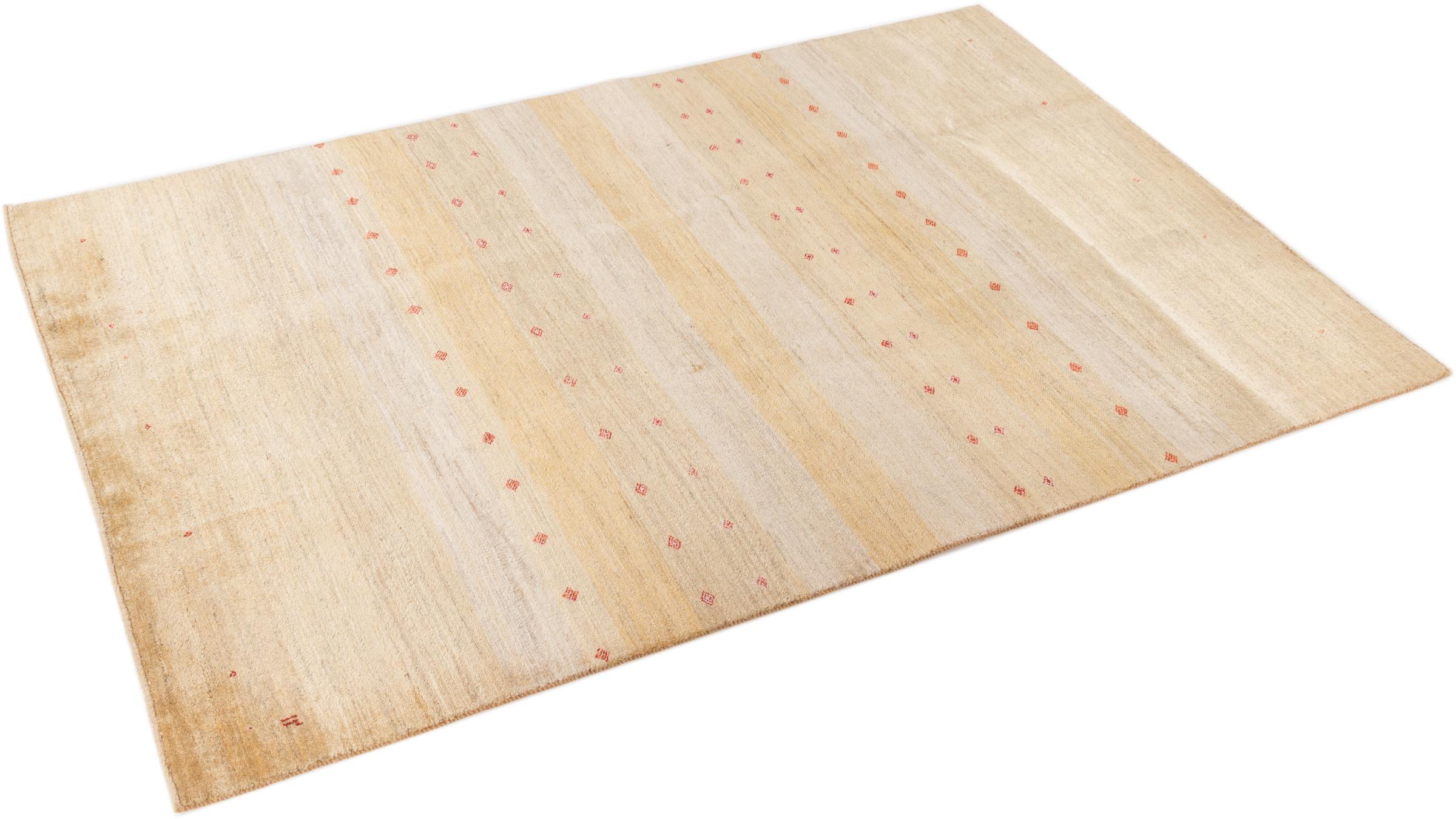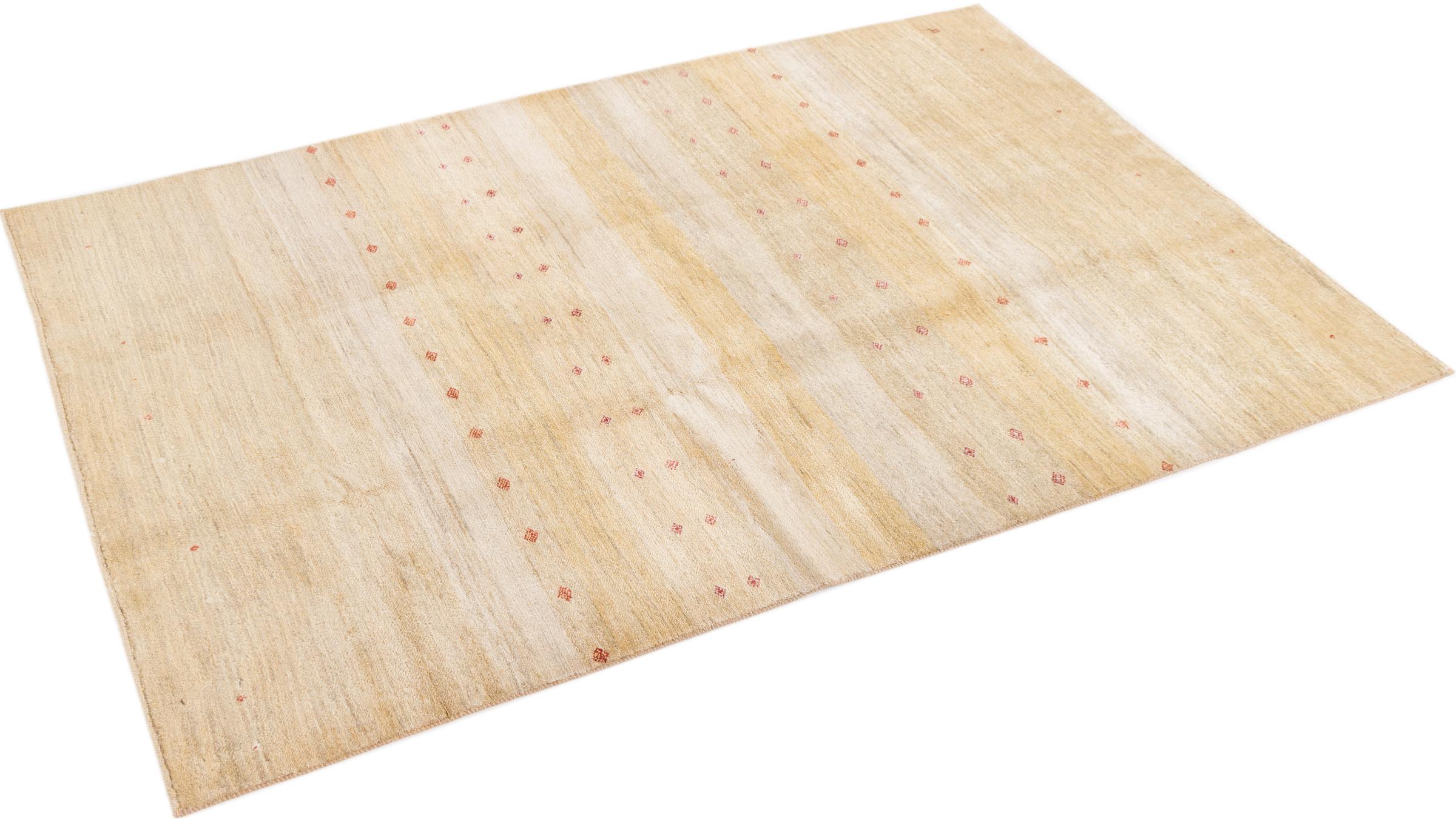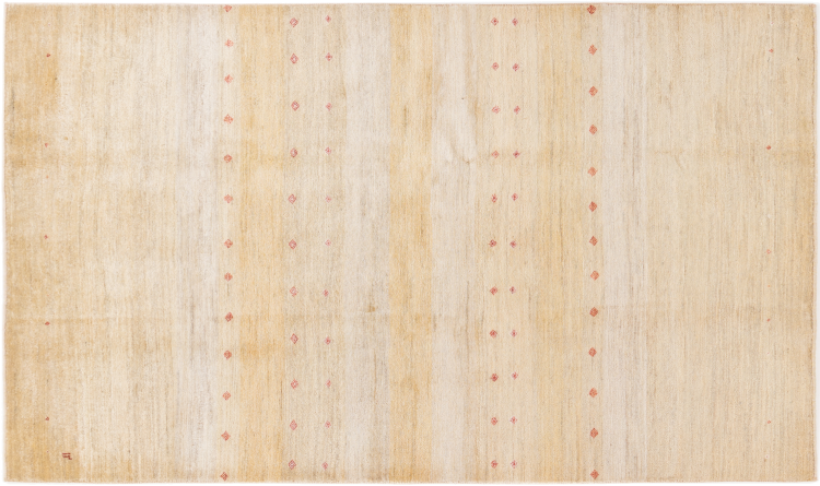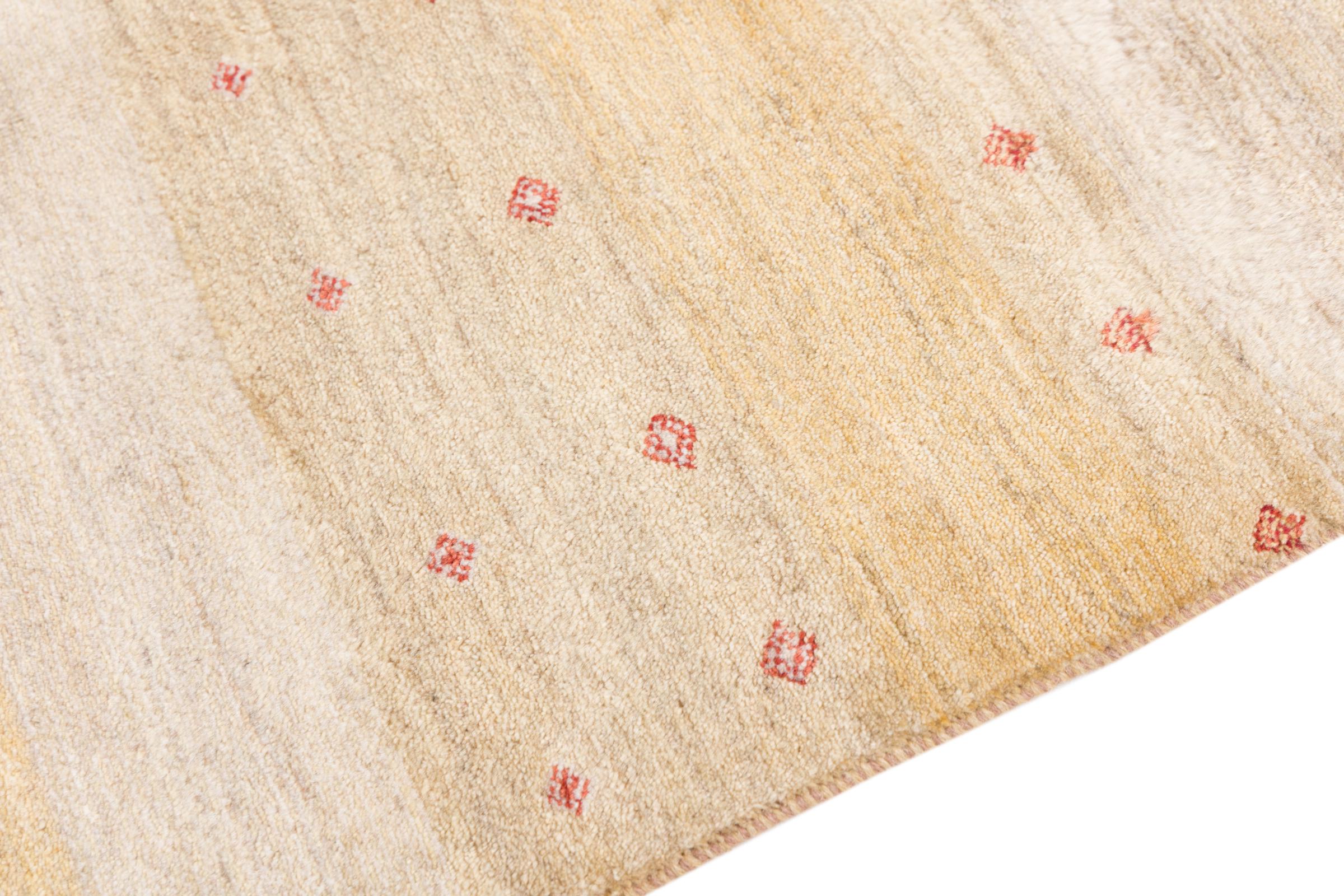 This beautiful rug is a Persian Gabbeh, one of the highest quality Gabbeh rugs available. These rugs are hand-knotted by nomads or semi-nomads in Iran using traditional artisan techniques. The simple motifs and patterns are often inspired by the nomads' immediate surroundings, featuring elements like camels, trees, or bushes. Persian Gabbeh carpets are made from wool sourced from locally raised sheep herds, with the wool typically spun by hand. Thus each of these Oriental rugs thus embodies a unique character steeped in centuries-old culture.