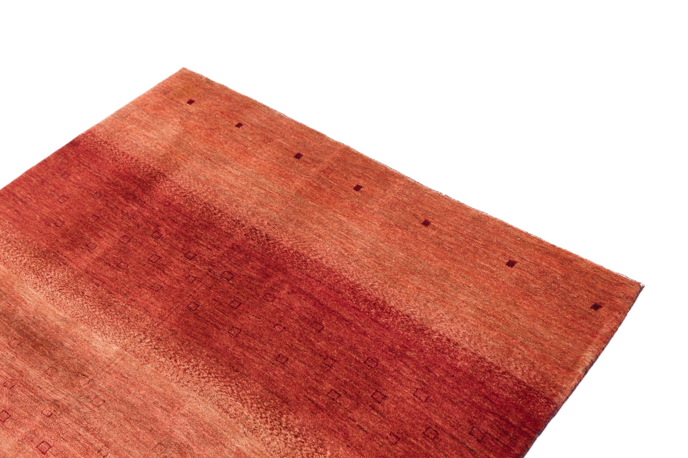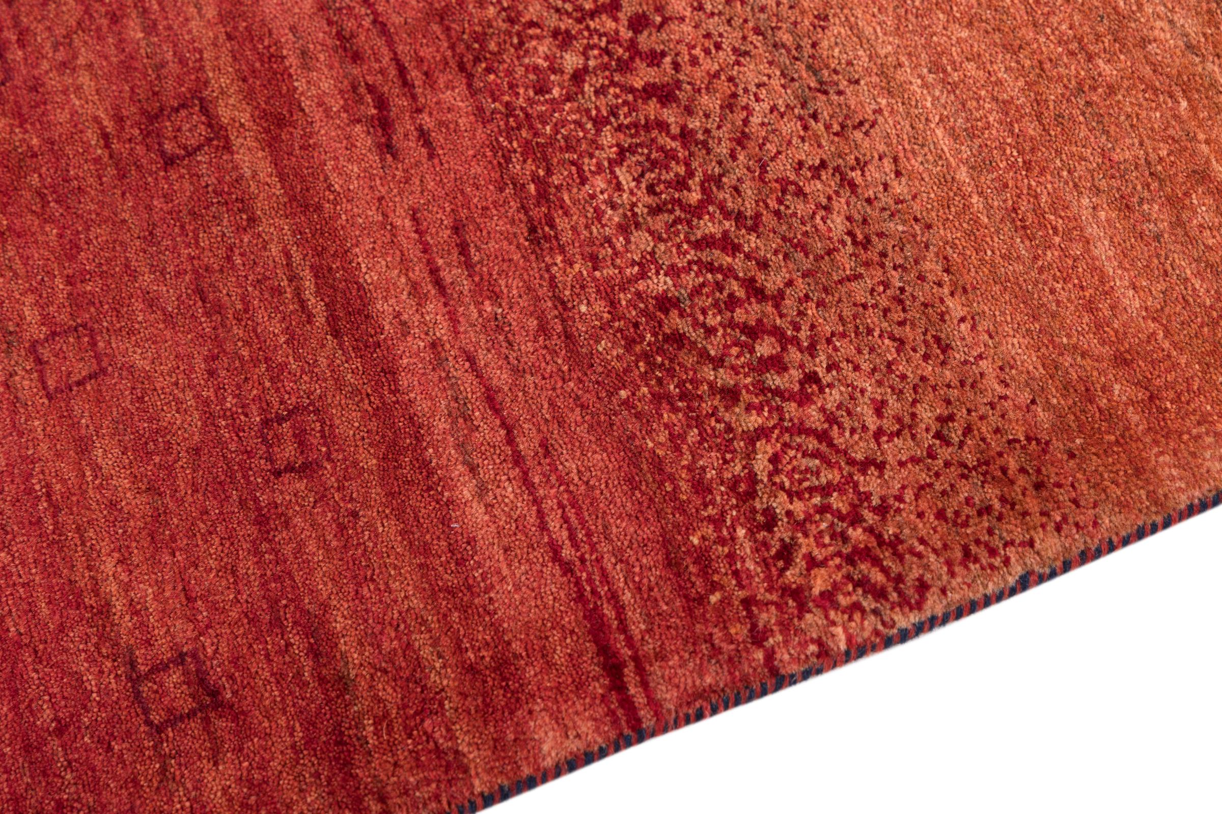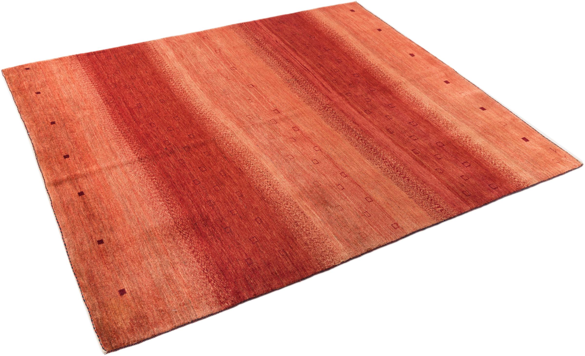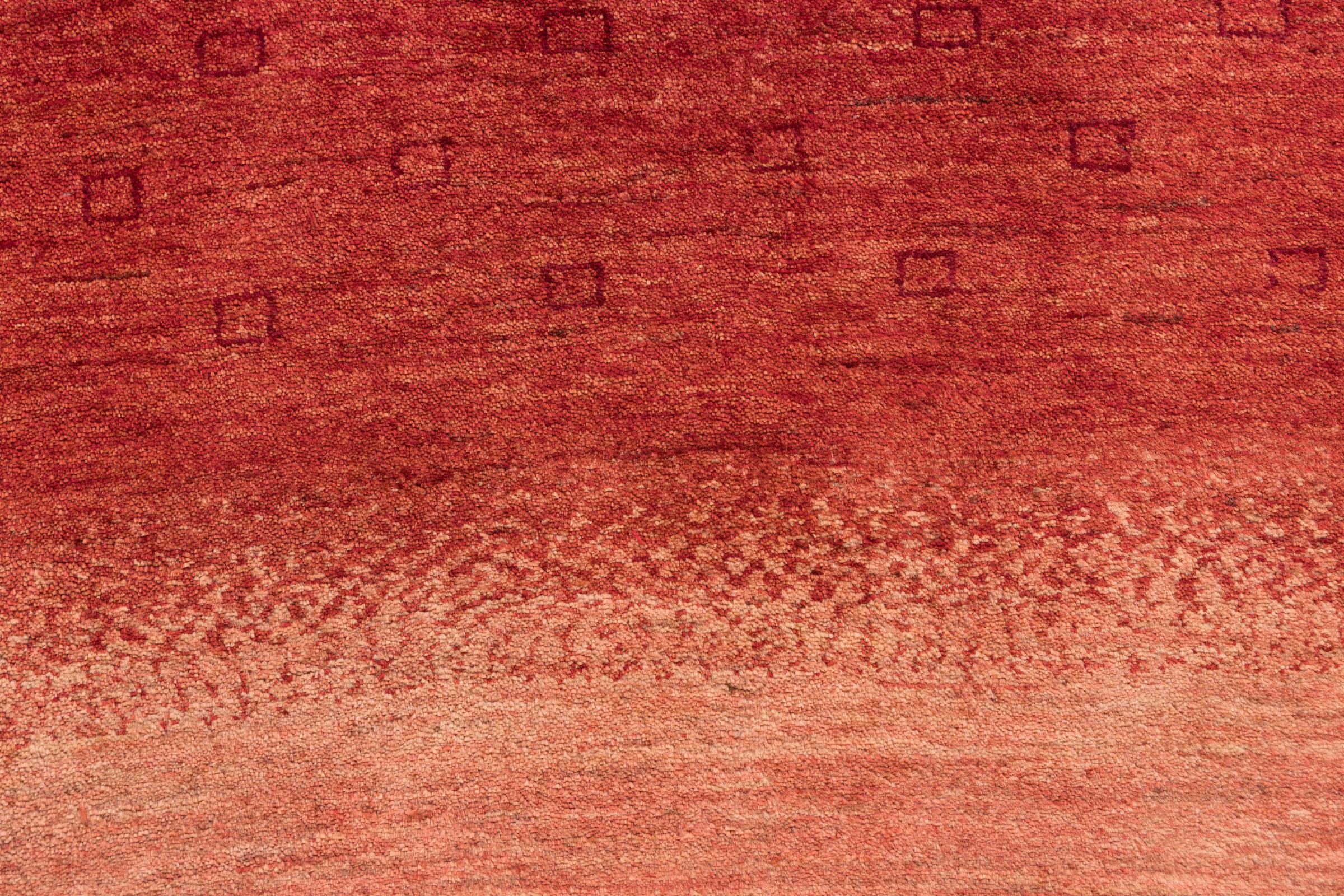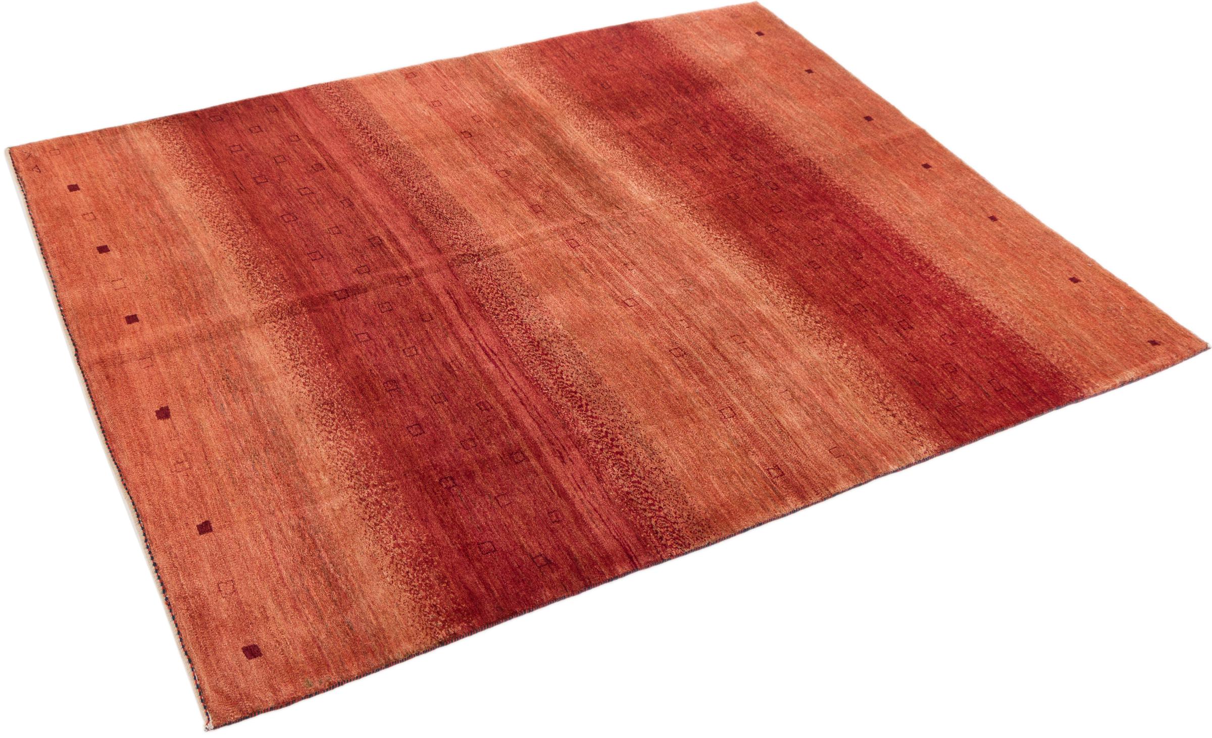 This beautiful rug is a Persian Gabbeh, one of the highest quality Gabbeh rugs available. These rugs are hand-knotted by nomads or semi-nomads in Iran using traditional artisan techniques. The simple motifs and patterns are often inspired by the nomads' immediate surroundings, featuring elements like camels, trees, or bushes. Persian Gabbeh carpets are made from wool sourced from locally raised sheep herds, with the wool typically spun by hand. Thus each of these Oriental rugs thus embodies a unique character steeped in centuries-old culture.