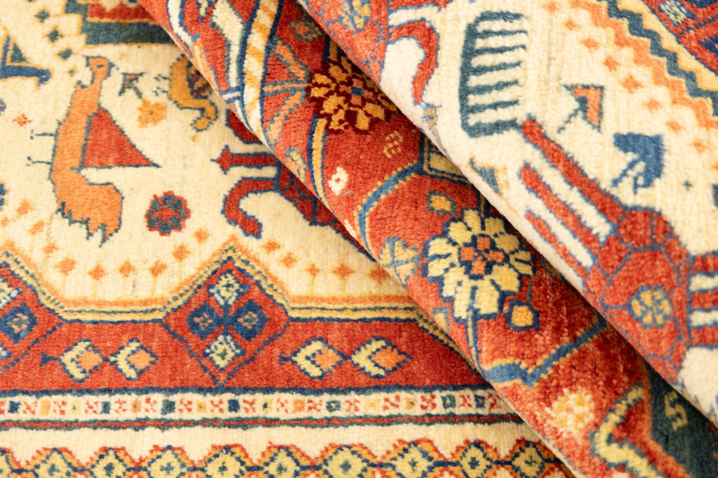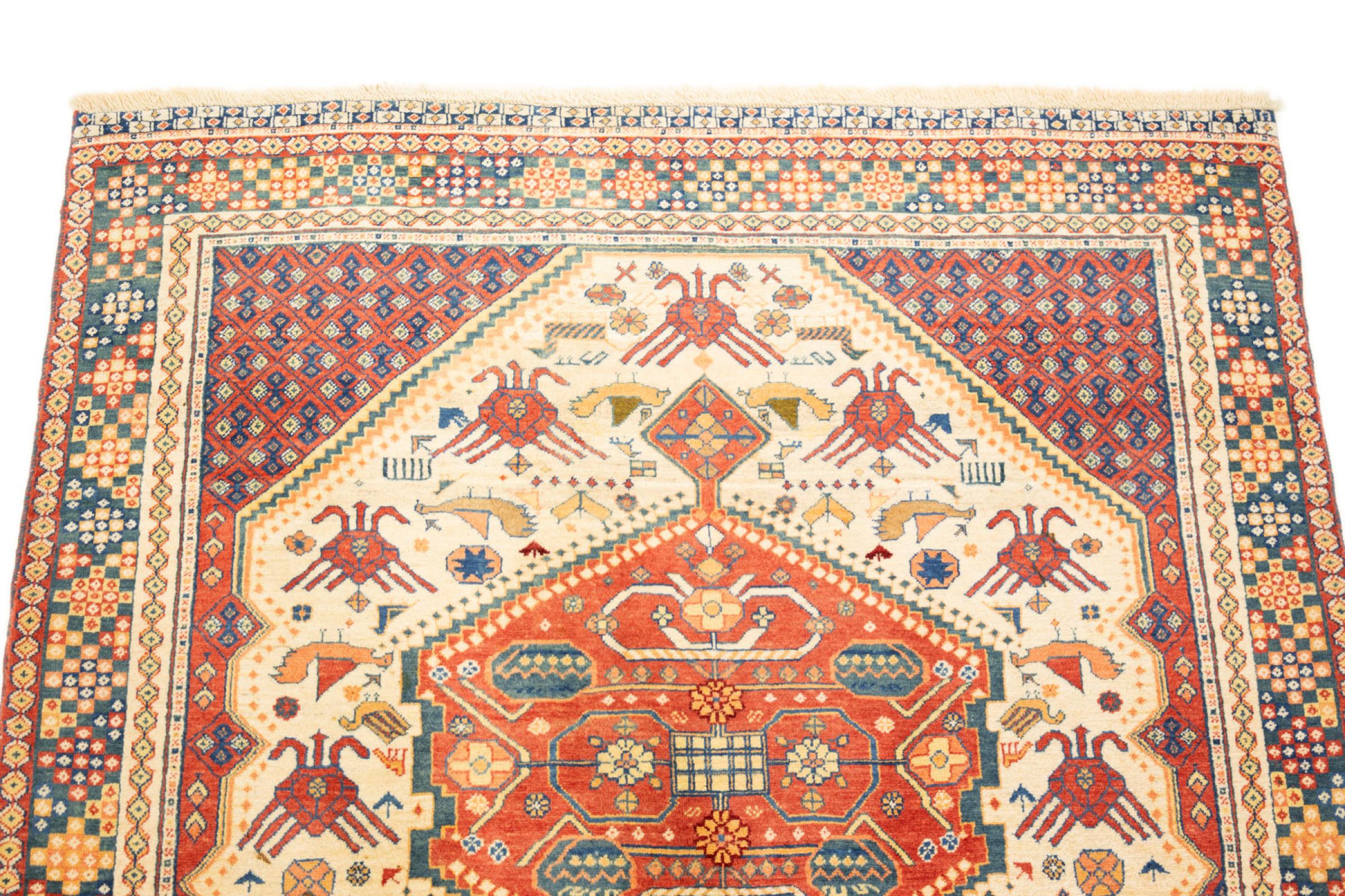 This rug is made of hand spun sheep wool of the highest quality. Especially in Iran (former Persia), Afghanistan and Pakistan wool is still spun by hand before the actual knotting of the rug begins. Wool has proven itself as a natural and extremely hard-wearing material over centuries. Among other things, it has dirt-repellent and heat-insulating properties. At the same time, wool is incomparably soft and has a natural shine.