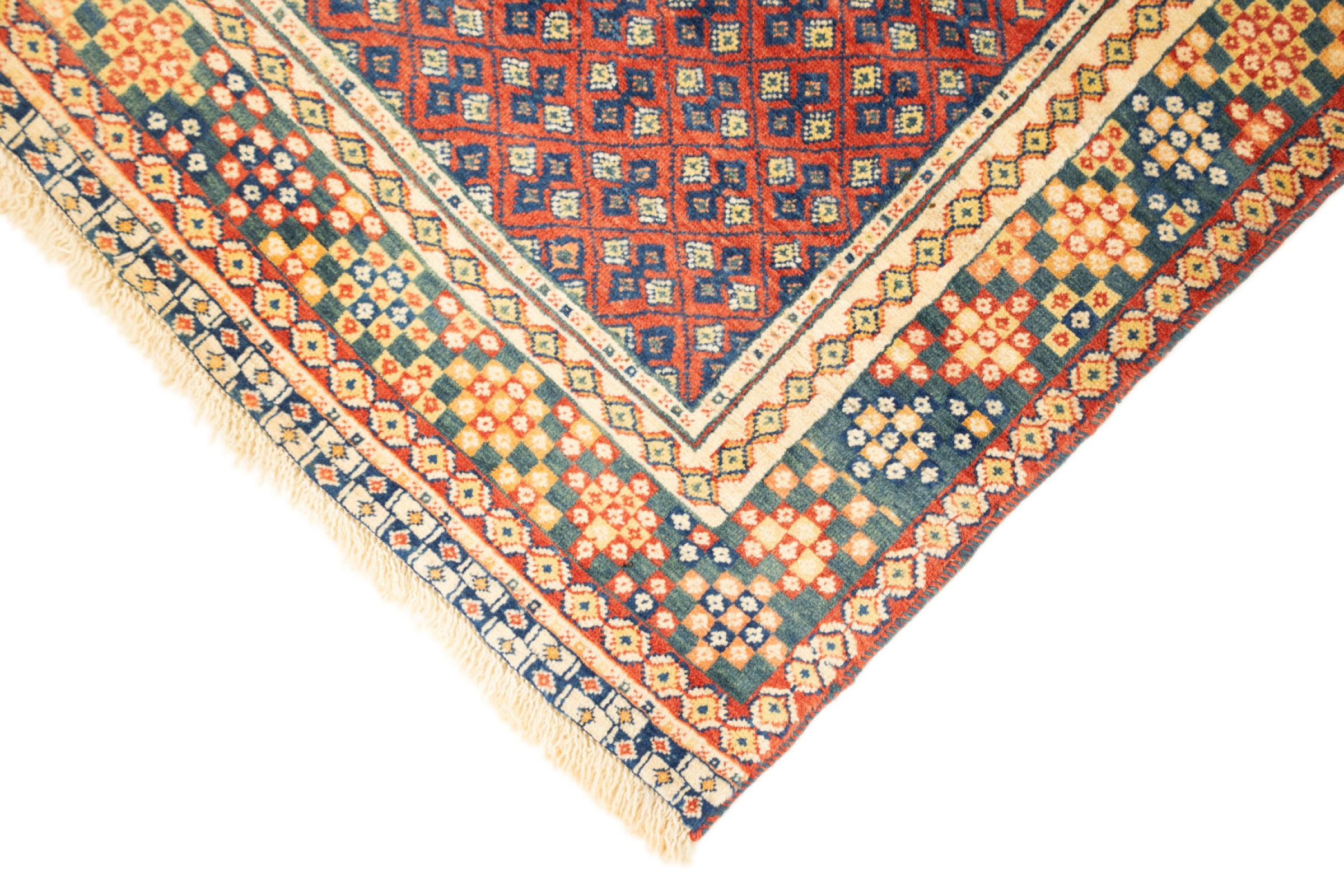 This Gabbeh rug is has been knotted by hand in southern Persia. Thus, it counts to the most valuable Gabbeh ever made. Not only it consists of fine sheep wool, it also has been dyed from natural colors. You wouldn't want to miss ever again such a soft and high quality rug in your home.