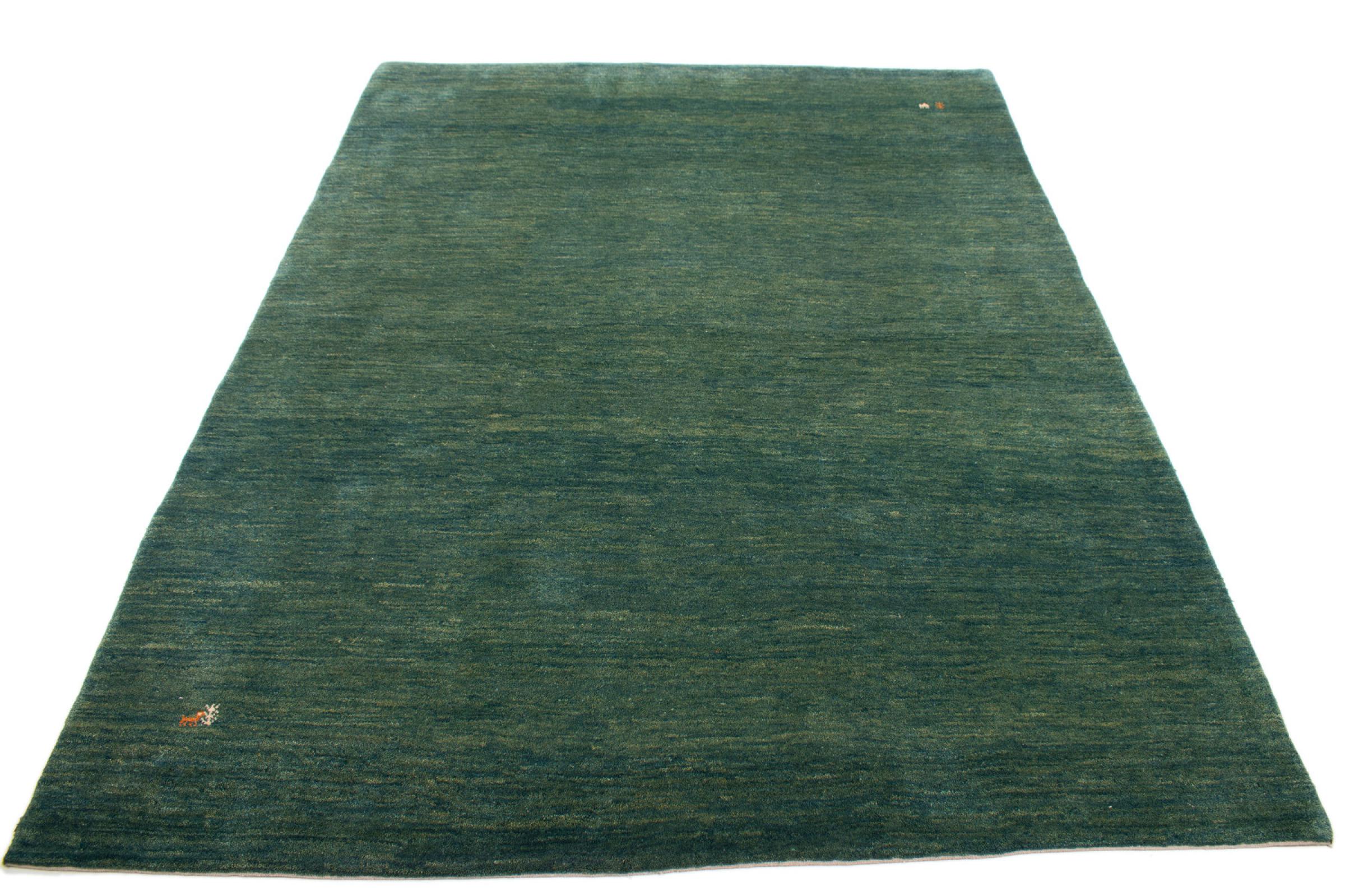 This beautiful rug is a Persian Gabbeh, one of the highest quality Gabbeh rugs available. These rugs are hand-knotted by nomads or semi-nomads in Iran using traditional artisan techniques. The simple motifs and patterns are often inspired by the nomads' immediate surroundings, featuring elements like camels, trees, or bushes. Persian Gabbeh carpets are made from wool sourced from locally raised sheep herds, with the wool typically spun by hand. Thus each of these Oriental rugs thus embodies a unique character steeped in centuries-old culture.