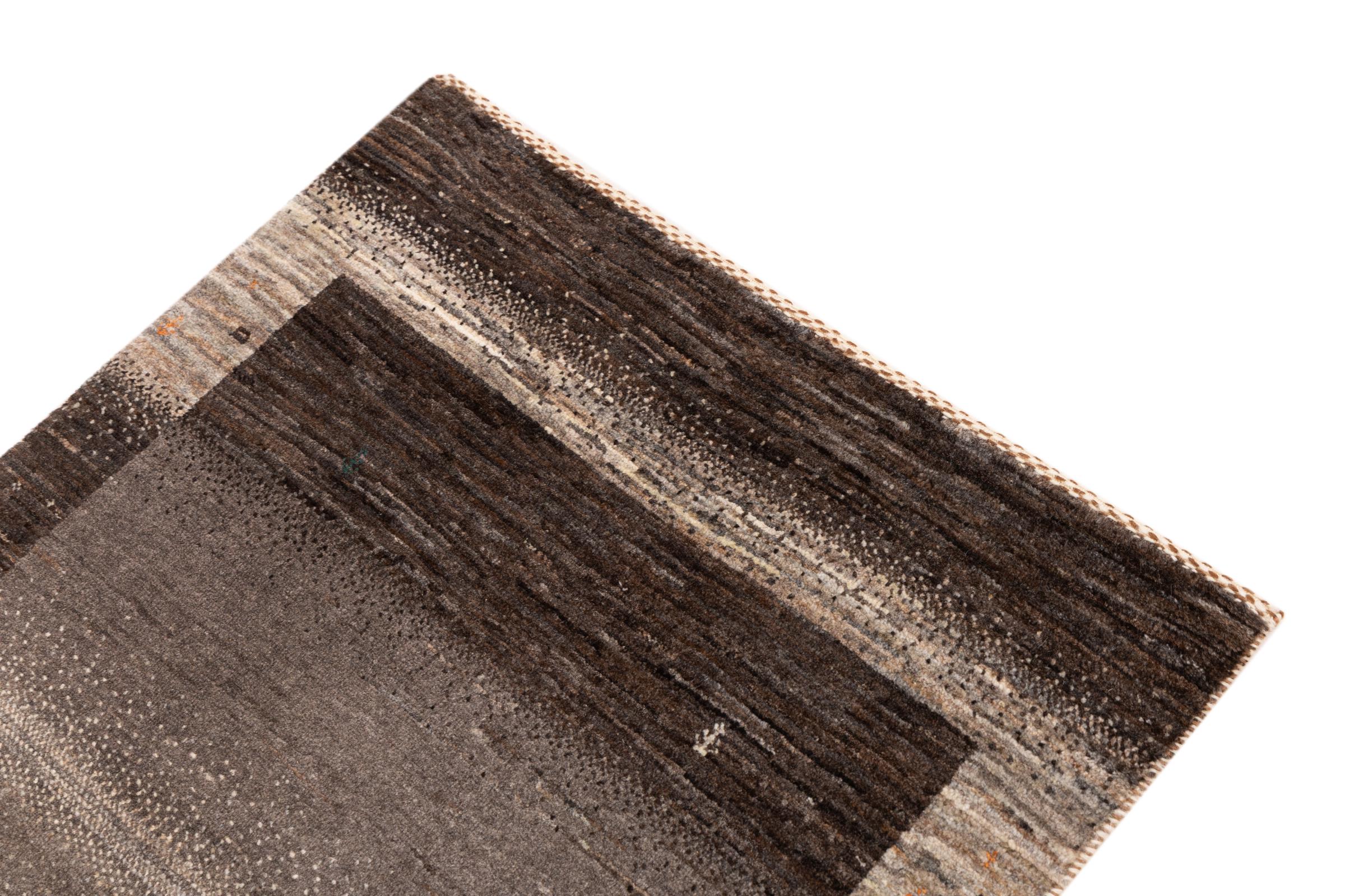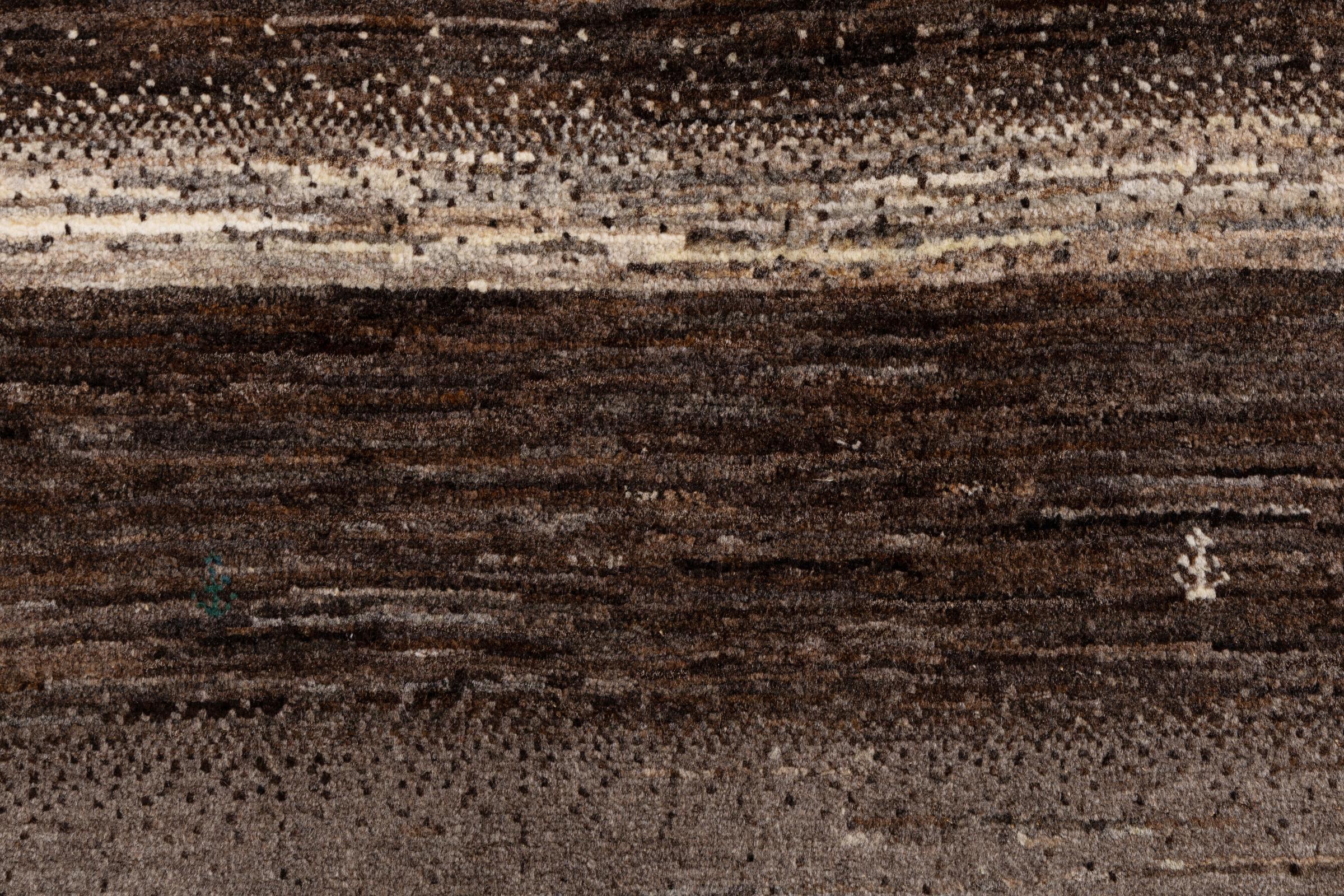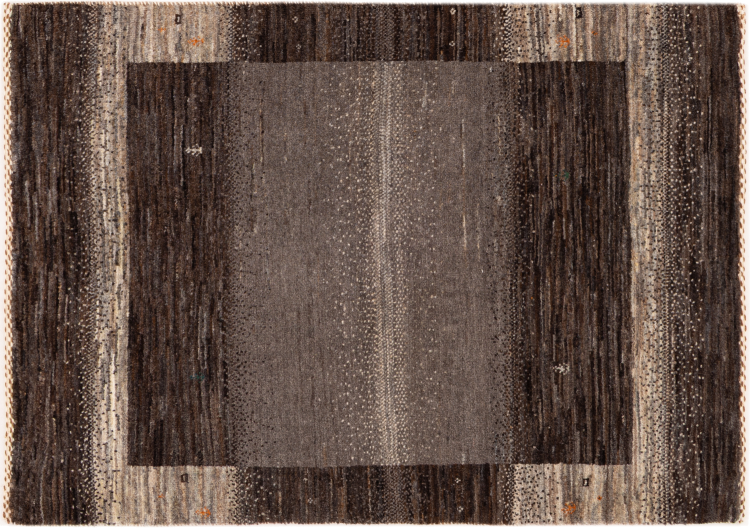 This beautiful rug is a Persian Gabbeh, one of the highest quality Gabbeh rugs available. These rugs are hand-knotted by nomads or semi-nomads in Iran using traditional artisan techniques. The simple motifs and patterns are often inspired by the nomads' immediate surroundings, featuring elements like camels, trees, or bushes. Persian Gabbeh carpets are made from wool sourced from locally raised sheep herds, with the wool typically spun by hand. Thus each of these Oriental rugs thus embodies a unique character steeped in centuries-old culture.