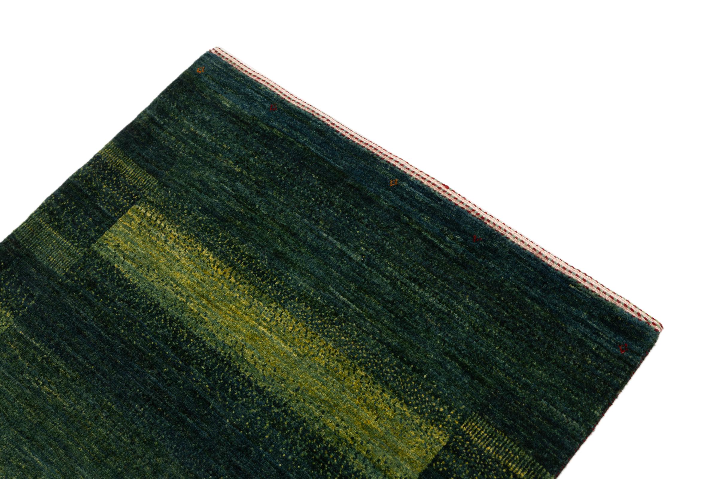 This beautiful rug is a Persian Gabbeh, one of the highest quality Gabbeh rugs available. These rugs are hand-knotted by nomads or semi-nomads in Iran using traditional artisan techniques. The simple motifs and patterns are often inspired by the nomads' immediate surroundings, featuring elements like camels, trees, or bushes. Persian Gabbeh carpets are made from wool sourced from locally raised sheep herds, with the wool typically spun by hand. Thus each of these Oriental rugs thus embodies a unique character steeped in centuries-old culture.