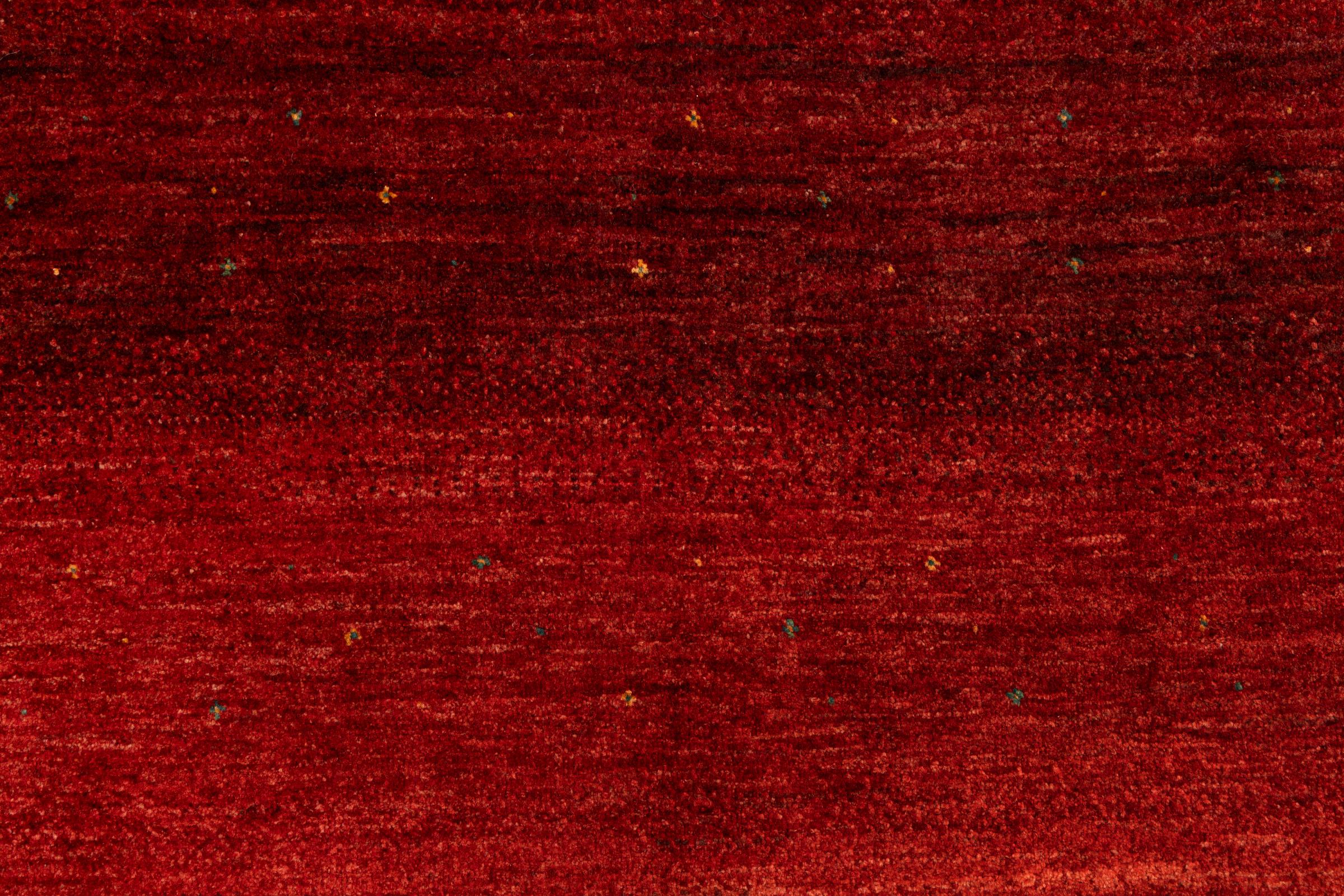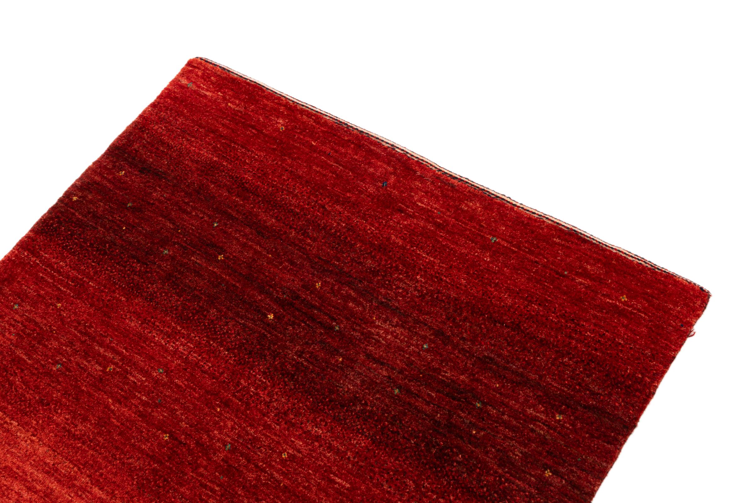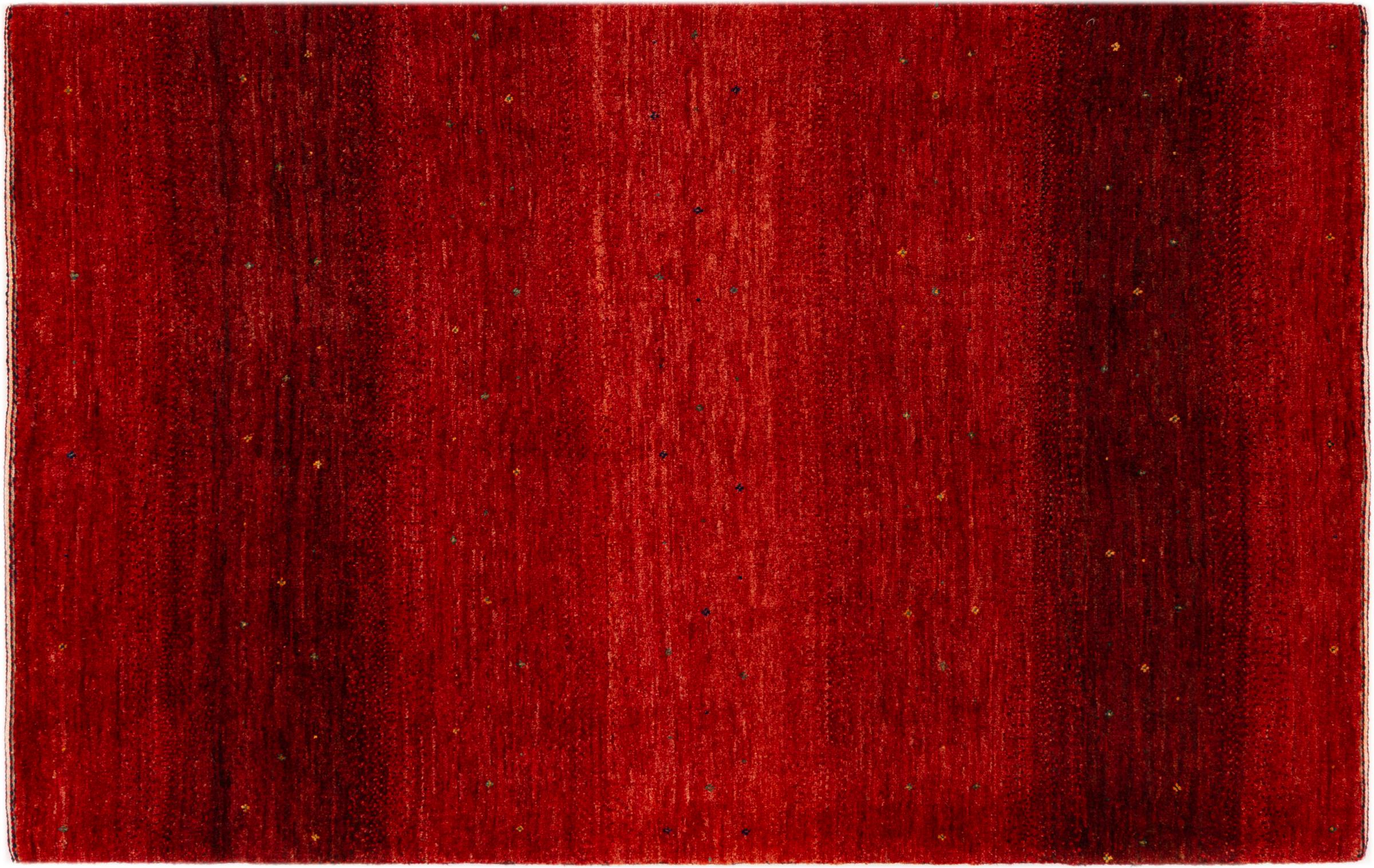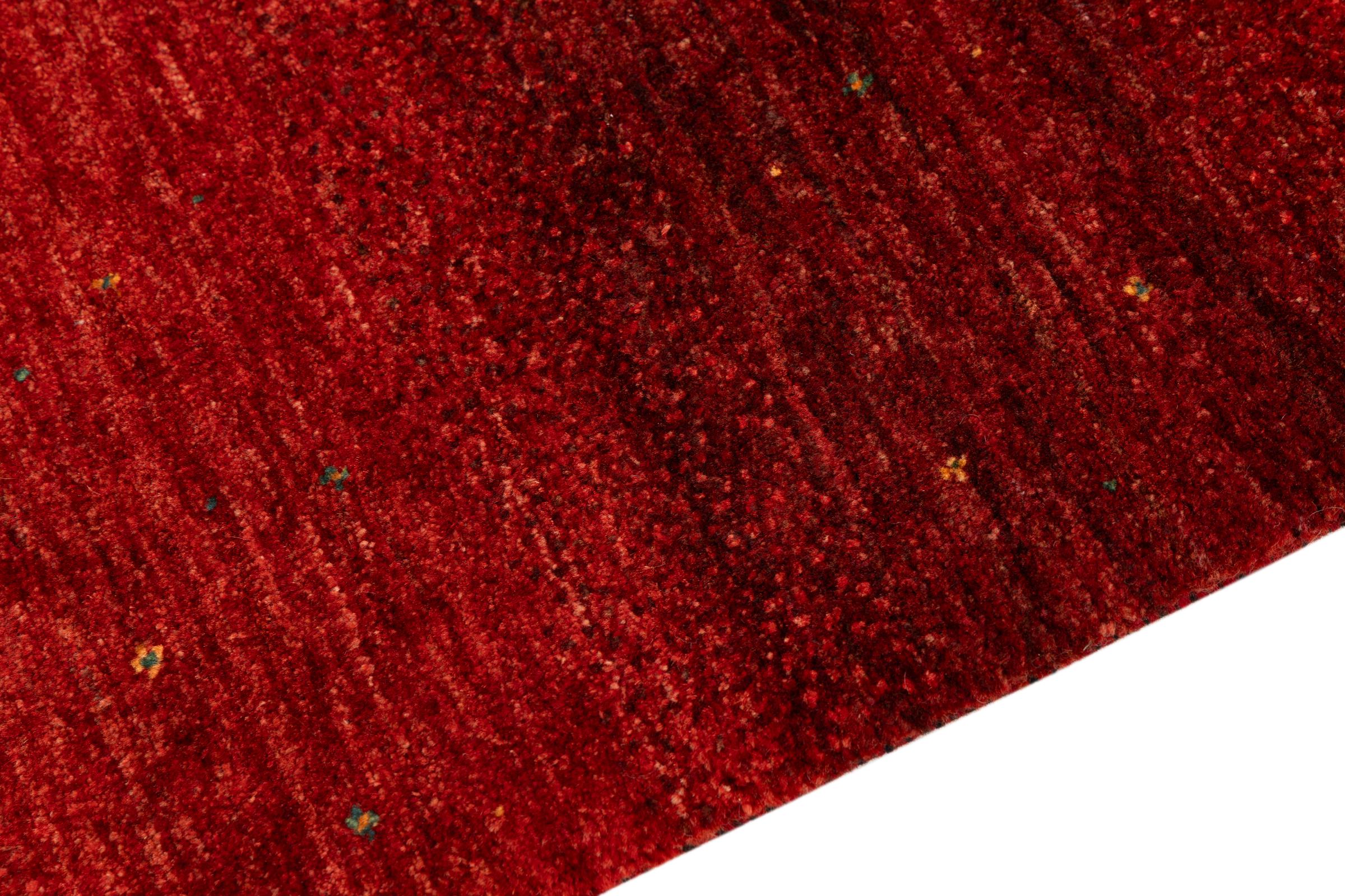 This beautiful rug is a Persian Gabbeh, one of the highest quality Gabbeh rugs available. These rugs are hand-knotted by nomads or semi-nomads in Iran using traditional artisan techniques. The simple motifs and patterns are often inspired by the nomads' immediate surroundings, featuring elements like camels, trees, or bushes. Persian Gabbeh carpets are made from wool sourced from locally raised sheep herds, with the wool typically spun by hand. Thus each of these Oriental rugs thus embodies a unique character steeped in centuries-old culture.
