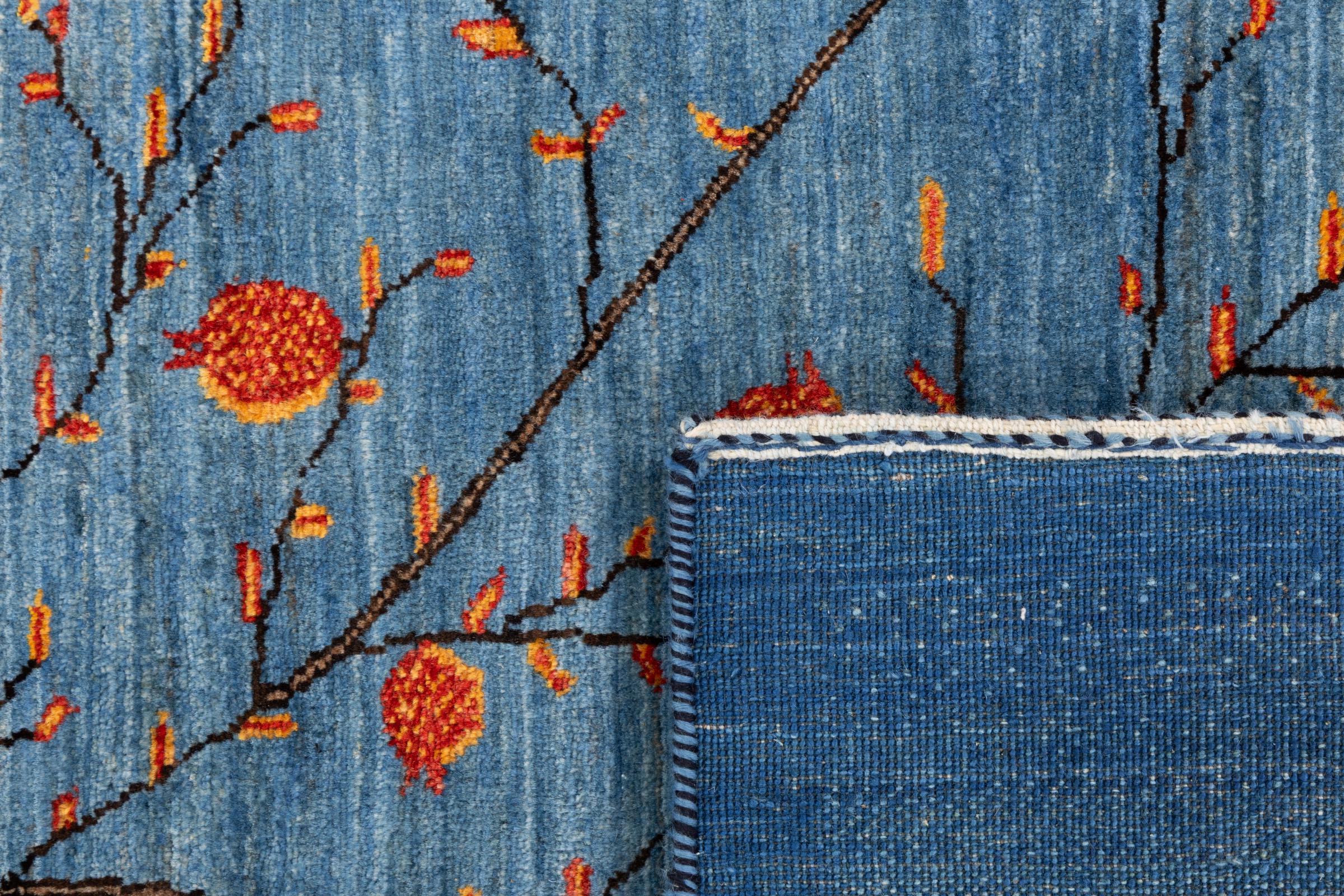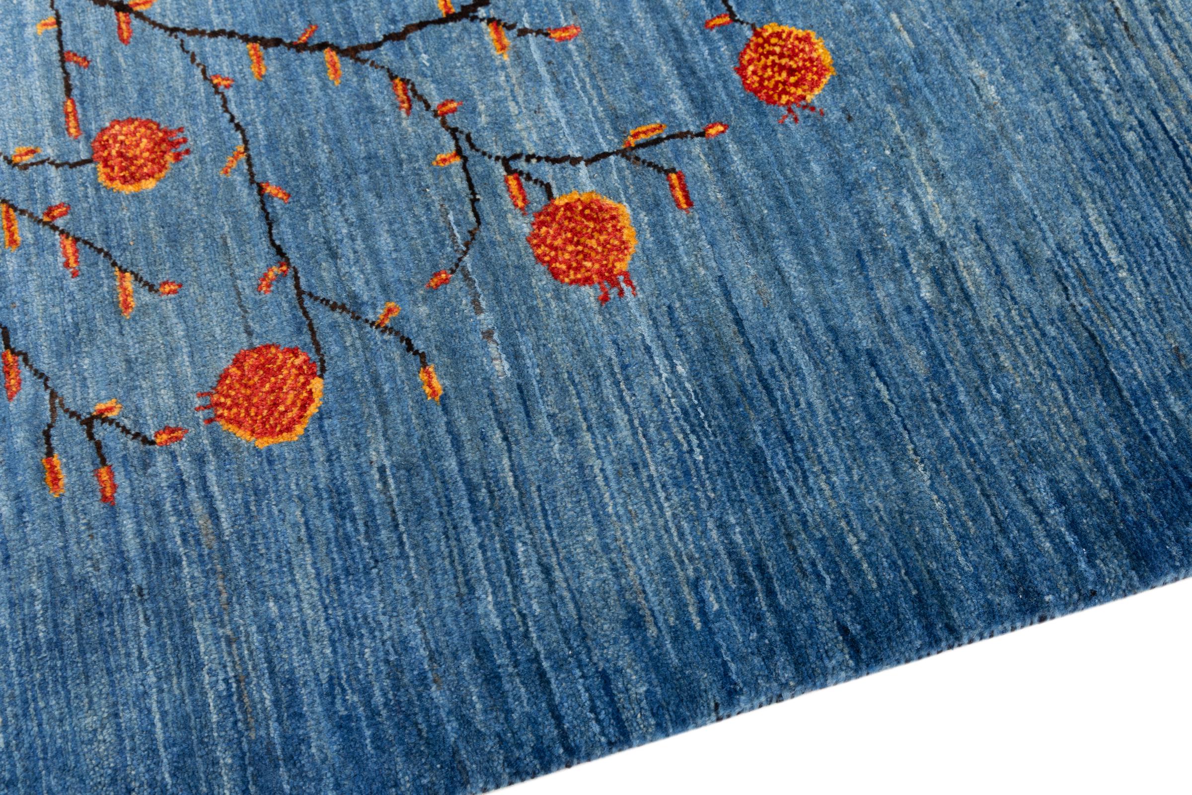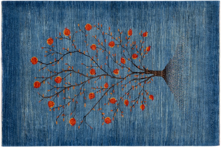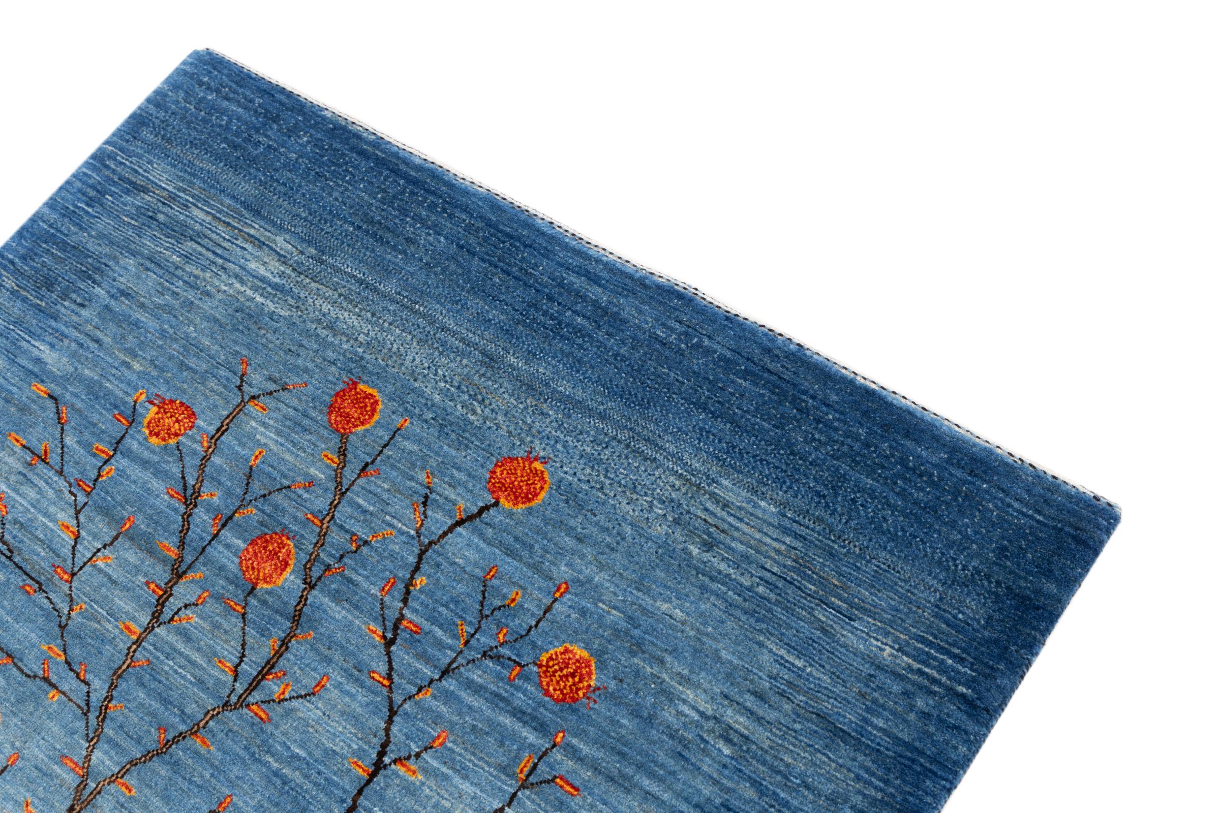 This beautiful rug is a Persian Gabbeh, one of the highest quality Gabbeh rugs available. These rugs are hand-knotted by nomads or semi-nomads in Iran using traditional artisan techniques. The simple motifs and patterns are often inspired by the nomads' immediate surroundings, featuring elements like camels, trees, or bushes. Persian Gabbeh carpets are made from wool sourced from locally raised sheep herds, with the wool typically spun by hand. Thus each of these Oriental rugs thus embodies a unique character steeped in centuries-old culture.