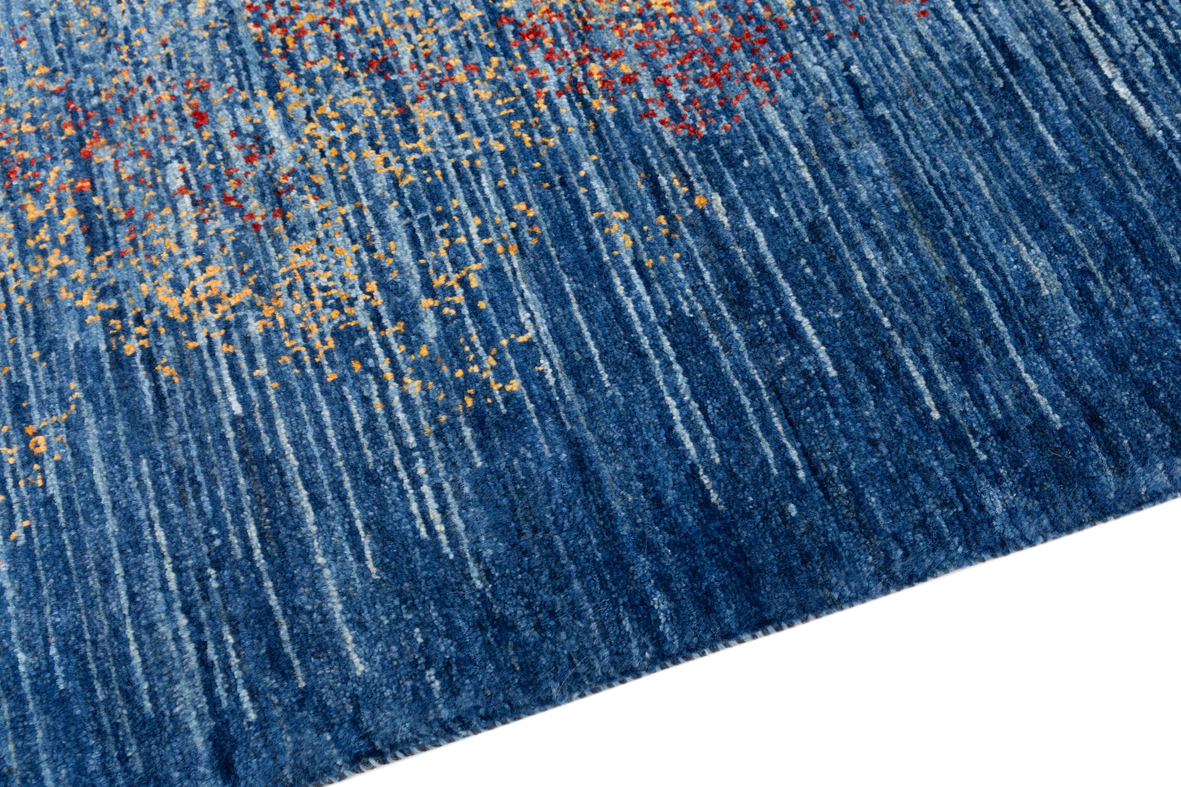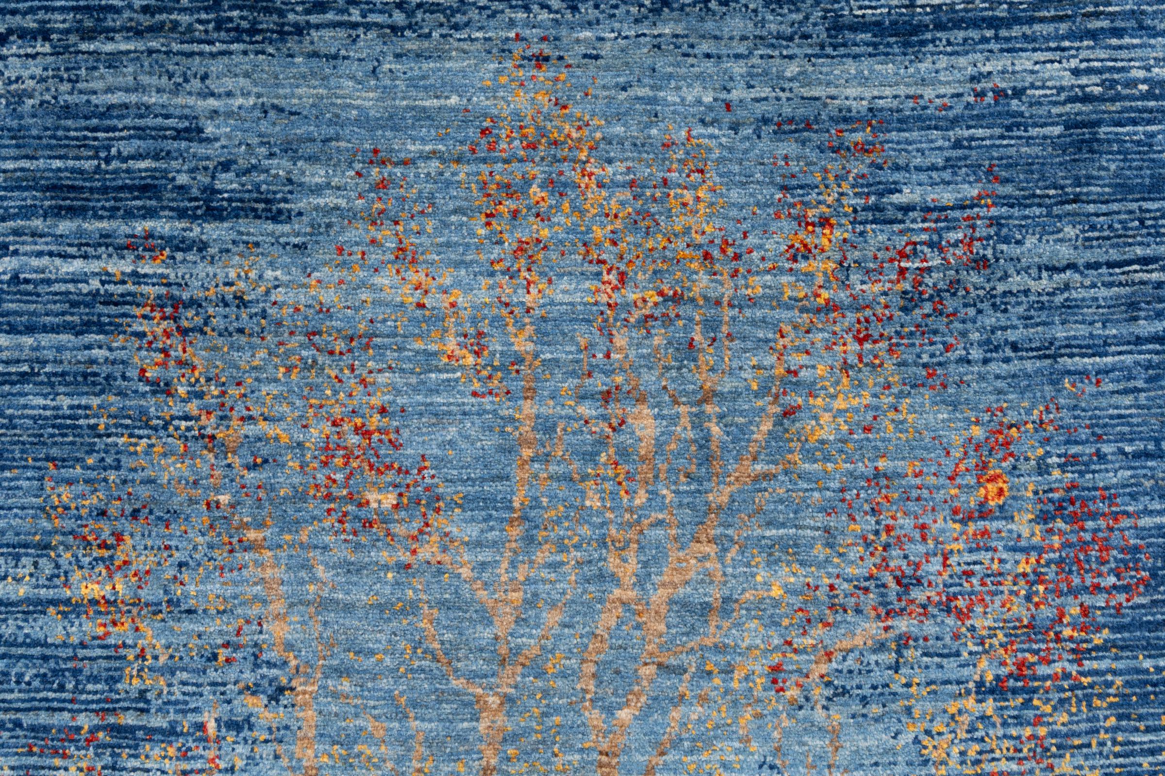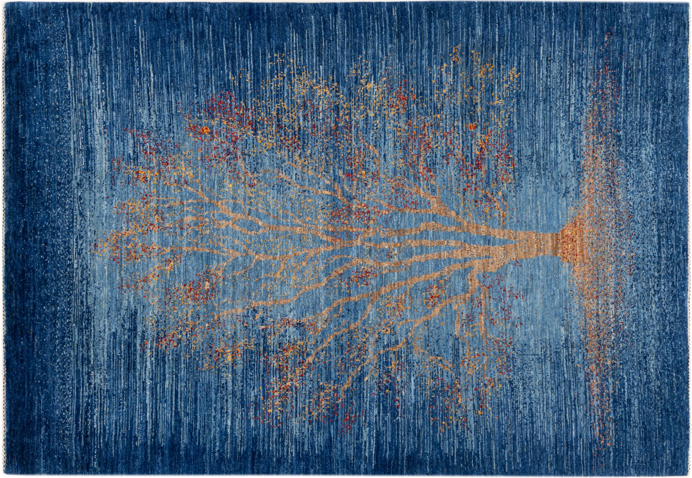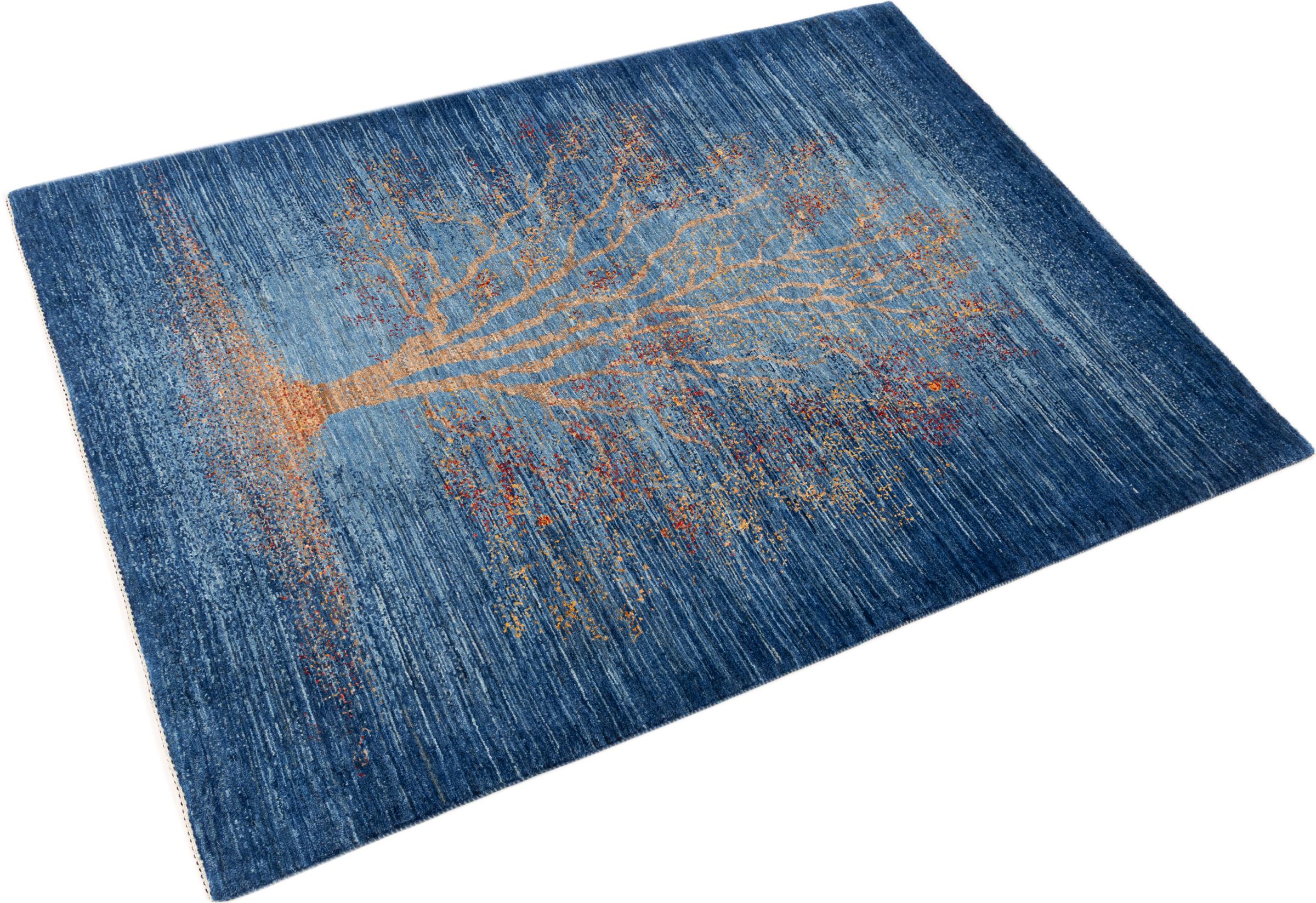 This beautiful rug is a Persian Gabbeh, one of the highest quality Gabbeh rugs available. These rugs are hand-knotted by nomads or semi-nomads in Iran using traditional artisan techniques. The simple motifs and patterns are often inspired by the nomads' immediate surroundings, featuring elements like camels, trees, or bushes. Persian Gabbeh carpets are made from wool sourced from locally raised sheep herds, with the wool typically spun by hand. Thus each of these Oriental rugs thus embodies a unique character steeped in centuries-old culture.