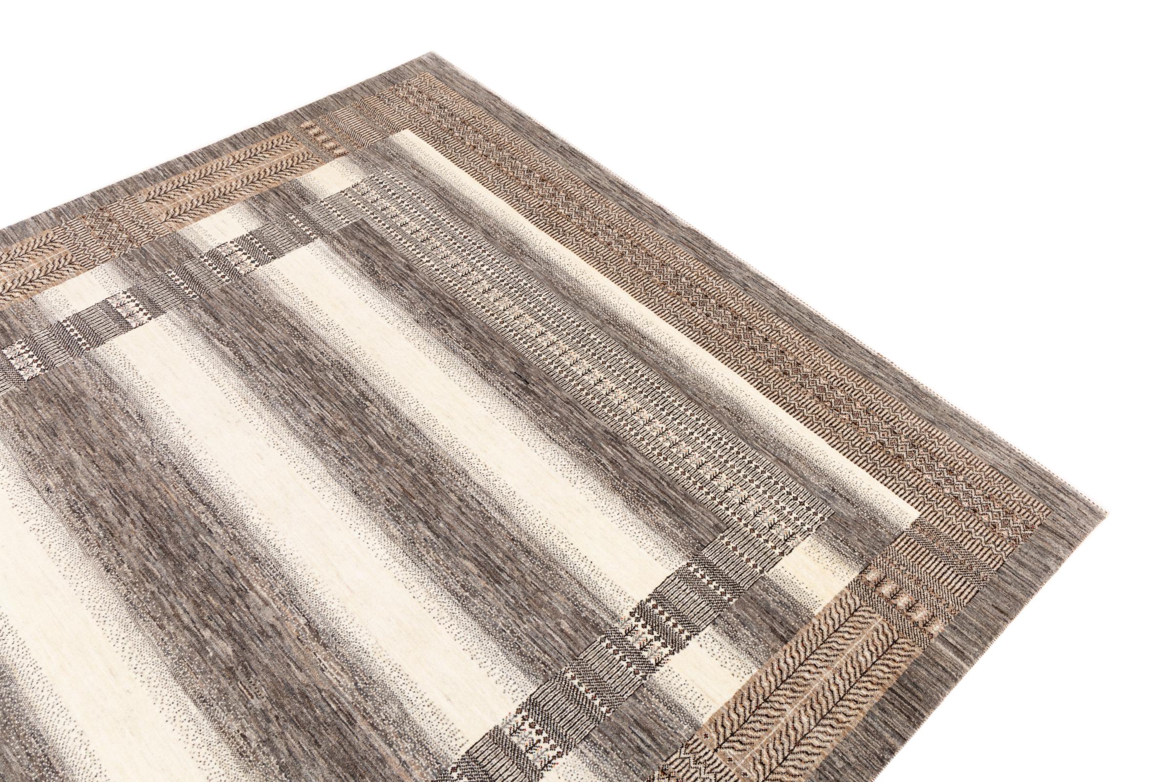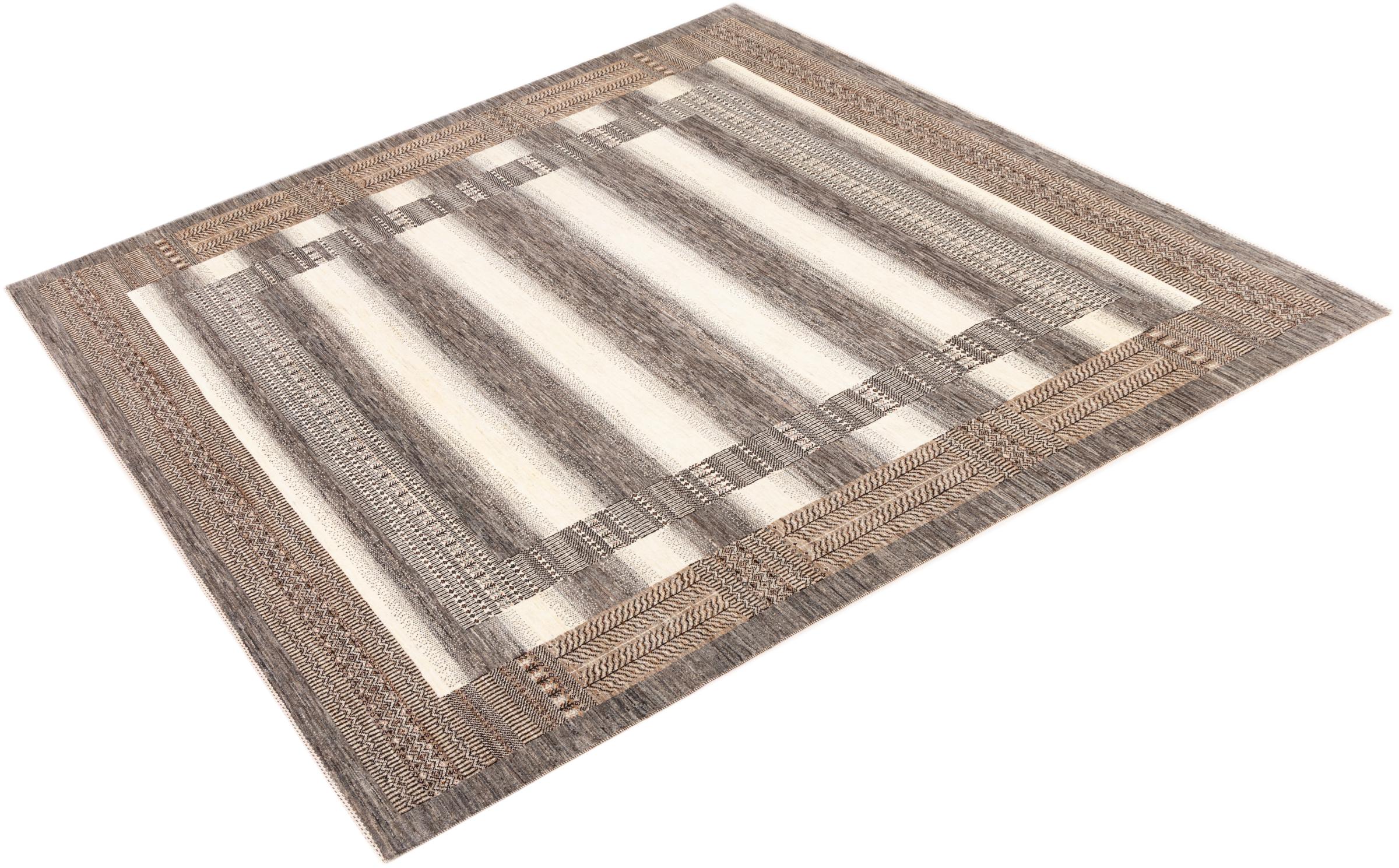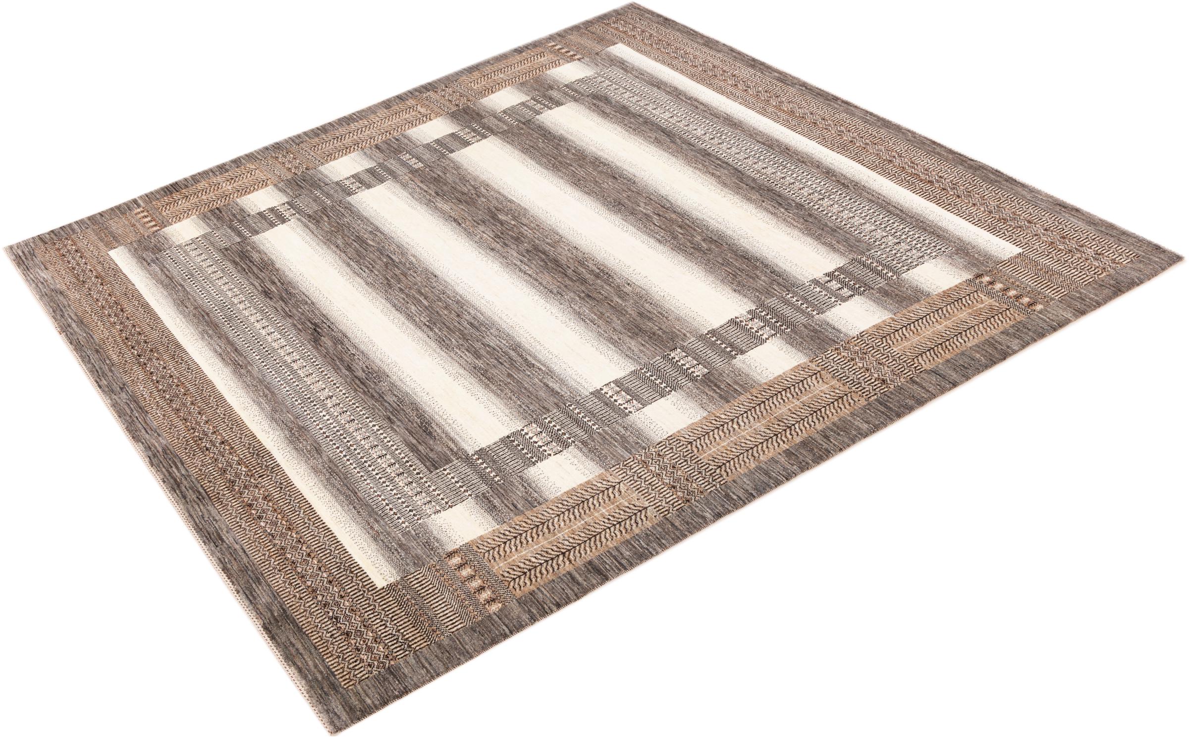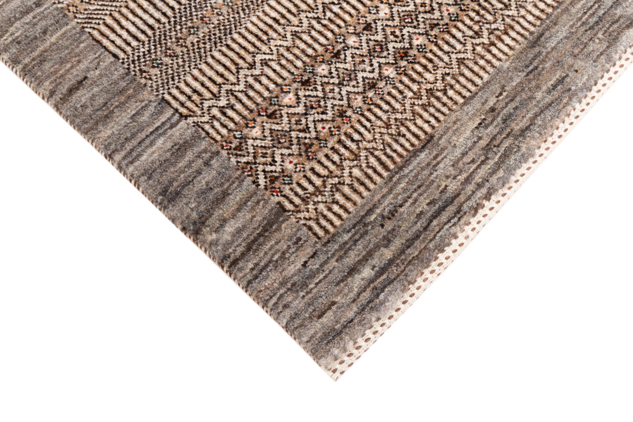This beautiful rug is a Persian Gabbeh, one of the highest quality Gabbeh rugs available. These rugs are hand-knotted by nomads or semi-nomads in Iran using traditional artisan techniques. The simple motifs and patterns are often inspired by the nomads' immediate surroundings, featuring elements like camels, trees, or bushes. Persian Gabbeh carpets are made from wool sourced from locally raised sheep herds, with the wool typically spun by hand. Thus each of these Oriental rugs thus embodies a unique character steeped in centuries-old culture.
