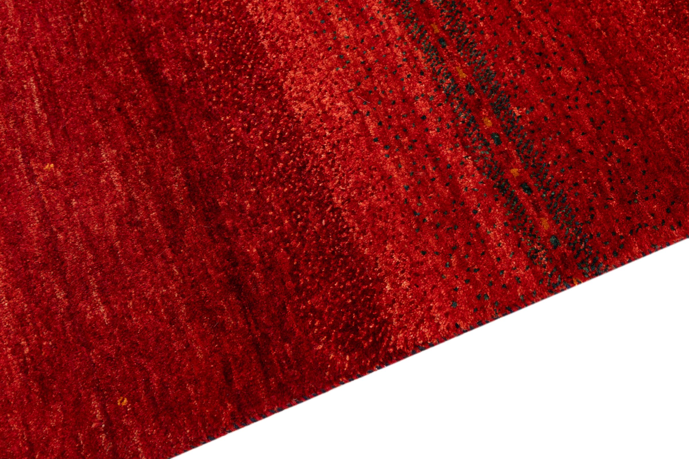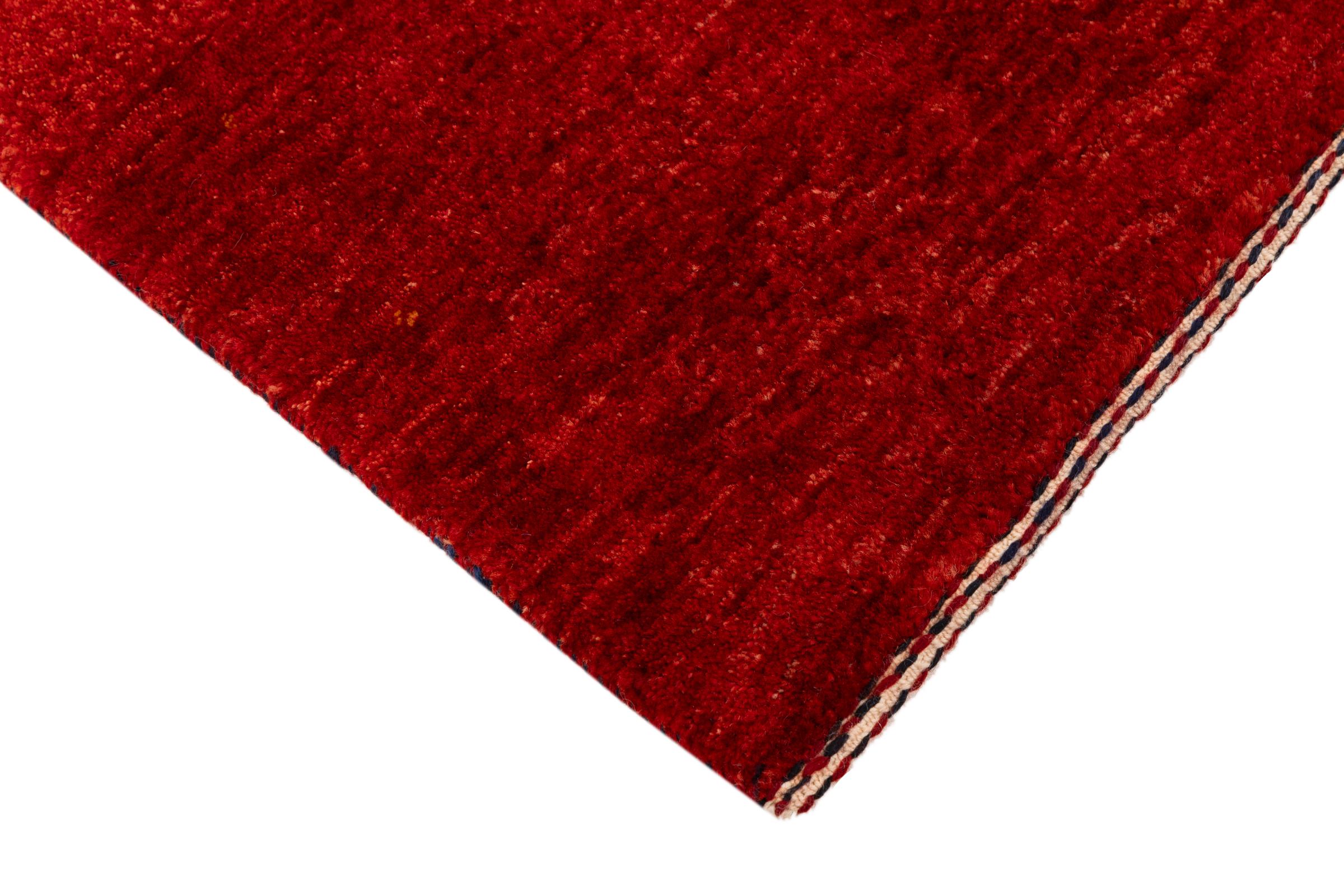 This beautiful rug is a Persian Gabbeh, one of the highest quality Gabbeh rugs available. These rugs are hand-knotted by nomads or semi-nomads in Iran using traditional artisan techniques. The simple motifs and patterns are often inspired by the nomads' immediate surroundings, featuring elements like camels, trees, or bushes. Persian Gabbeh carpets are made from wool sourced from locally raised sheep herds, with the wool typically spun by hand. Thus each of these Oriental rugs thus embodies a unique character steeped in centuries-old culture.