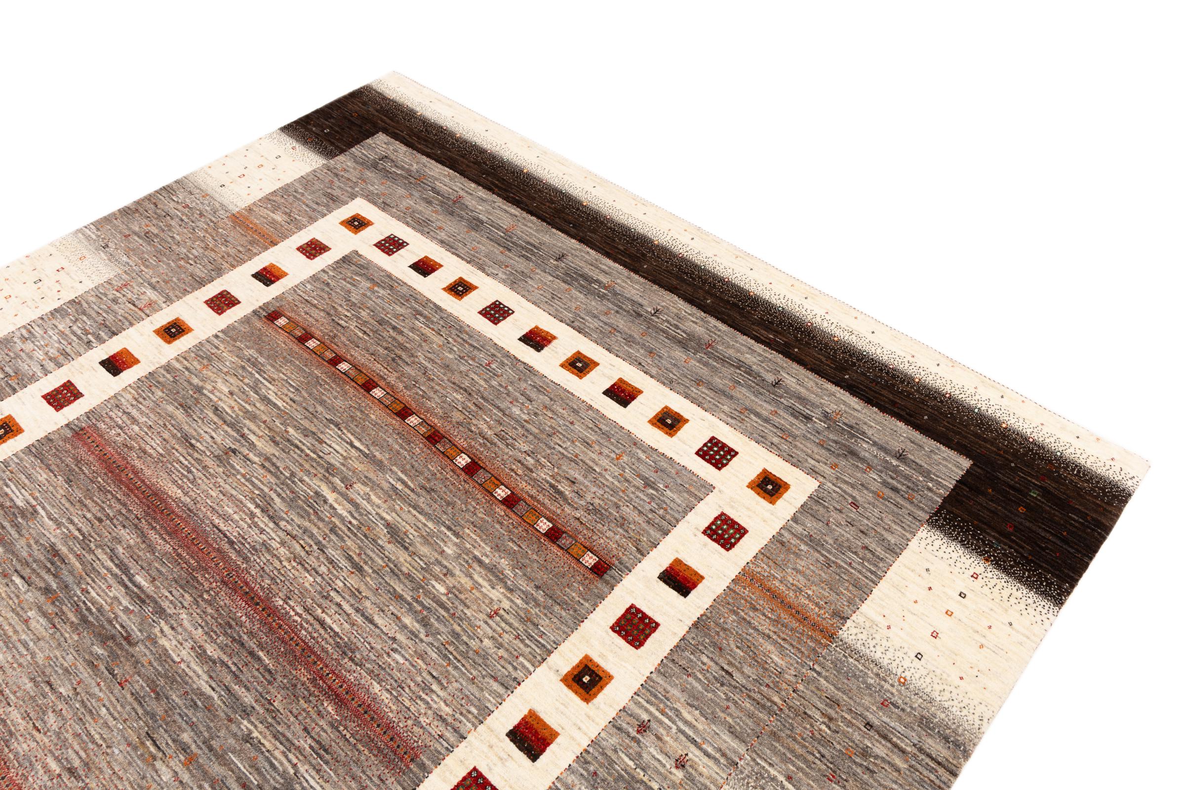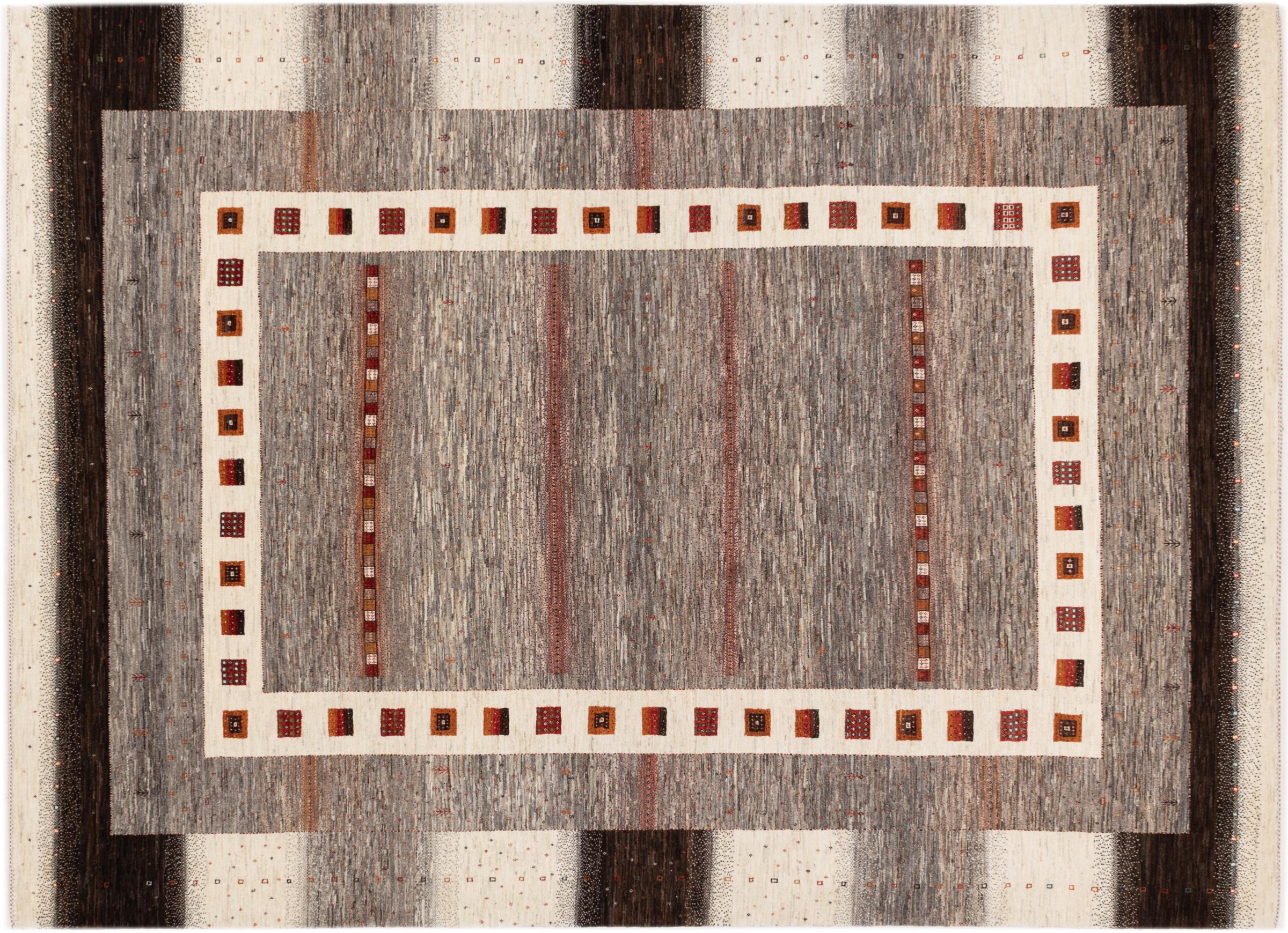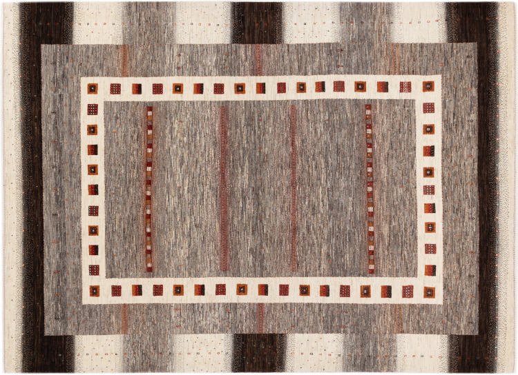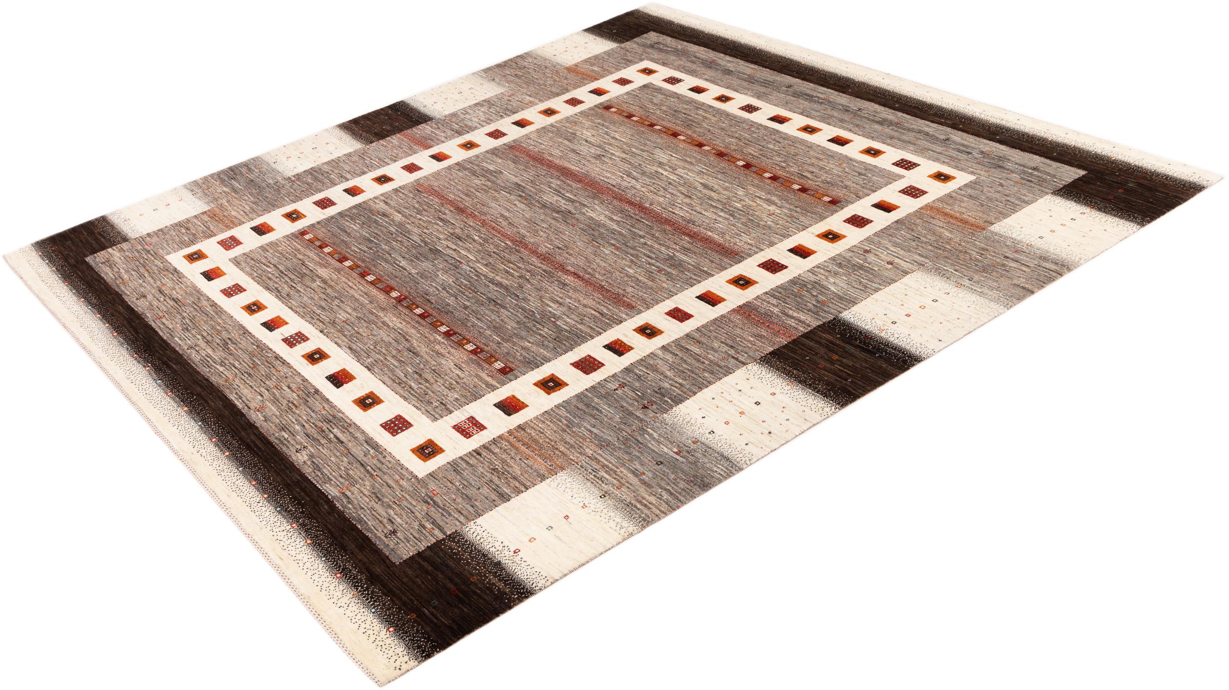 This beautiful rug is a Persian Gabbeh, one of the highest quality Gabbeh rugs available. These rugs are hand-knotted by nomads or semi-nomads in Iran using traditional artisan techniques. The simple motifs and patterns are often inspired by the nomads' immediate surroundings, featuring elements like camels, trees, or bushes. Persian Gabbeh carpets are made from wool sourced from locally raised sheep herds, with the wool typically spun by hand. Thus each of these Oriental rugs thus embodies a unique character steeped in centuries-old culture.