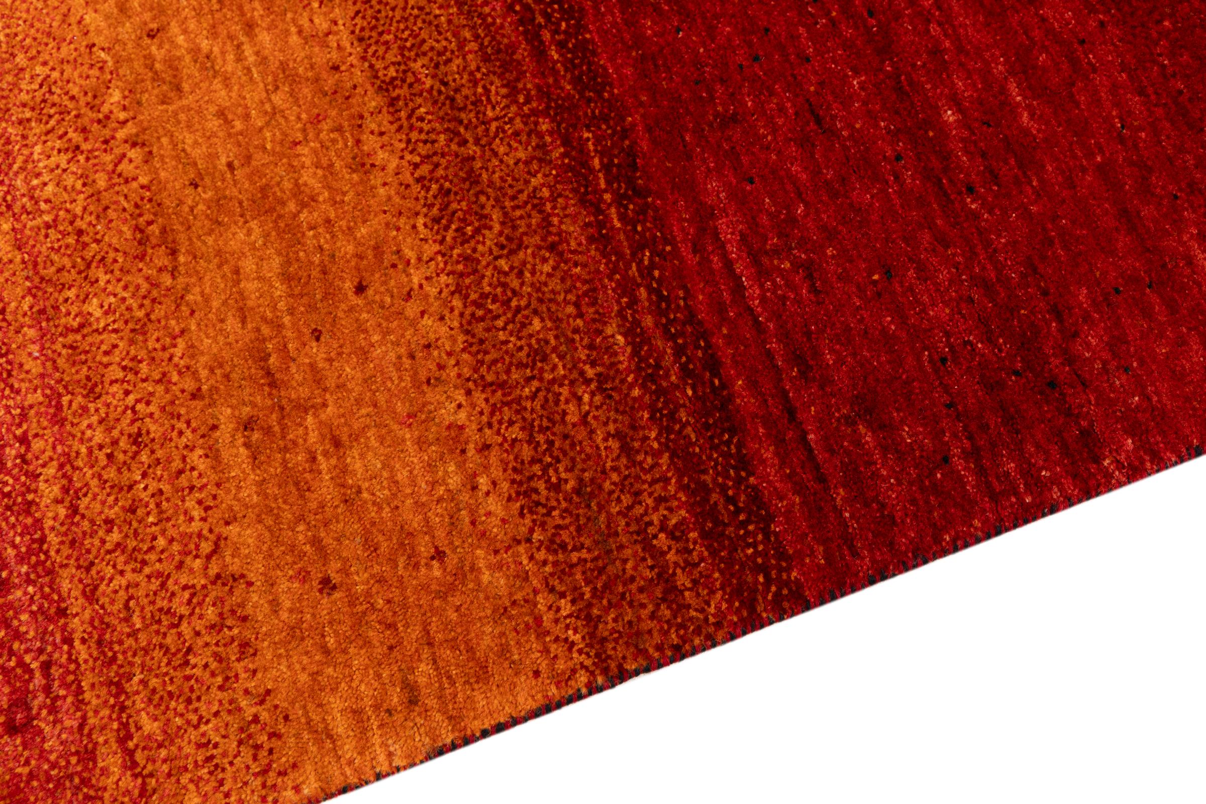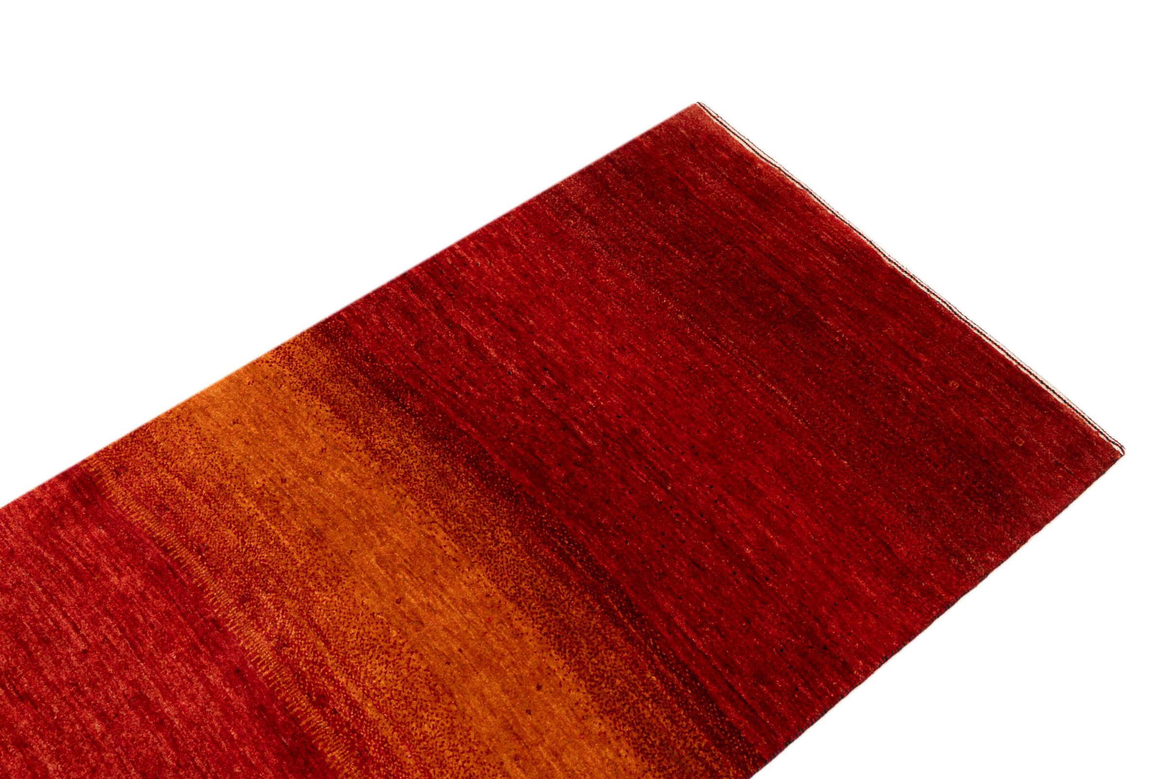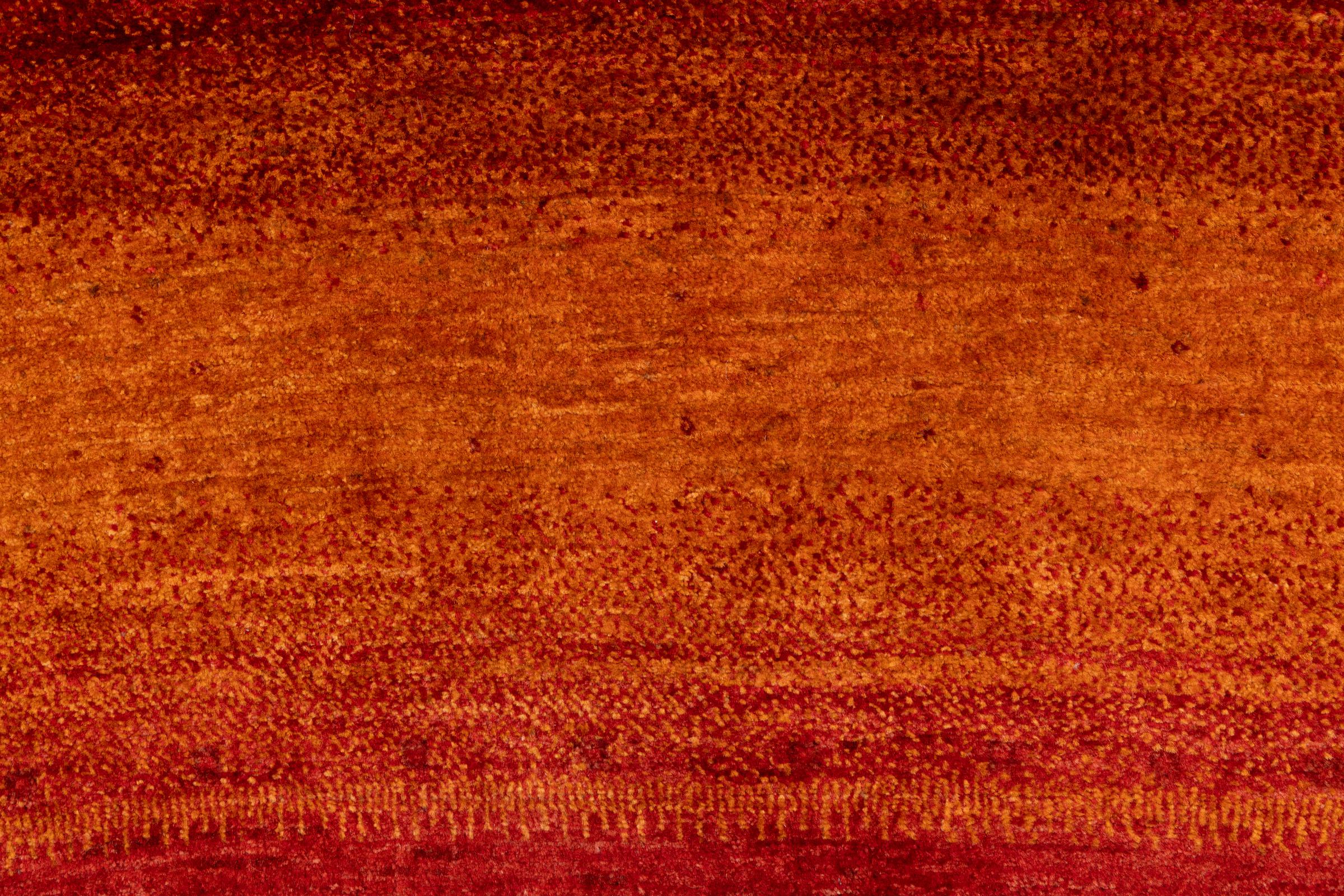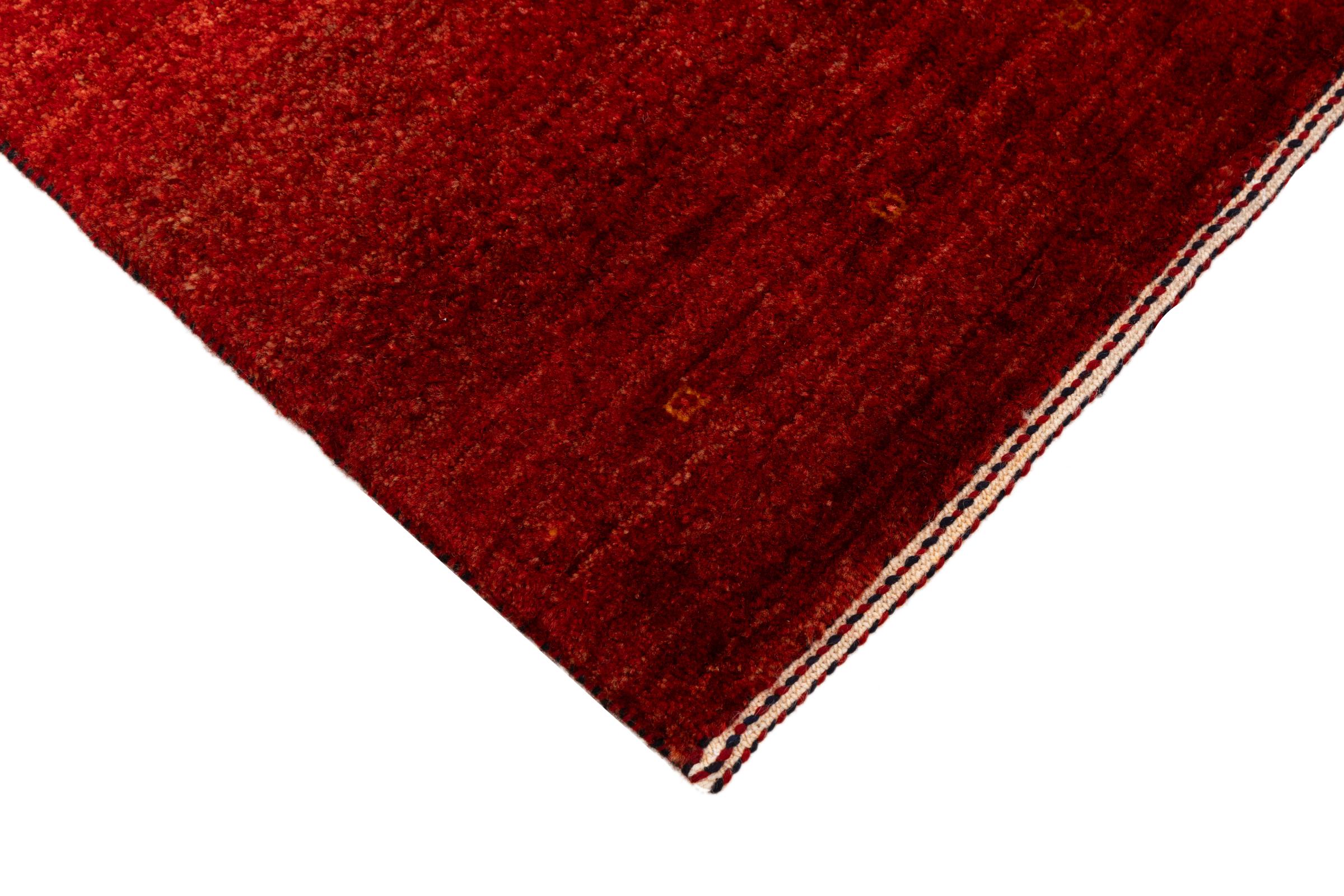 This beautiful rug is a Persian Gabbeh, one of the highest quality Gabbeh rugs available. These rugs are hand-knotted by nomads or semi-nomads in Iran using traditional artisan techniques. The simple motifs and patterns are often inspired by the nomads' immediate surroundings, featuring elements like camels, trees, or bushes. Persian Gabbeh carpets are made from wool sourced from locally raised sheep herds, with the wool typically spun by hand. Thus each of these Oriental rugs thus embodies a unique character steeped in centuries-old culture.