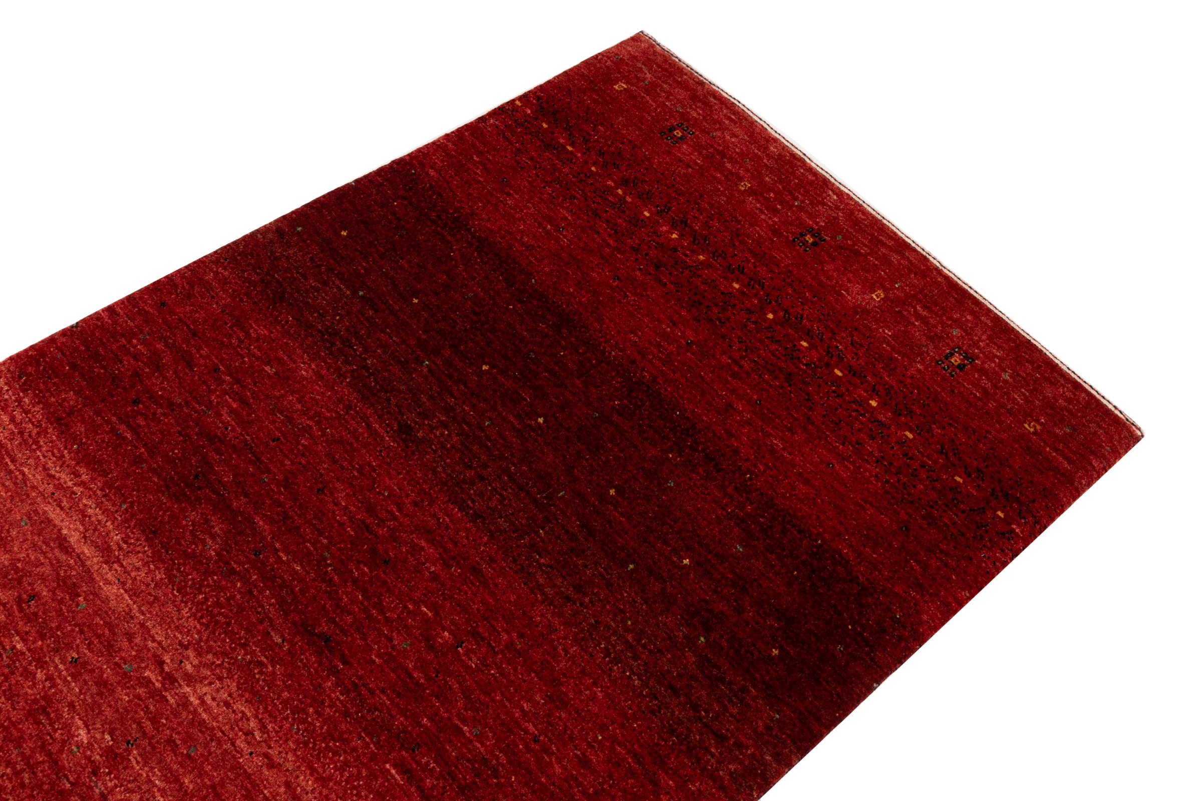 This beautiful rug is a Persian Gabbeh, one of the highest quality Gabbeh rugs available. These rugs are hand-knotted by nomads or semi-nomads in Iran using traditional artisan techniques. The simple motifs and patterns are often inspired by the nomads' immediate surroundings, featuring elements like camels, trees, or bushes. Persian Gabbeh carpets are made from wool sourced from locally raised sheep herds, with the wool typically spun by hand. Thus each of these Oriental rugs thus embodies a unique character steeped in centuries-old culture.