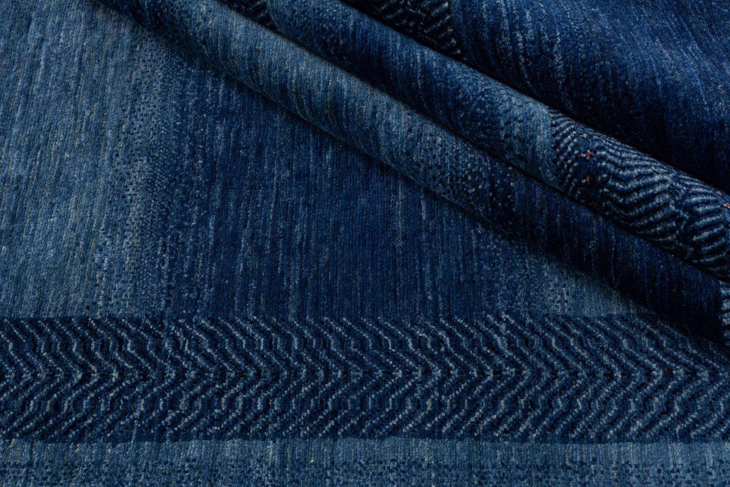 This beautiful rug is a Persian Gabbeh, one of the highest quality Gabbeh rugs available. These rugs are hand-knotted by nomads or semi-nomads in Iran using traditional artisan techniques. The simple motifs and patterns are often inspired by the nomads' immediate surroundings, featuring elements like camels, trees, or bushes. Persian Gabbeh carpets are made from wool sourced from locally raised sheep herds, with the wool typically spun by hand. Thus each of these Oriental rugs thus embodies a unique character steeped in centuries-old culture.