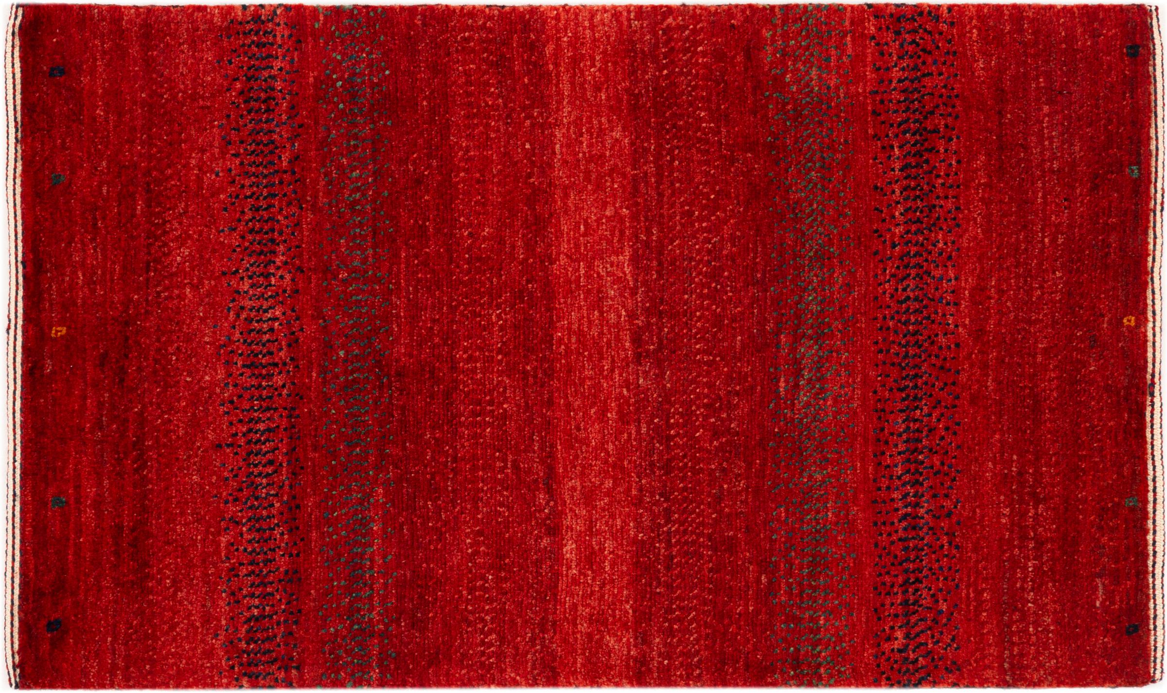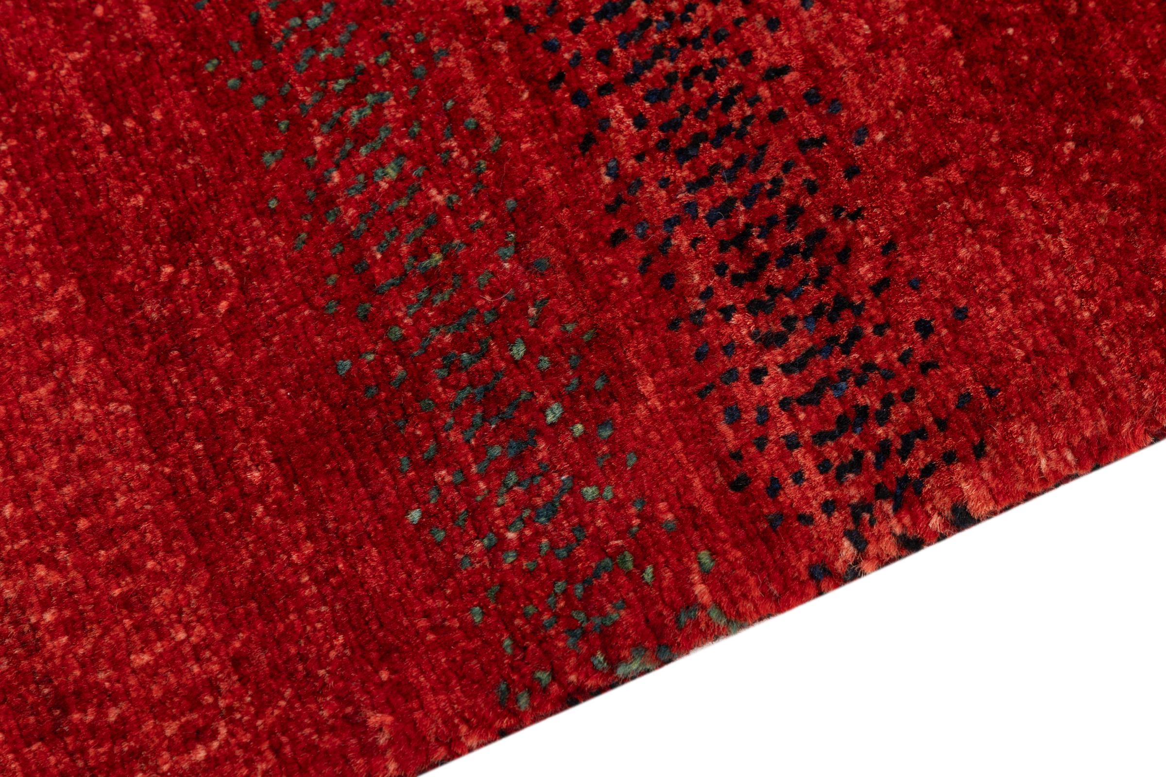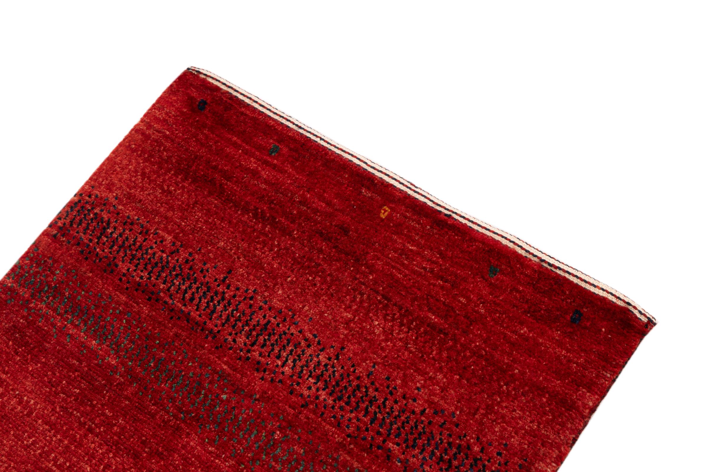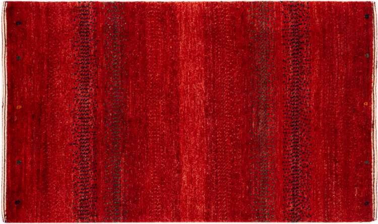 This beautiful rug is a Persian Gabbeh, one of the highest quality Gabbeh rugs available. These rugs are hand-knotted by nomads or semi-nomads in Iran using traditional artisan techniques. The simple motifs and patterns are often inspired by the nomads' immediate surroundings, featuring elements like camels, trees, or bushes. Persian Gabbeh carpets are made from wool sourced from locally raised sheep herds, with the wool typically spun by hand. Thus each of these Oriental rugs thus embodies a unique character steeped in centuries-old culture.