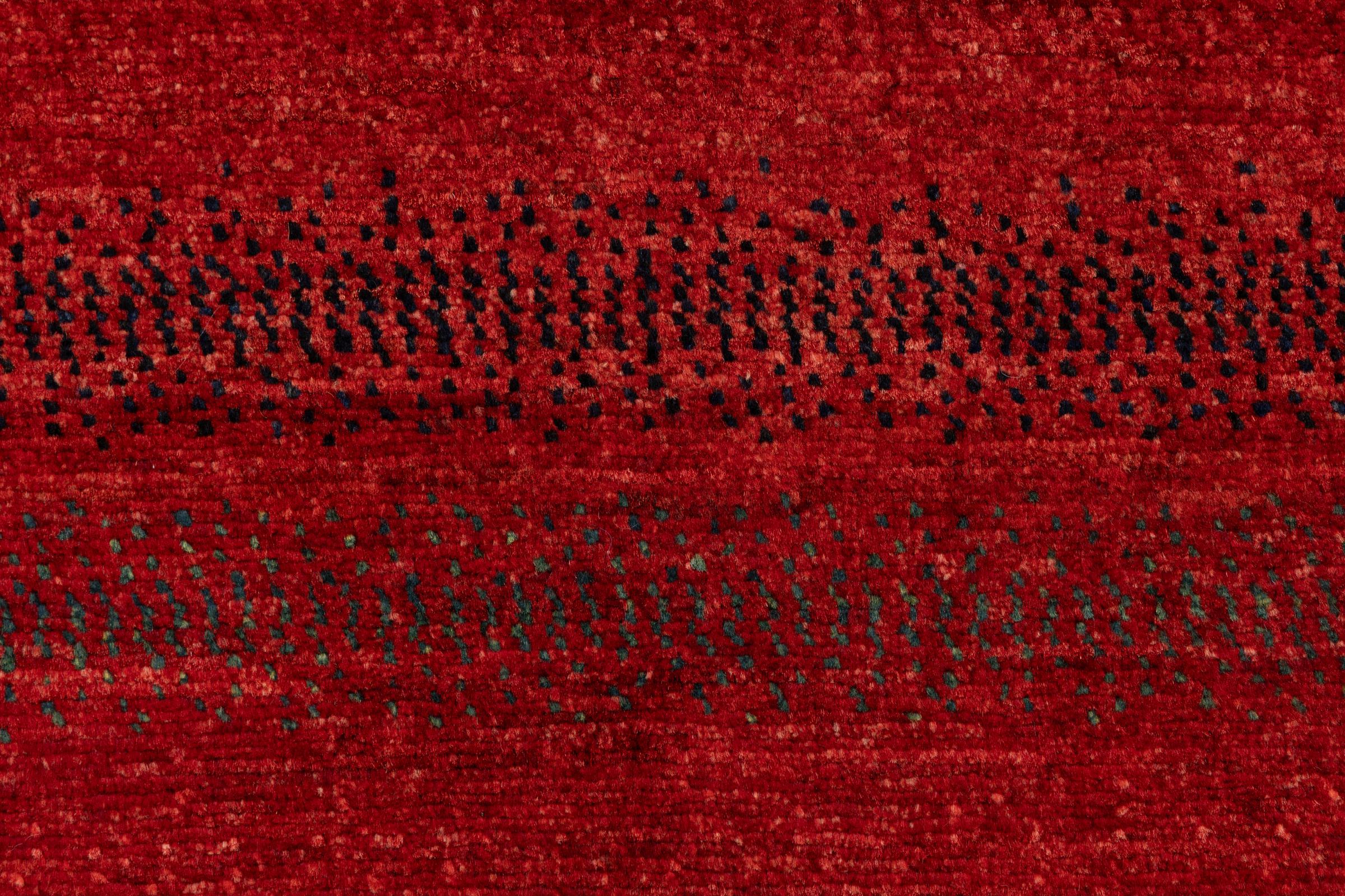 This Gabbeh rug is has been knotted by hand in southern Persia. Thus, it counts to the most valuable Gabbeh ever made. Not only it consists of fine sheep wool, it also has been dyed from natural colors. You wouldn't want to miss ever again such a soft and high quality rug in your home.