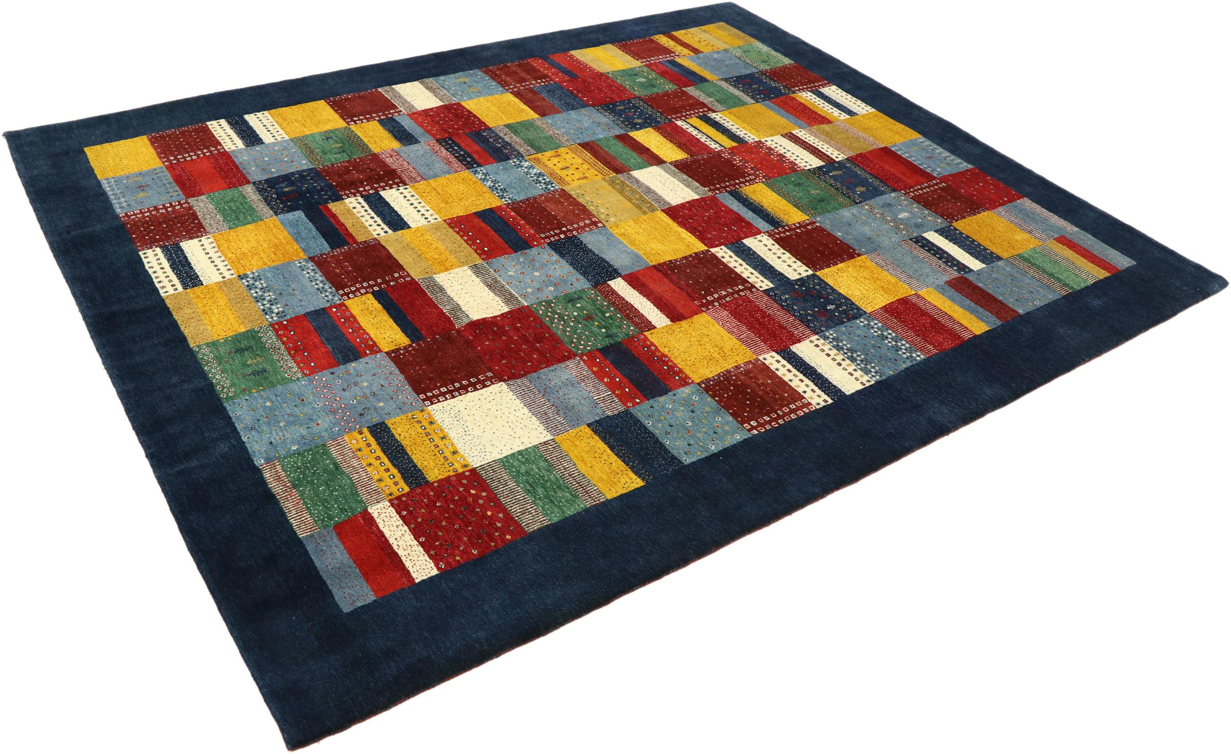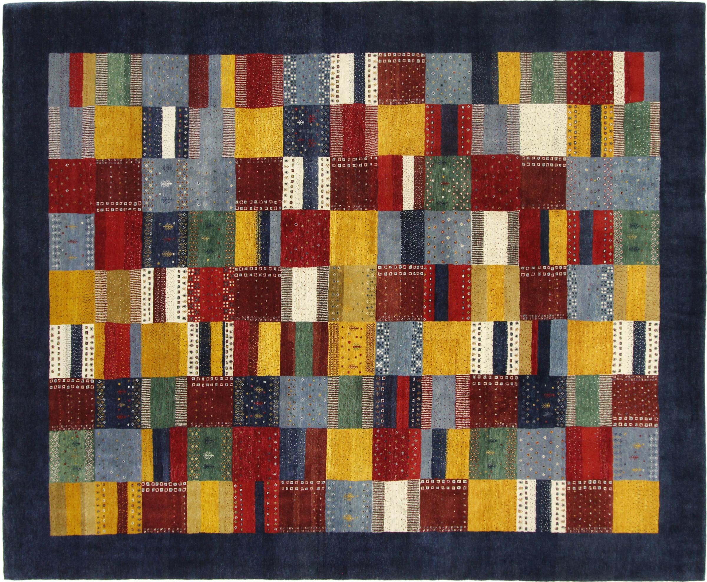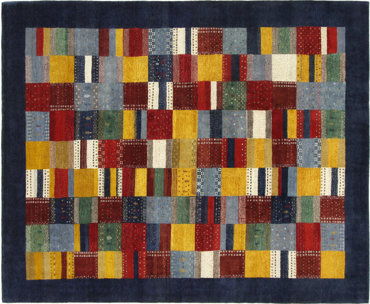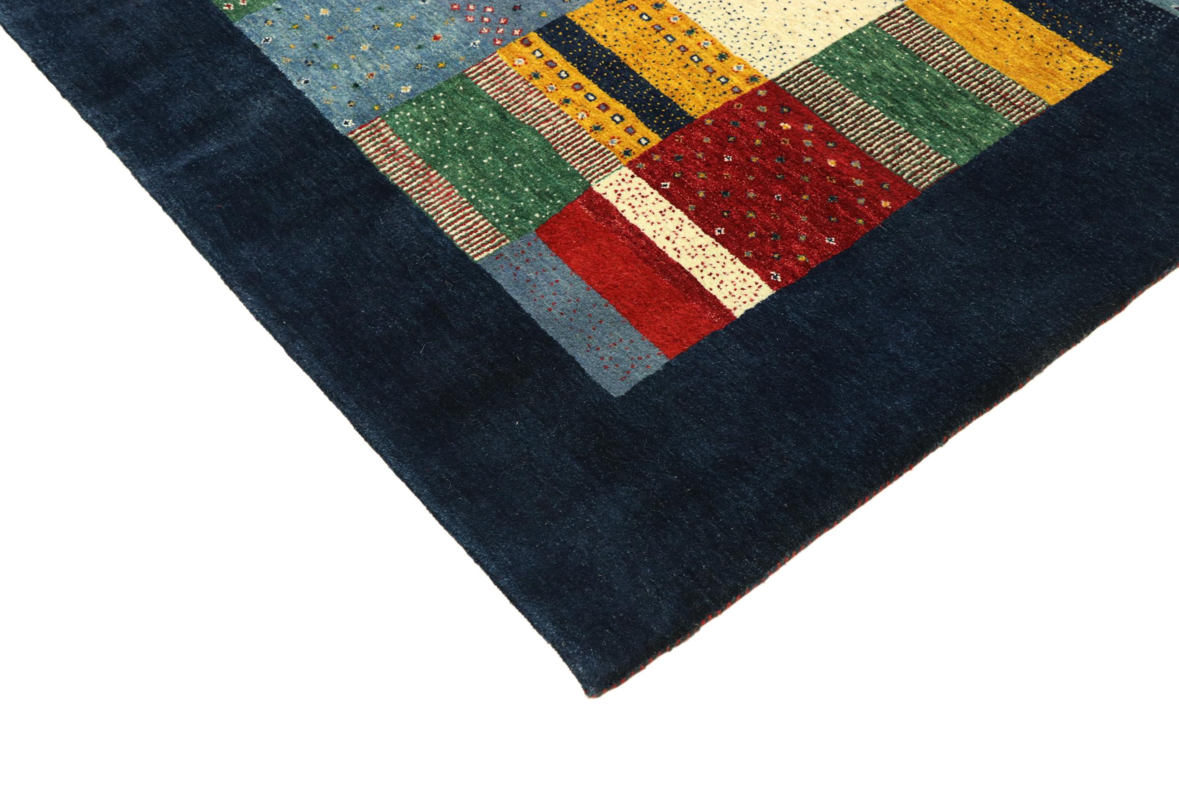 This beautiful rug is a Persian Gabbeh, one of the highest quality Gabbeh rugs available. These rugs are hand-knotted by nomads or semi-nomads in Iran using traditional artisan techniques. The simple motifs and patterns are often inspired by the nomads' immediate surroundings, featuring elements like camels, trees, or bushes. Persian Gabbeh carpets are made from wool sourced from locally raised sheep herds, with the wool typically spun by hand. Thus each of these Oriental rugs thus embodies a unique character steeped in centuries-old culture.
