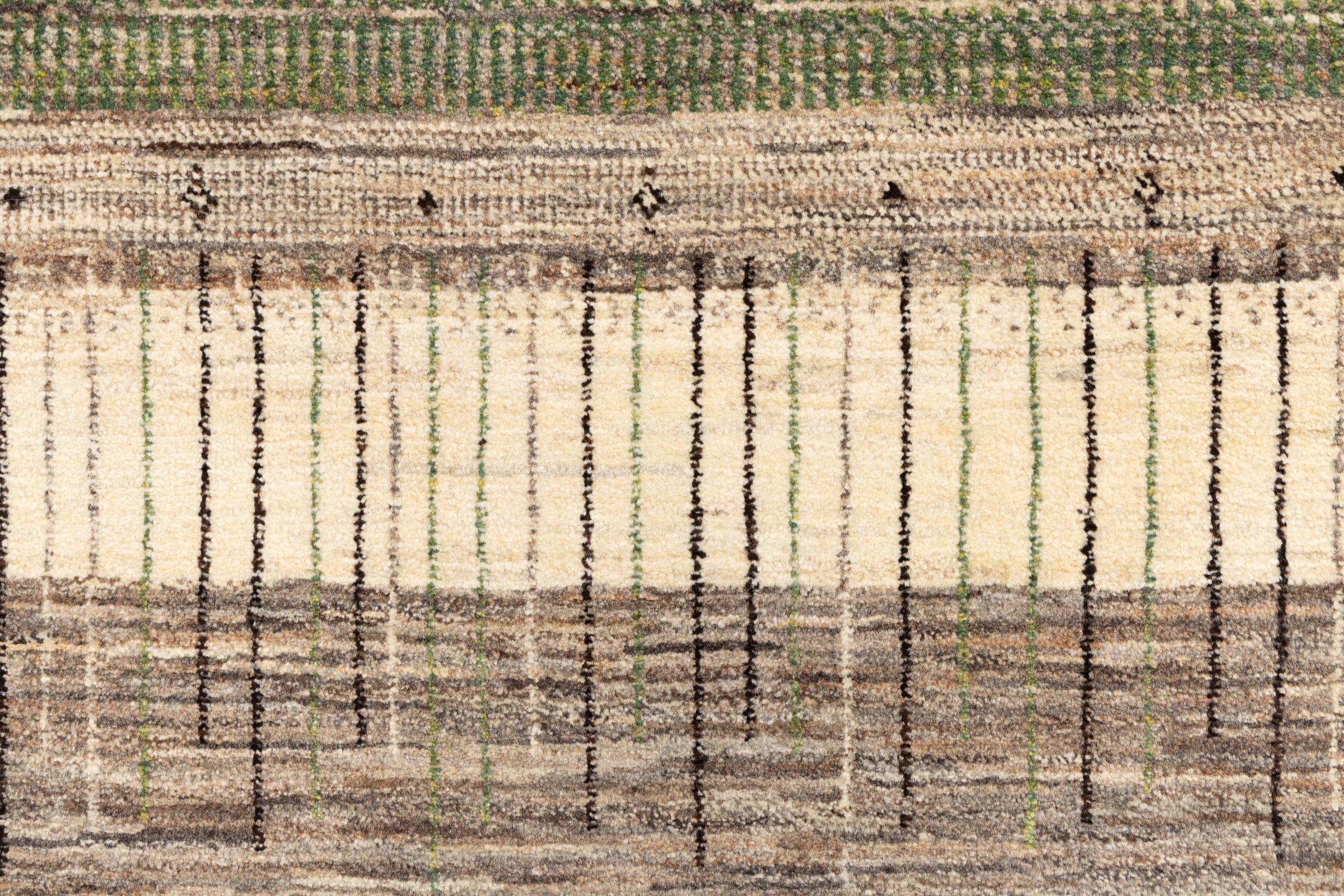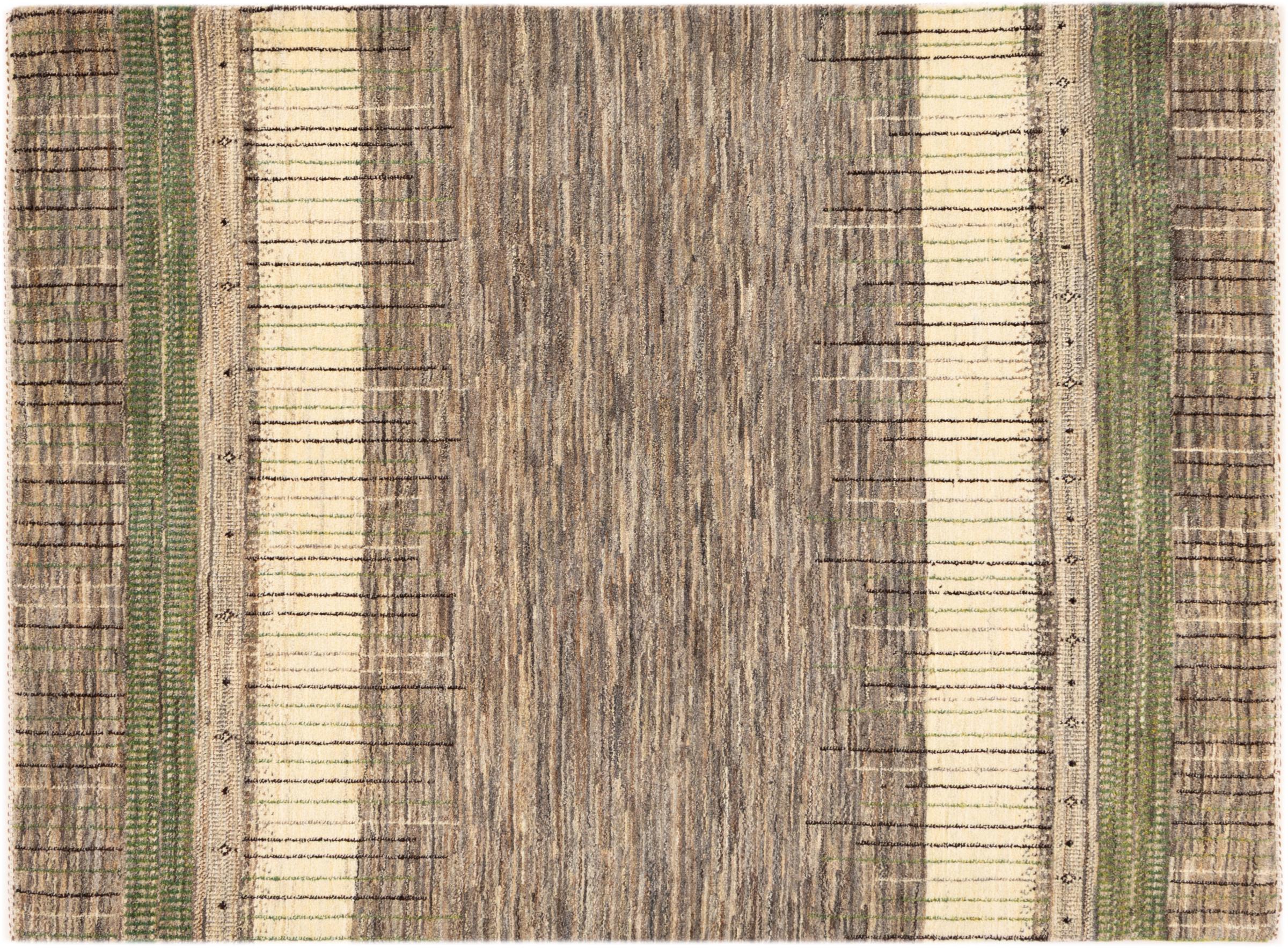 This beautiful rug is a Persian Gabbeh, one of the highest quality Gabbeh rugs available. These rugs are hand-knotted by nomads or semi-nomads in Iran using traditional artisan techniques. The simple motifs and patterns are often inspired by the nomads' immediate surroundings, featuring elements like camels, trees, or bushes. Persian Gabbeh carpets are made from wool sourced from locally raised sheep herds, with the wool typically spun by hand. Thus each of these Oriental rugs thus embodies a unique character steeped in centuries-old culture.