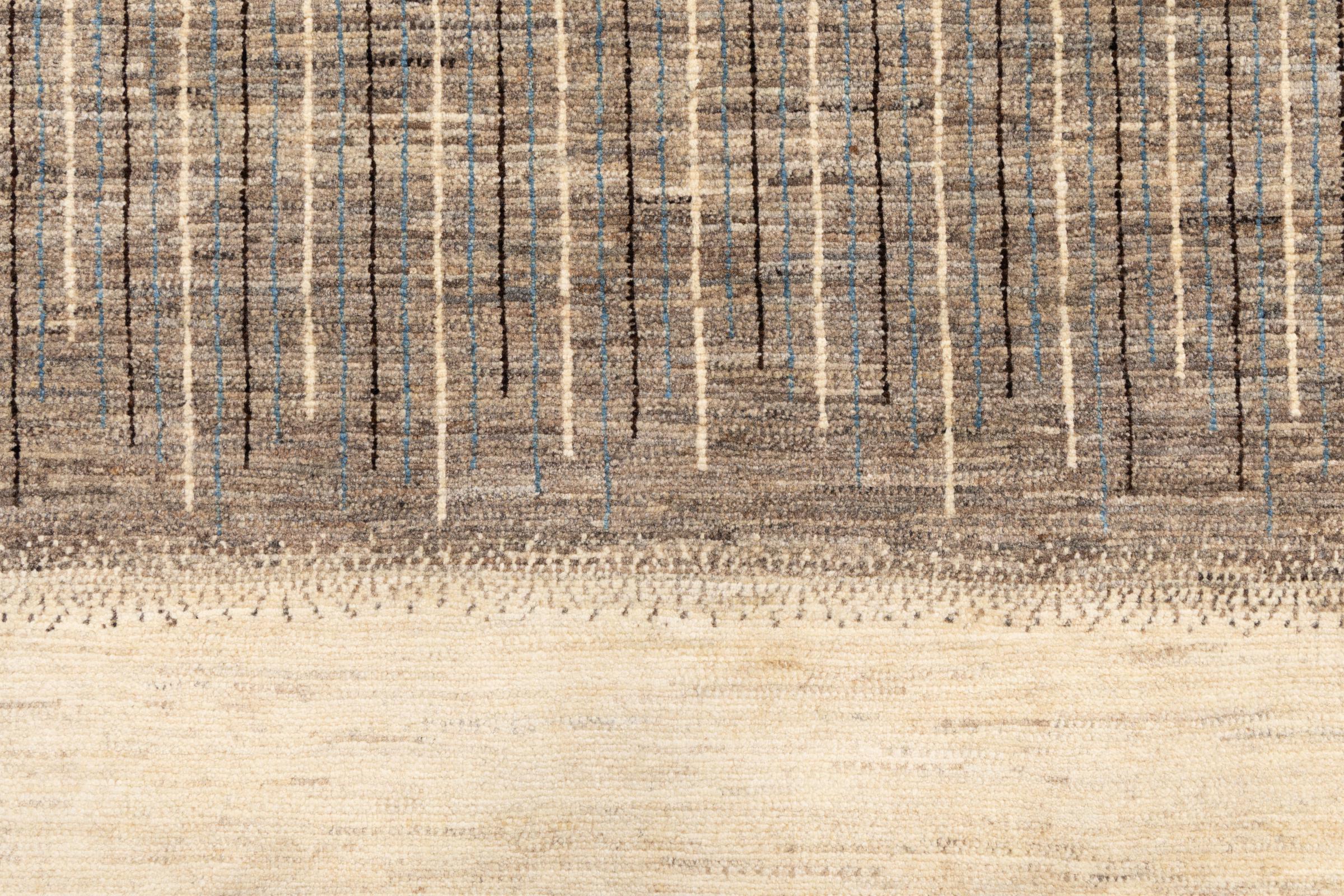 This beautiful rug is a Persian Gabbeh, one of the highest quality Gabbeh rugs available. These rugs are hand-knotted by nomads or semi-nomads in Iran using traditional artisan techniques. The simple motifs and patterns are often inspired by the nomads' immediate surroundings, featuring elements like camels, trees, or bushes. Persian Gabbeh carpets are made from wool sourced from locally raised sheep herds, with the wool typically spun by hand. Thus each of these Oriental rugs thus embodies a unique character steeped in centuries-old culture.