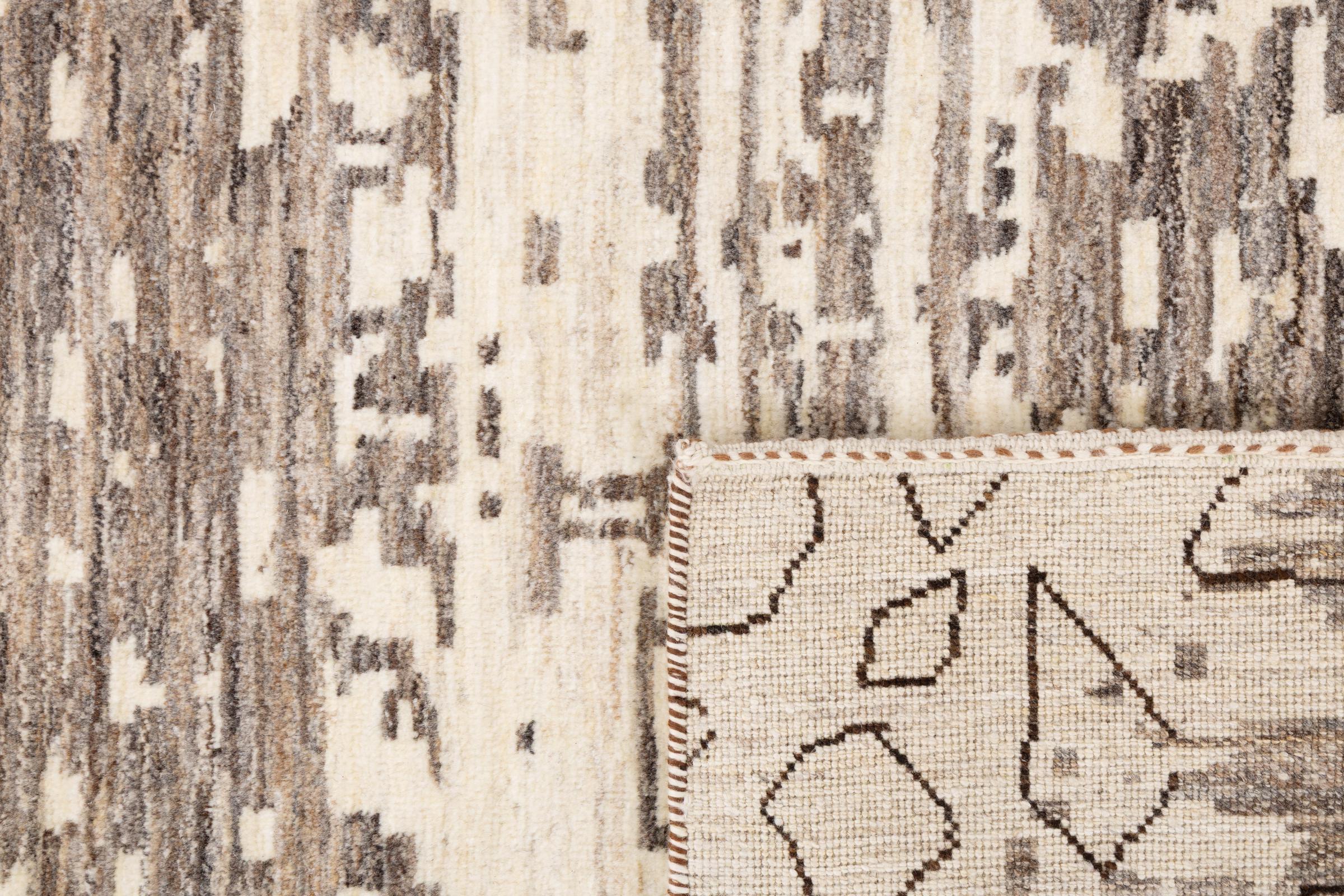 This beautiful rug is a Persian Gabbeh, one of the highest quality Gabbeh rugs available. These rugs are hand-knotted by nomads or semi-nomads in Iran using traditional artisan techniques. The simple motifs and patterns are often inspired by the nomads' immediate surroundings, featuring elements like camels, trees, or bushes. Persian Gabbeh carpets are made from wool sourced from locally raised sheep herds, with the wool typically spun by hand. Thus each of these Oriental rugs thus embodies a unique character steeped in centuries-old culture.