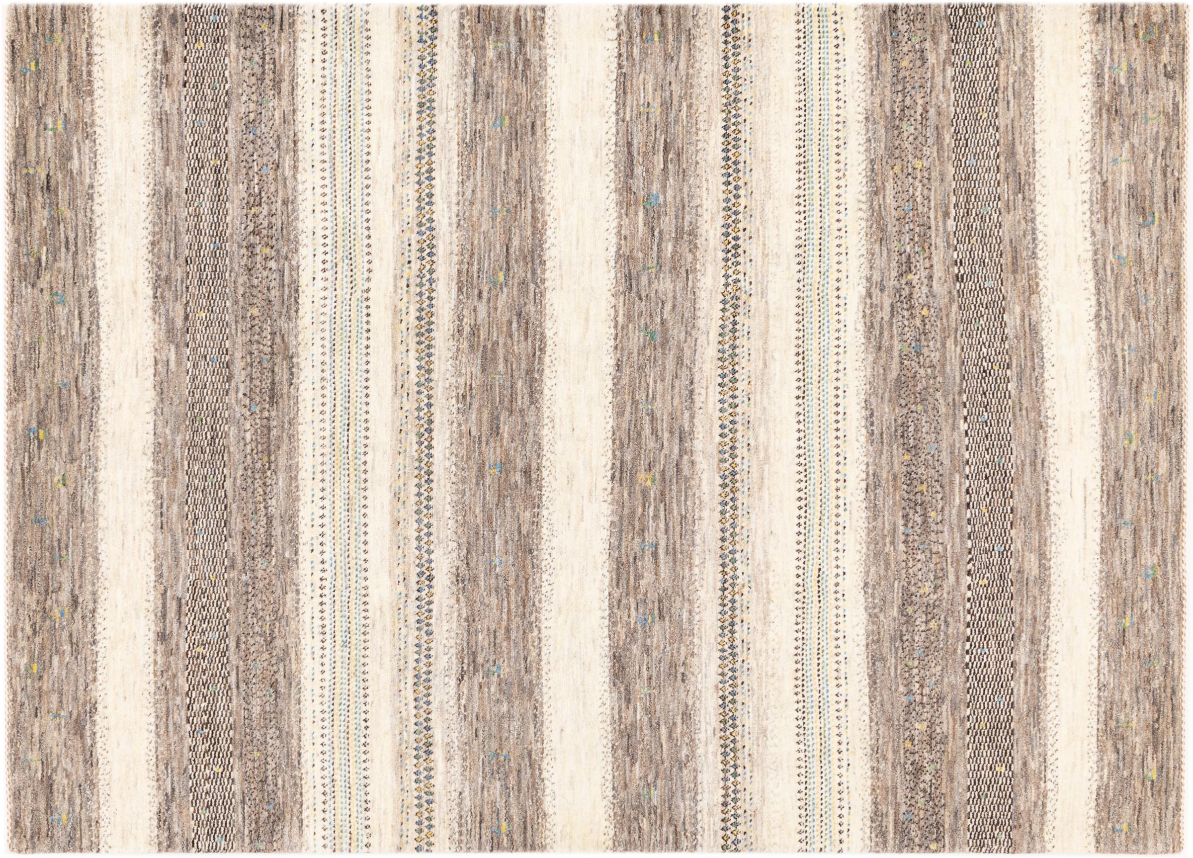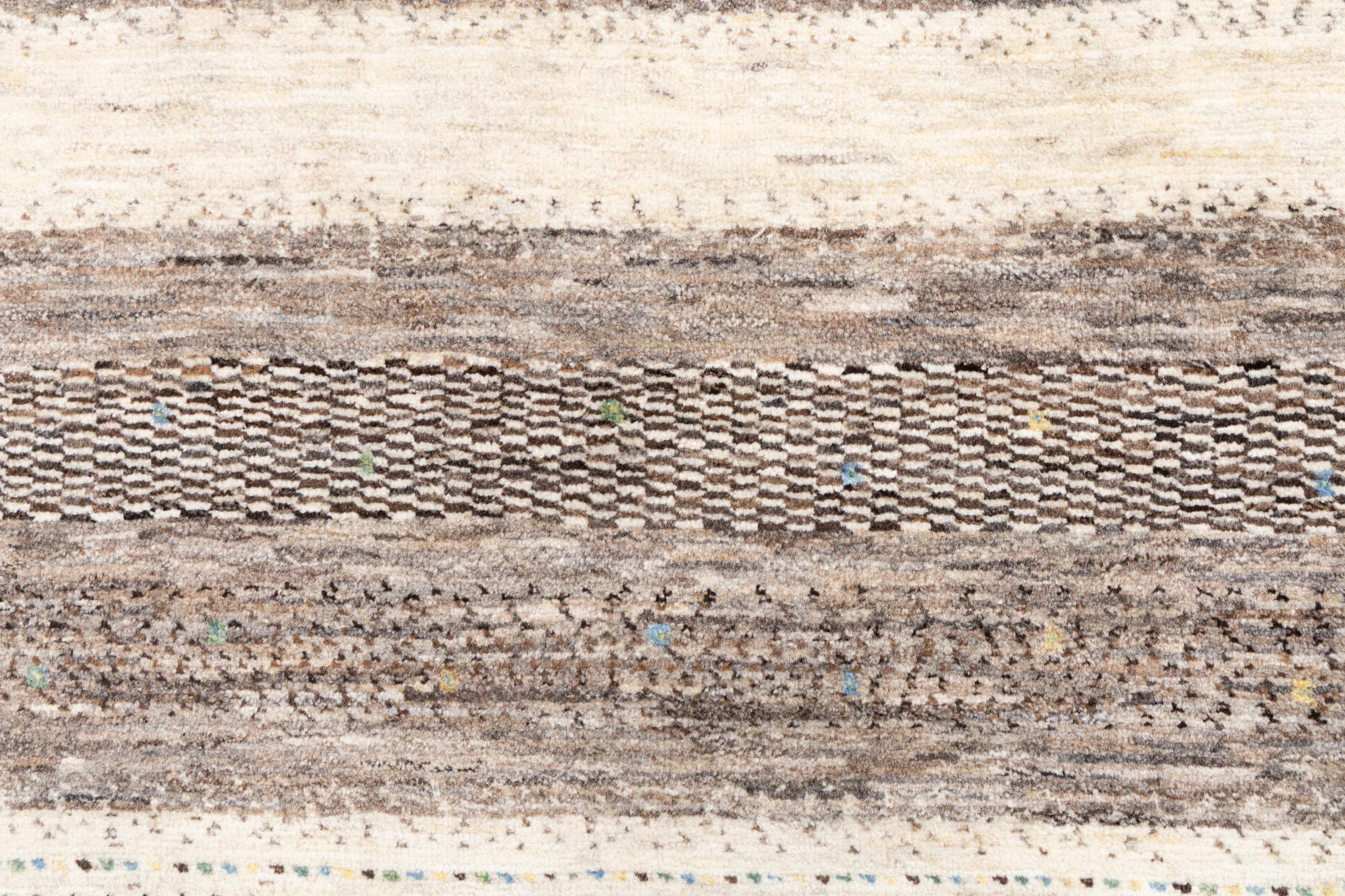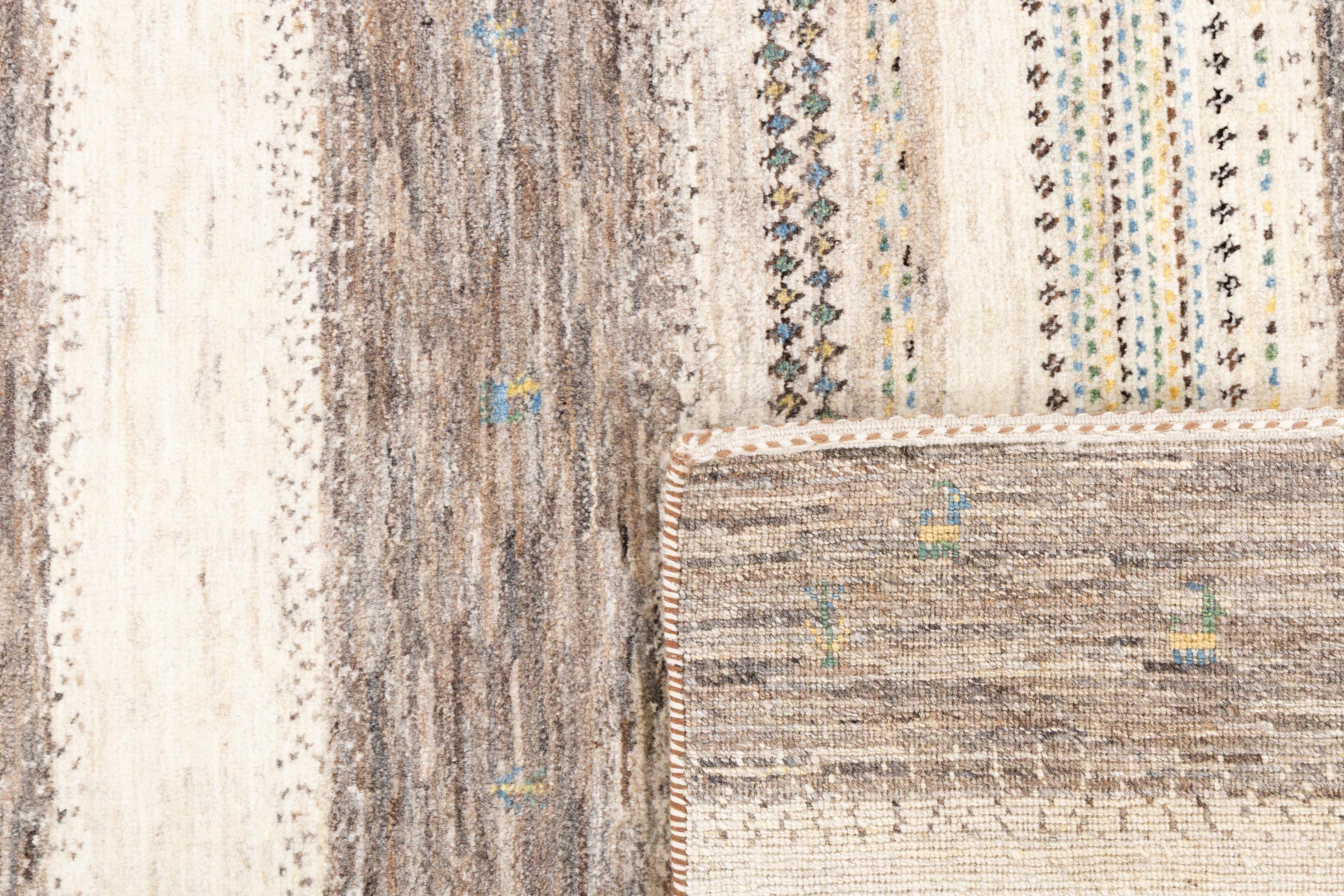 This beautiful rug is a Persian Gabbeh, one of the highest quality Gabbeh rugs available. These rugs are hand-knotted by nomads or semi-nomads in Iran using traditional artisan techniques. The simple motifs and patterns are often inspired by the nomads' immediate surroundings, featuring elements like camels, trees, or bushes. Persian Gabbeh carpets are made from wool sourced from locally raised sheep herds, with the wool typically spun by hand. Thus each of these Oriental rugs thus embodies a unique character steeped in centuries-old culture.
