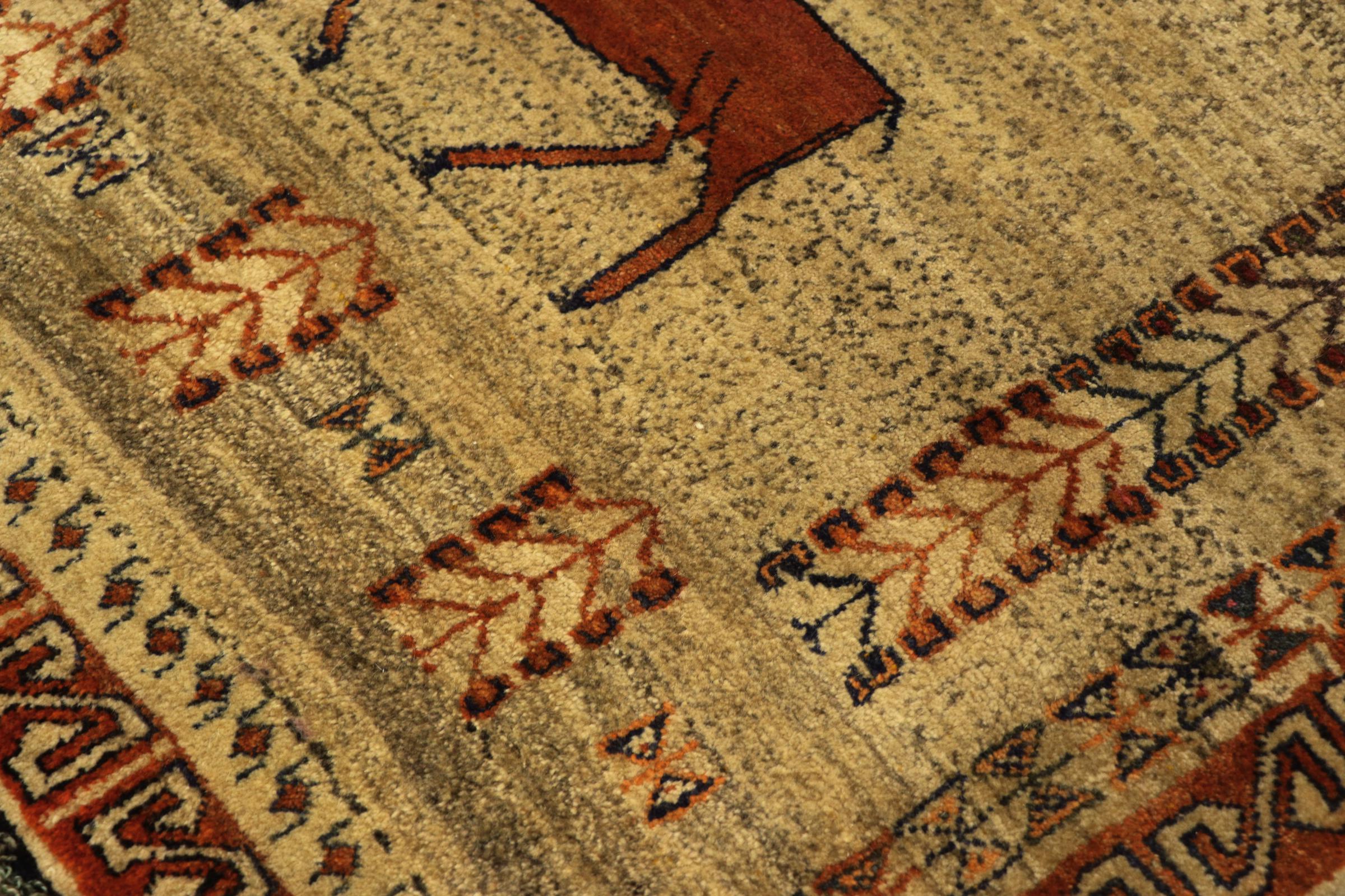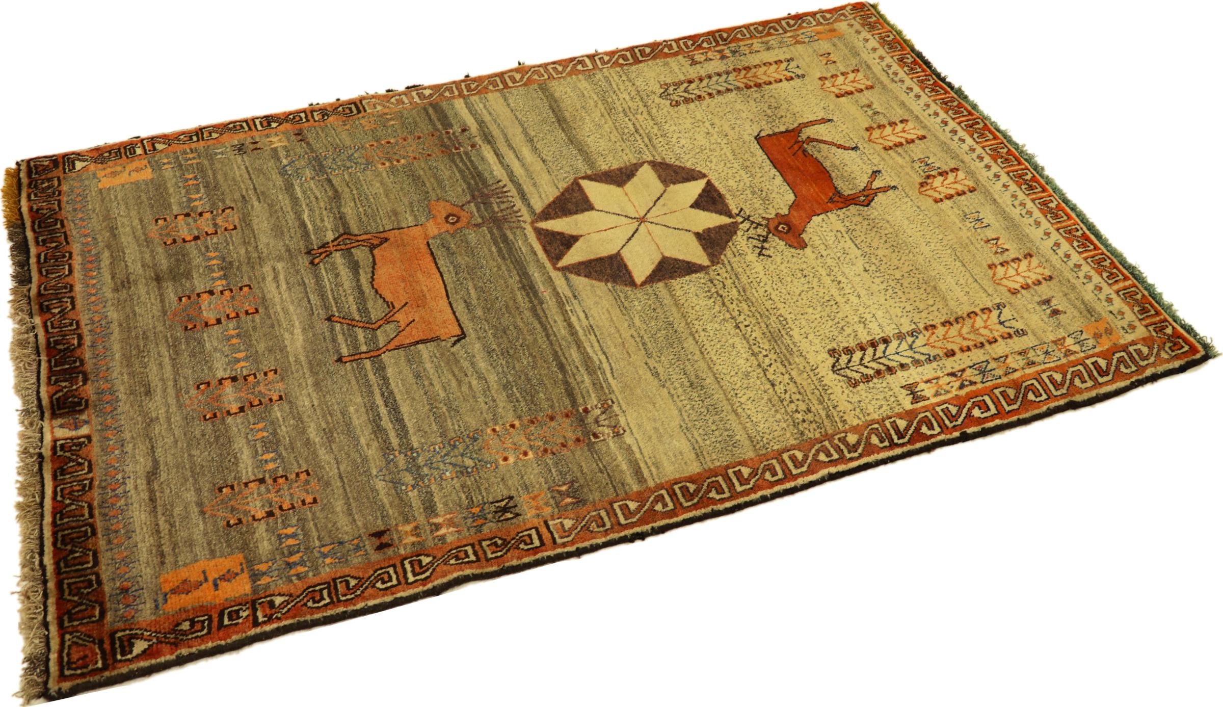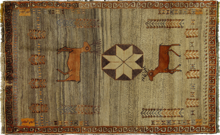 This beautiful rug is a Persian Gabbeh, one of the highest quality Gabbeh rugs available. These rugs are hand-knotted by nomads or semi-nomads in Iran using traditional artisan techniques. The simple motifs and patterns are often inspired by the nomads' immediate surroundings, featuring elements like camels, trees, or bushes. Persian Gabbeh carpets are made from wool sourced from locally raised sheep herds, with the wool typically spun by hand. Thus each of these Oriental rugs thus embodies a unique character steeped in centuries-old culture.