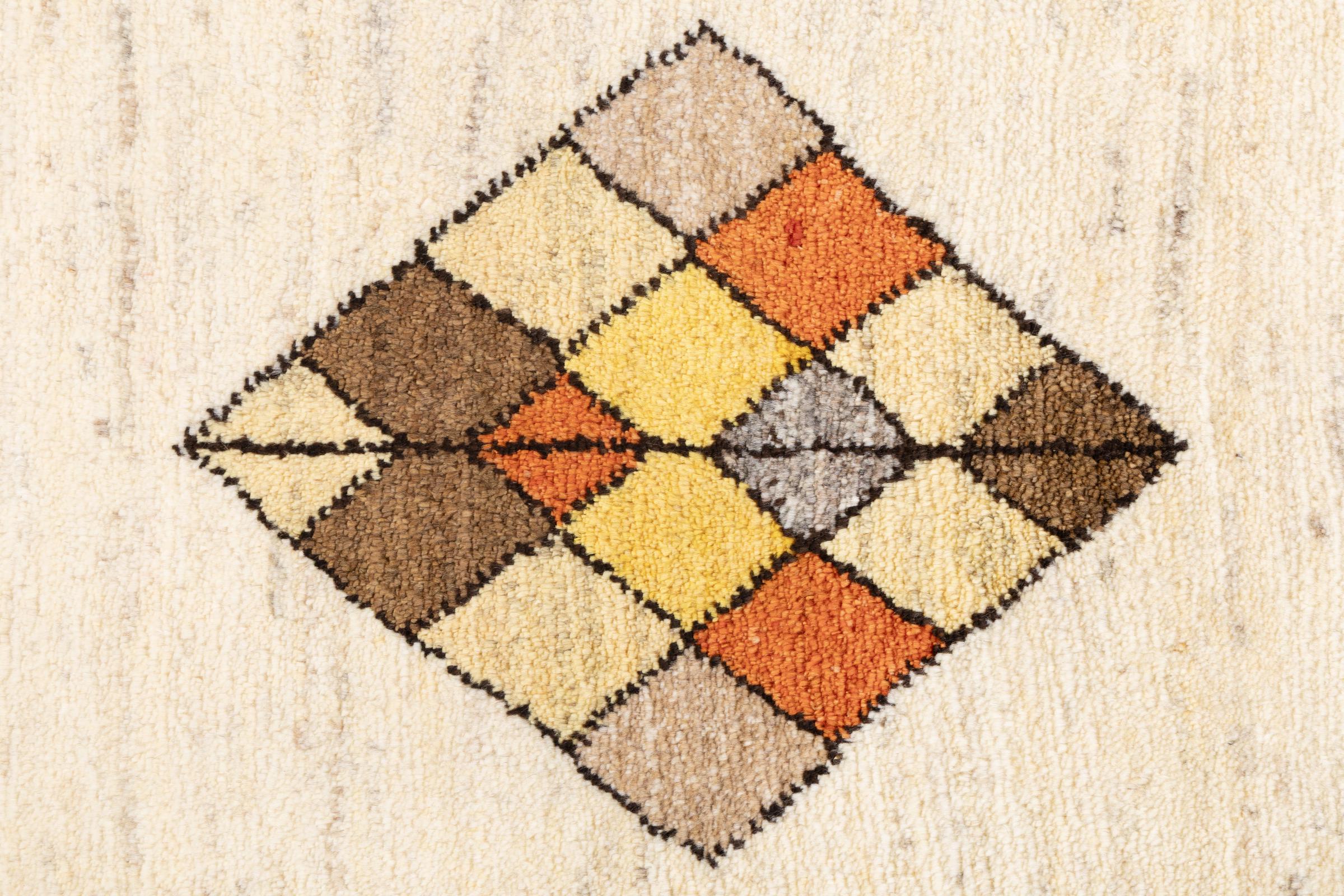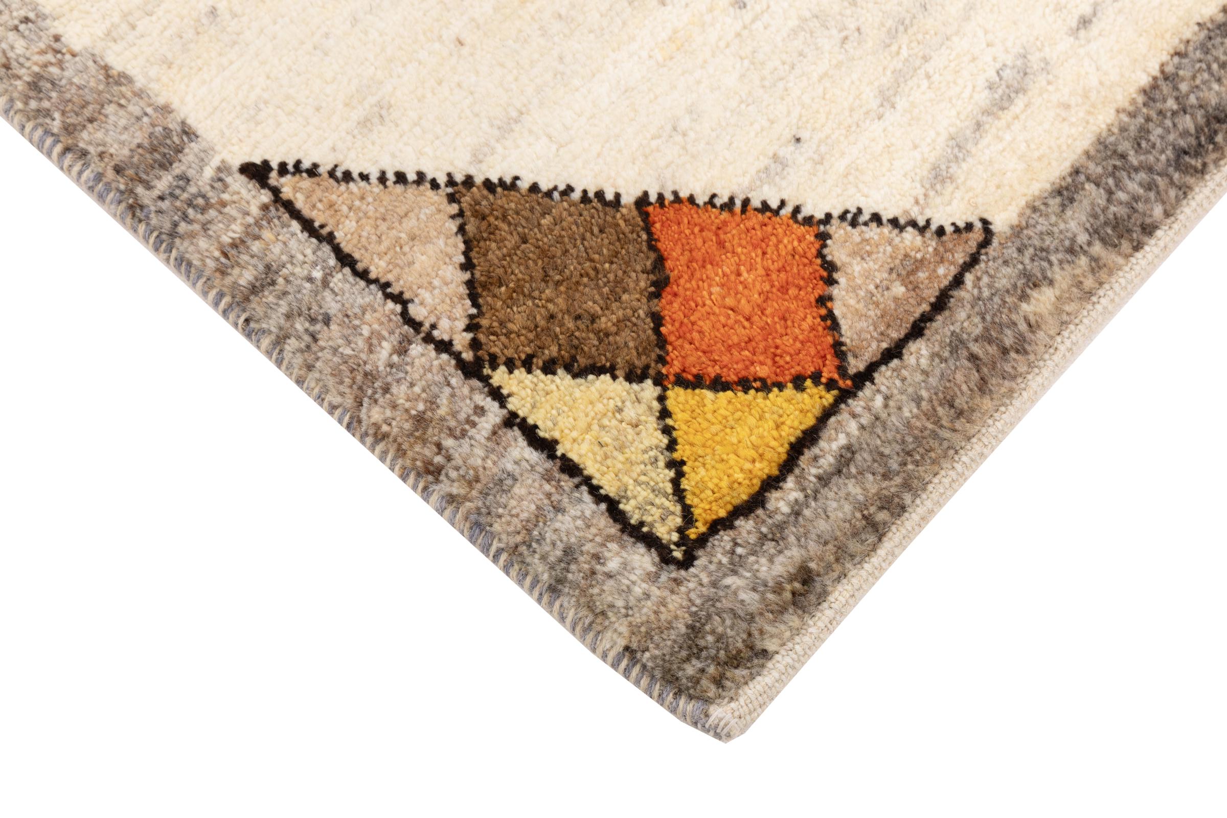 The word "natural" perfectly describes this beautiful rug. It has been knotted from sheep wool spun by hand. Additionally, this Persian Gabbeh has been crafted in old Persian tradition making it a robust piece of finest handicraft.