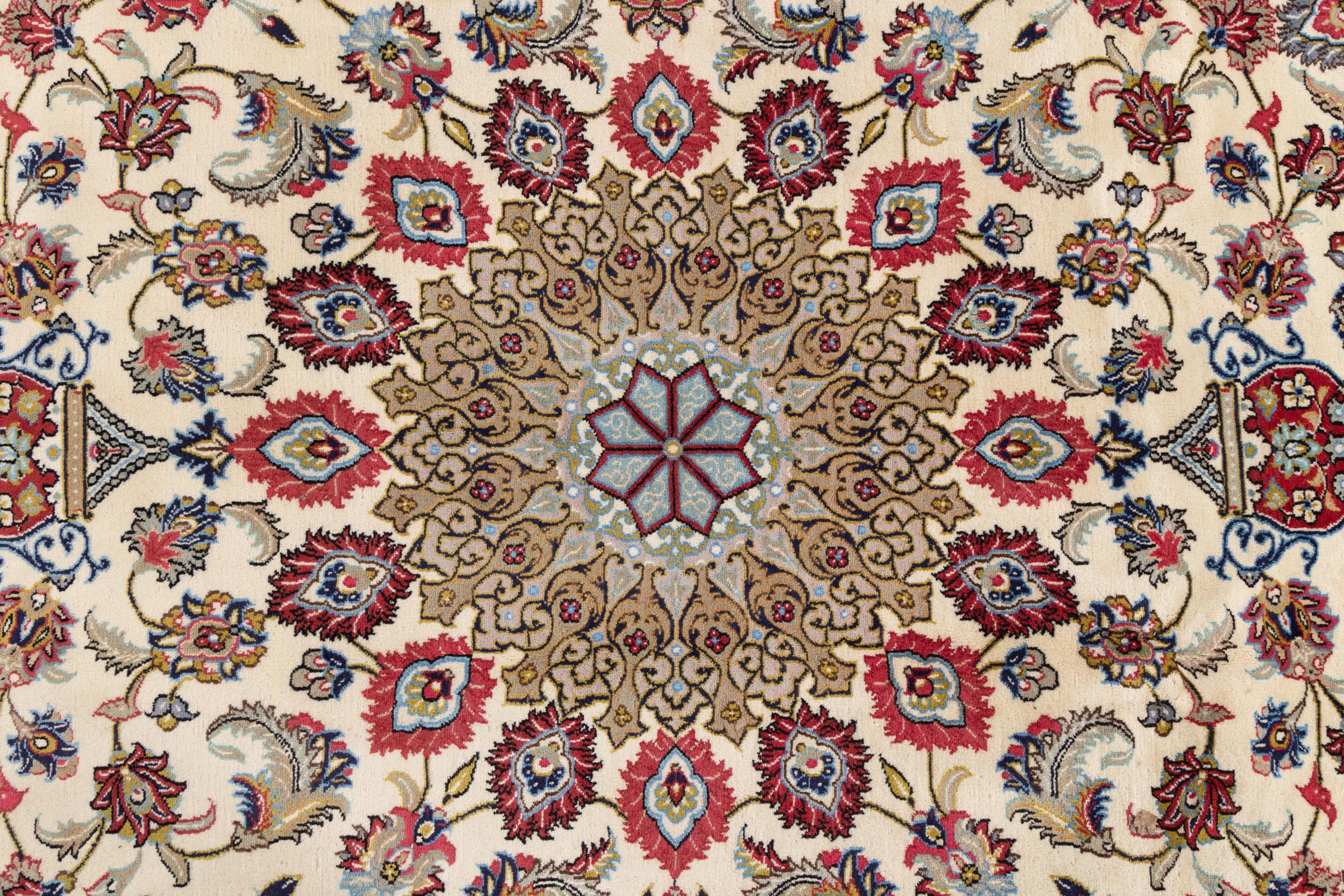 This carpet comes from Iran (formerly Persia) and as a Persian rug enjoys probably the highest reputation among all hand-knotted rug types. No other region looks back on such a long tradition in rug making as Iran. Thus, the probably finest and most elaborate rugs originate here. The robustness, durability and quality of the Persian knot are still unsurpassed today. Persian rugs are usually named after their region of origin. For instance, a Nain, a Ghom as well as an Isfahan carpet comes from the city of the same name in Iran.
