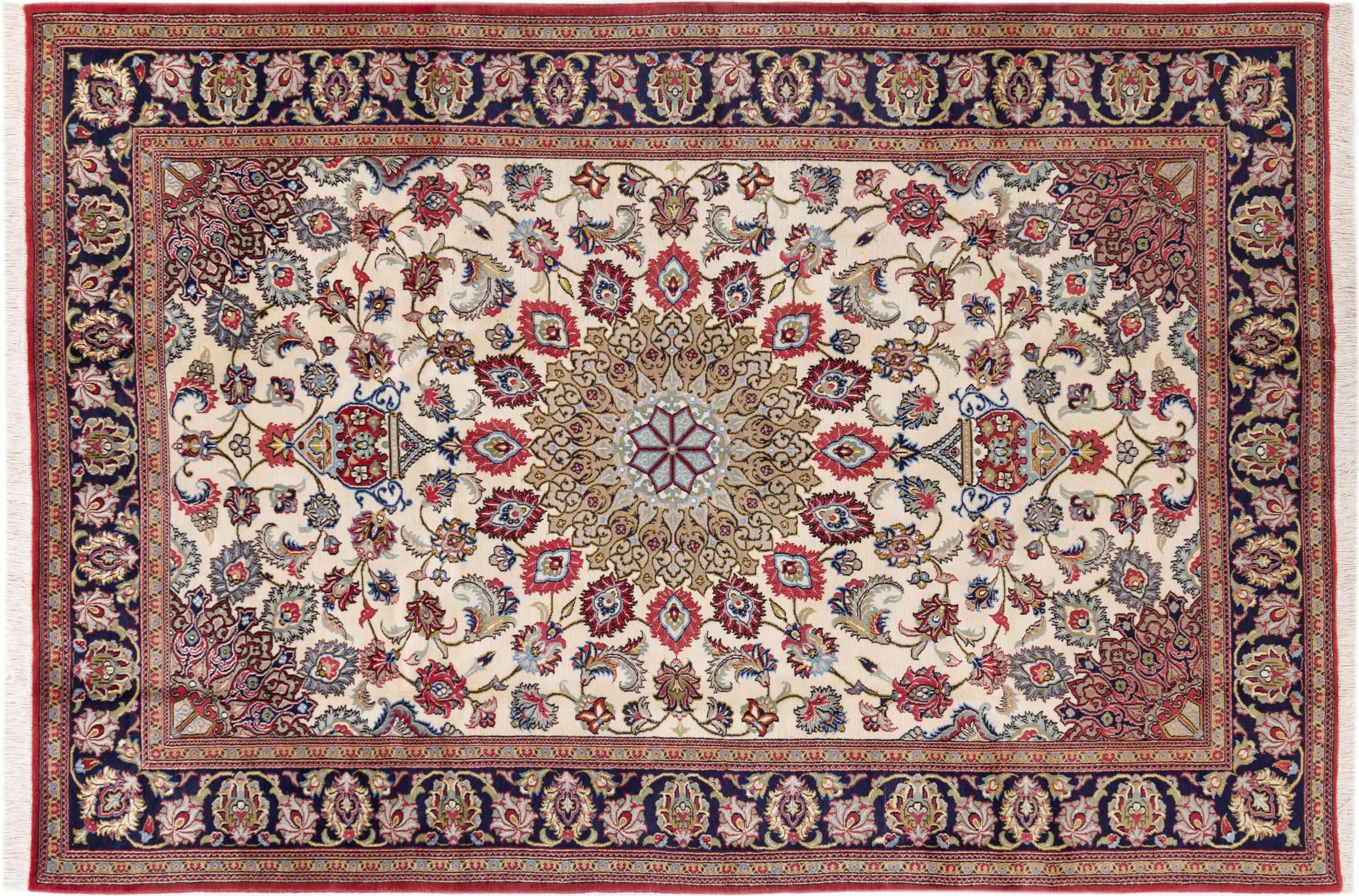 Rug ID: 1539900671321 Size: 9'6"x6'6" ft Thickness: ap. 0.39 in Knot density: 232 - 258 / square inch Manufacturing: Knotted by hand Pile: Cork wool Warp: Cotton Origin: Persia / Iran Age: New Weight: ap. 44 lb In stock: Unique - Only 1 in stock