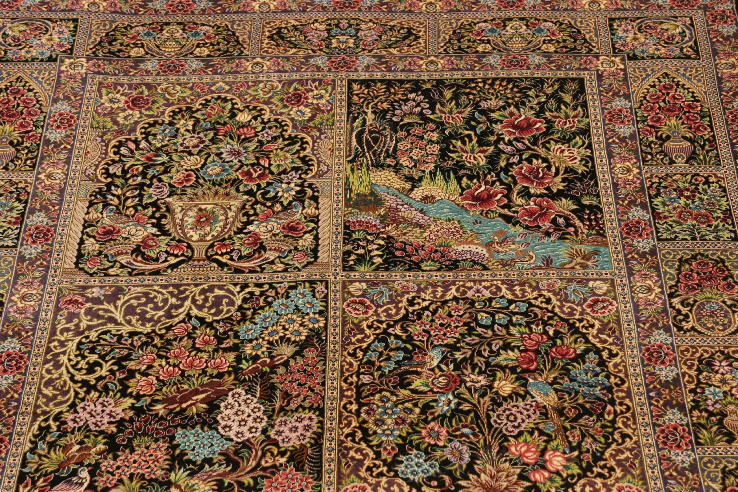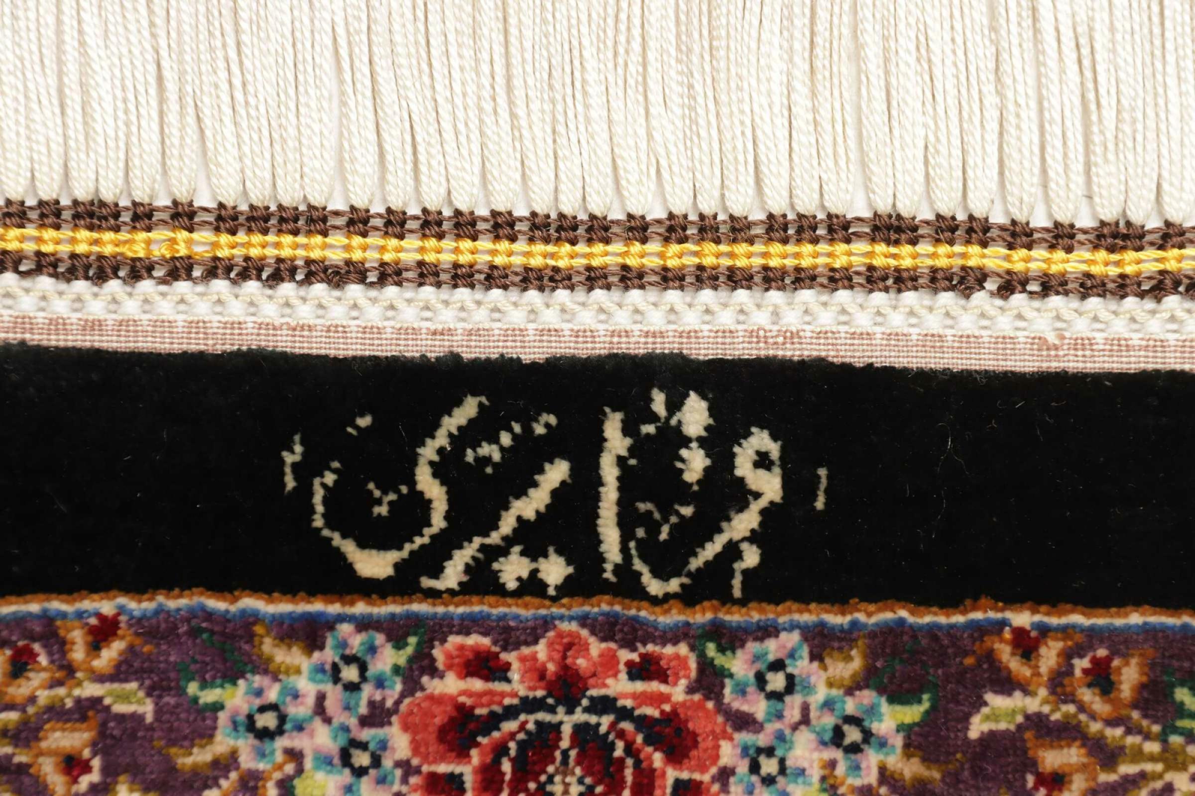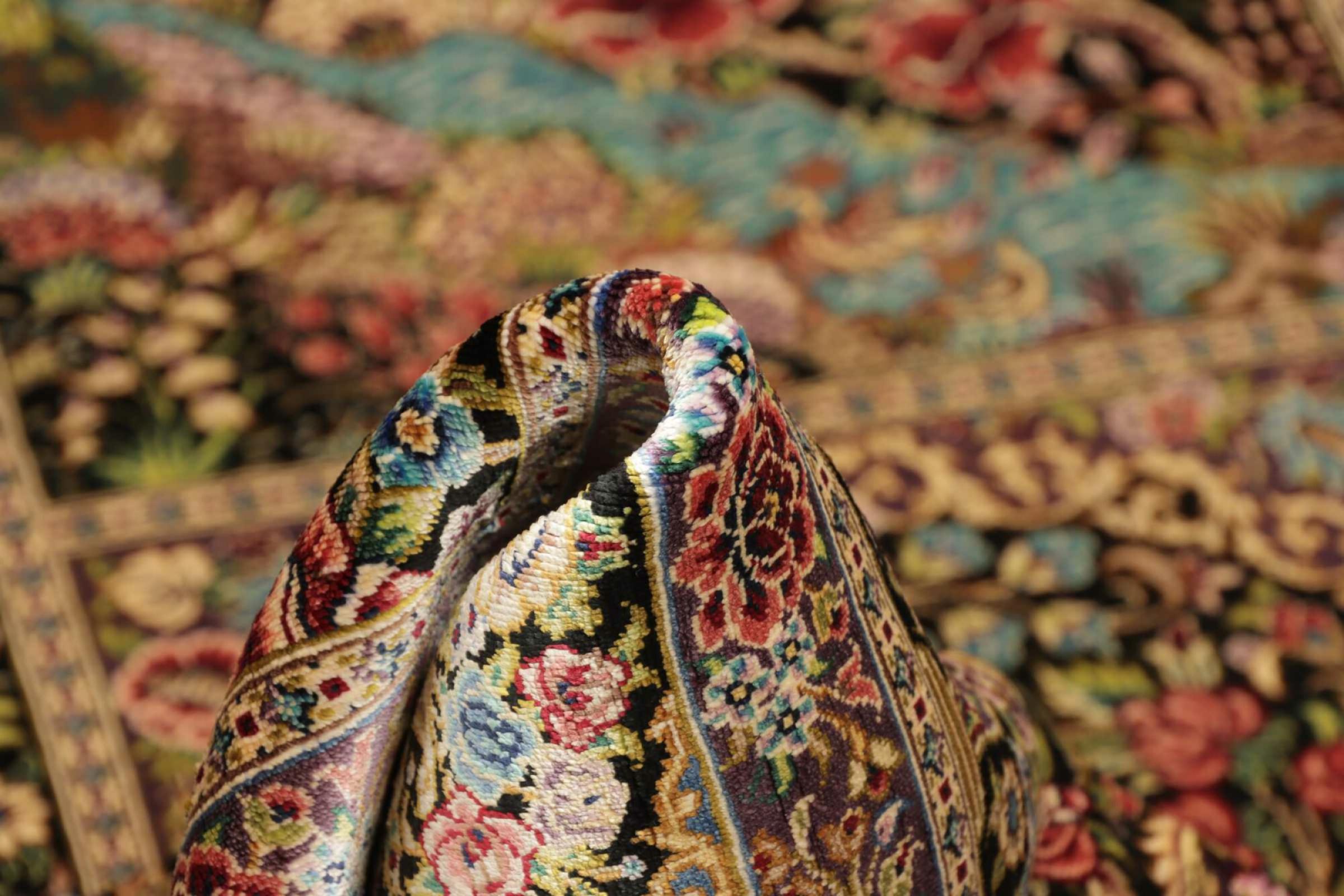 A Persian silk rug stands for pure luxury. This rug in particular, since Qom (also called Qum) silk rugs are known to be the most sophisticated and to count among the finest Persian rugs. Only a skilled master is able to craft such a rug, which easily takes over one year work time. The natural silk from this area is highly popular and said to be the highest-quality silk ever made. It has a most beautiful shine and is even sufficiently robust for frequented rooms.