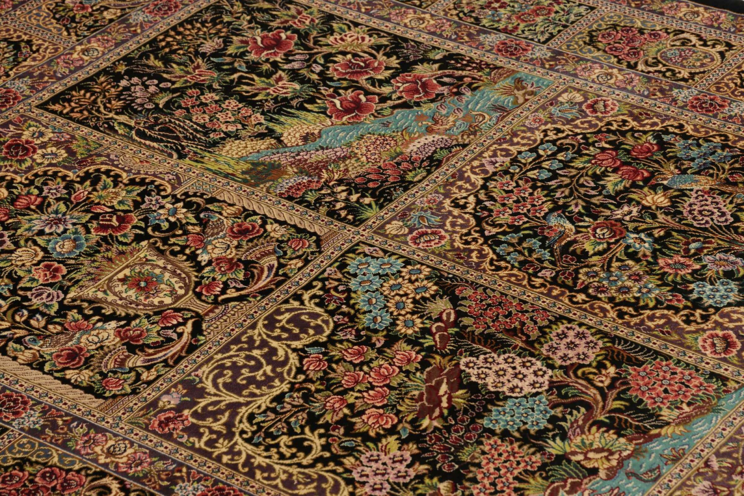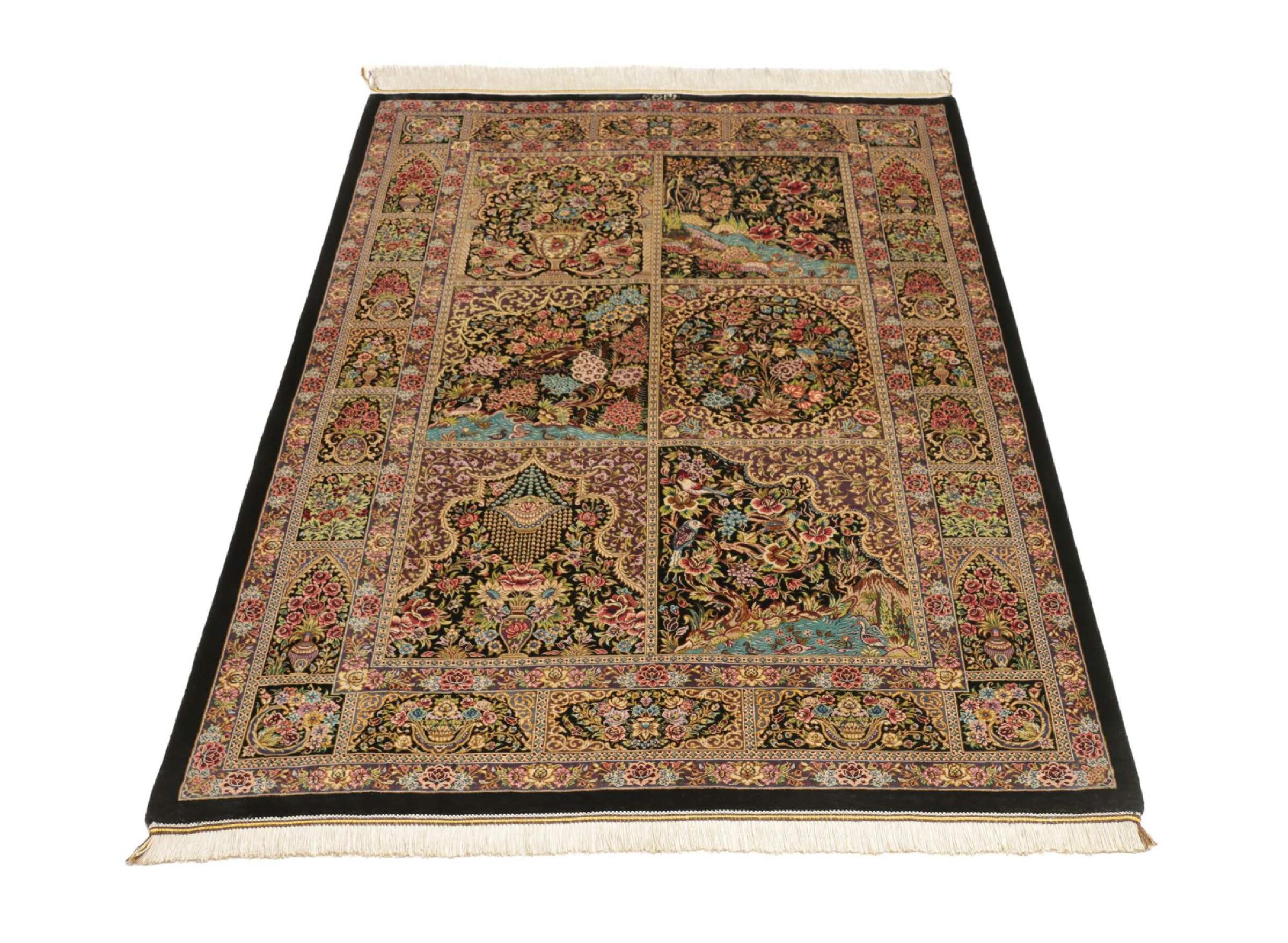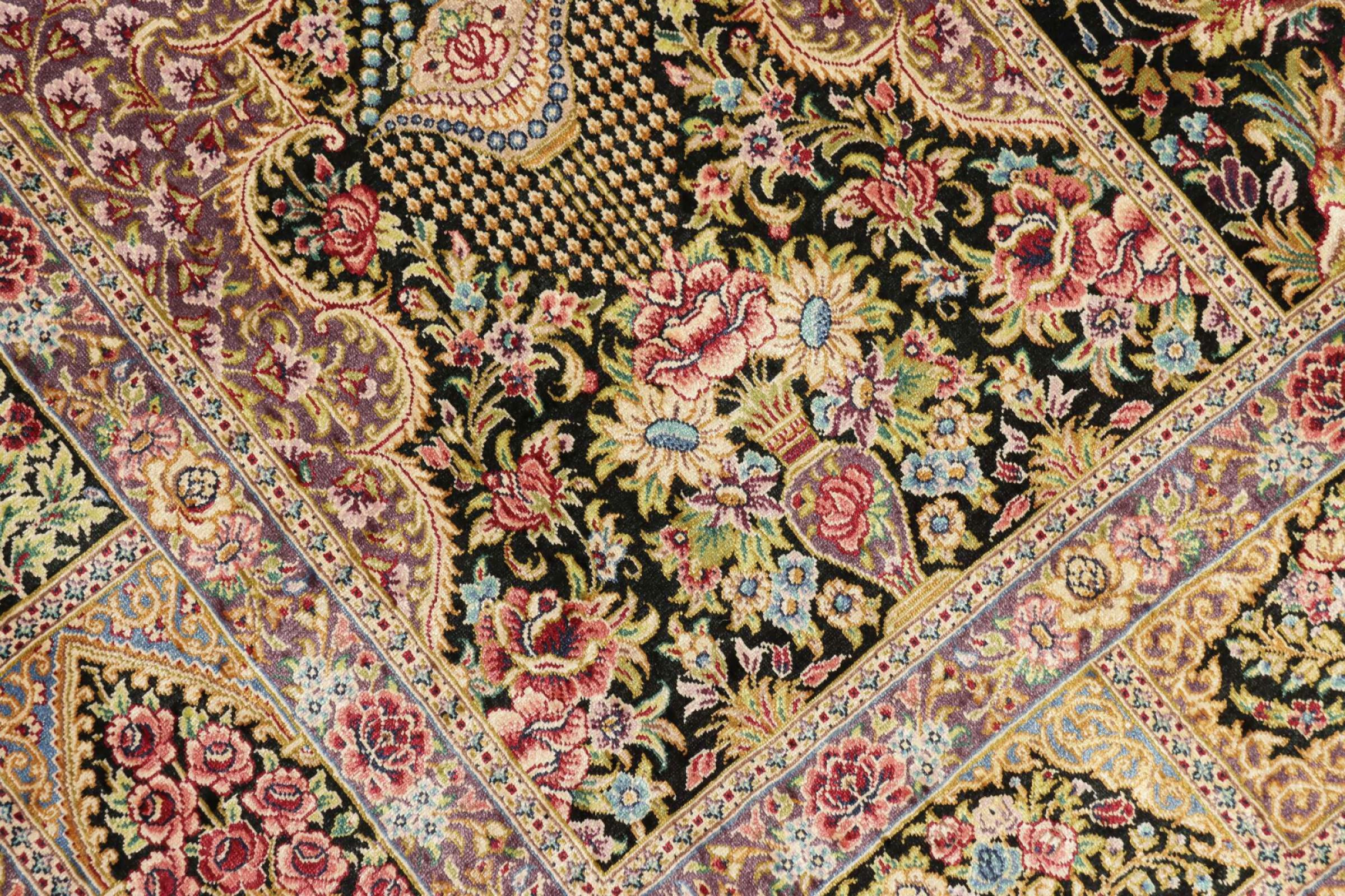 A Persian silk rug stands for pure luxury. This rug in particular, since Qom (also called Qum) silk rugs are known to be the most sophisticated and to count among the finest Persian rugs. Only a skilled master is able to craft such a rug, which easily takes over one year work time. The natural silk from this area is highly popular and said to be the highest-quality silk ever made. It has a most beautiful shine and is even sufficiently robust for frequented rooms.