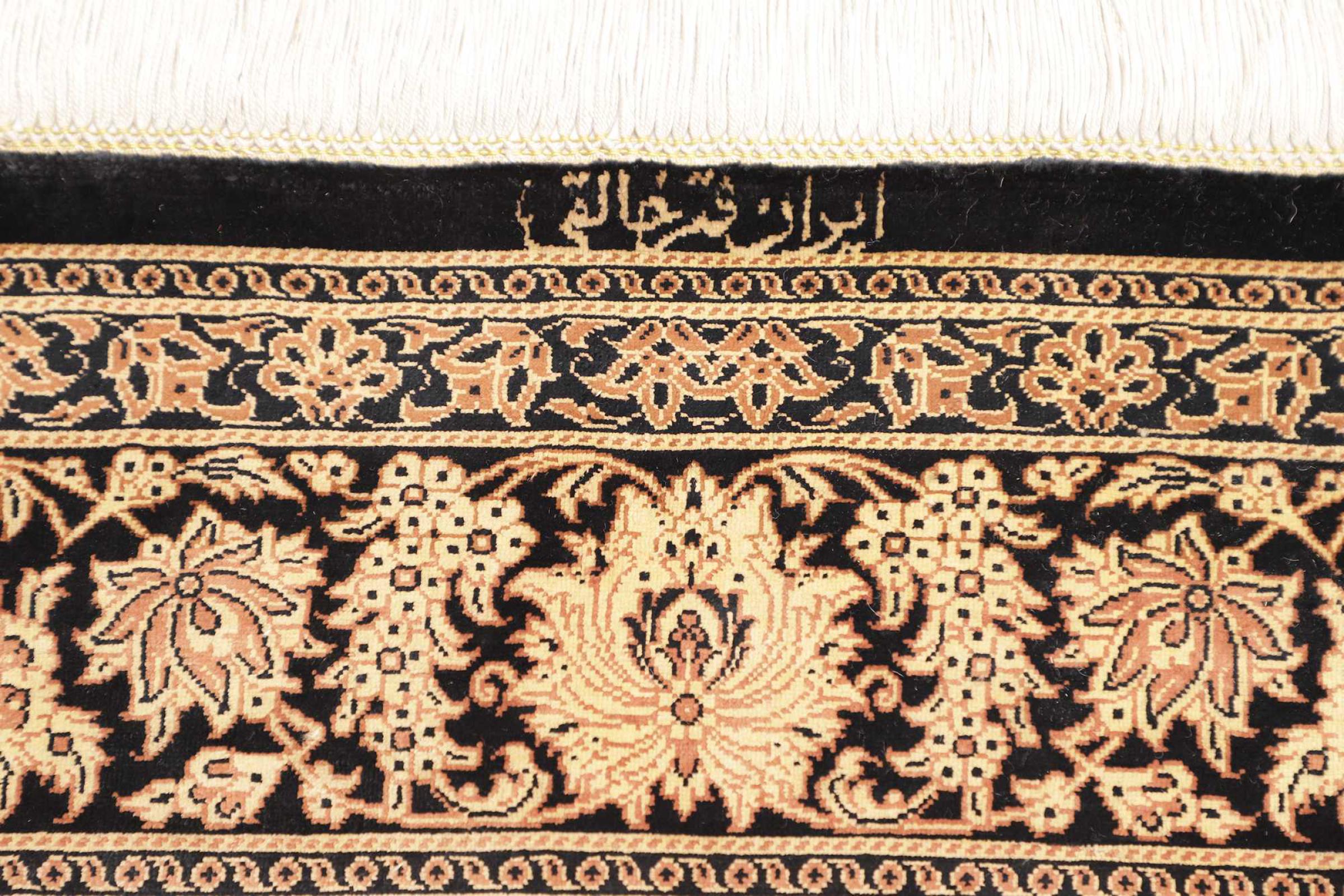 A Persian silk rug stands for pure luxury. This rug in particular, since Qom (also called Qum) silk rugs are known to be the most sophisticated and to count among the finest Persian rugs. Only a skilled master is able to craft such a rug, which easily takes over one year work time. The natural silk from this area is highly popular and said to be the highest-quality silk ever made. It has a most beautiful shine and is even sufficiently robust for frequented rooms.