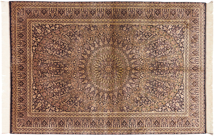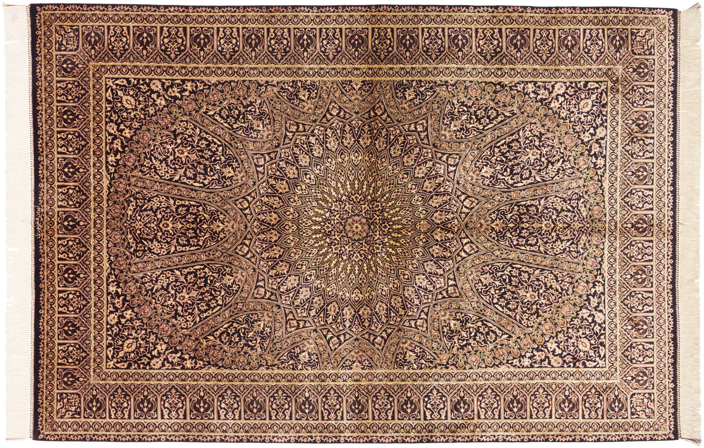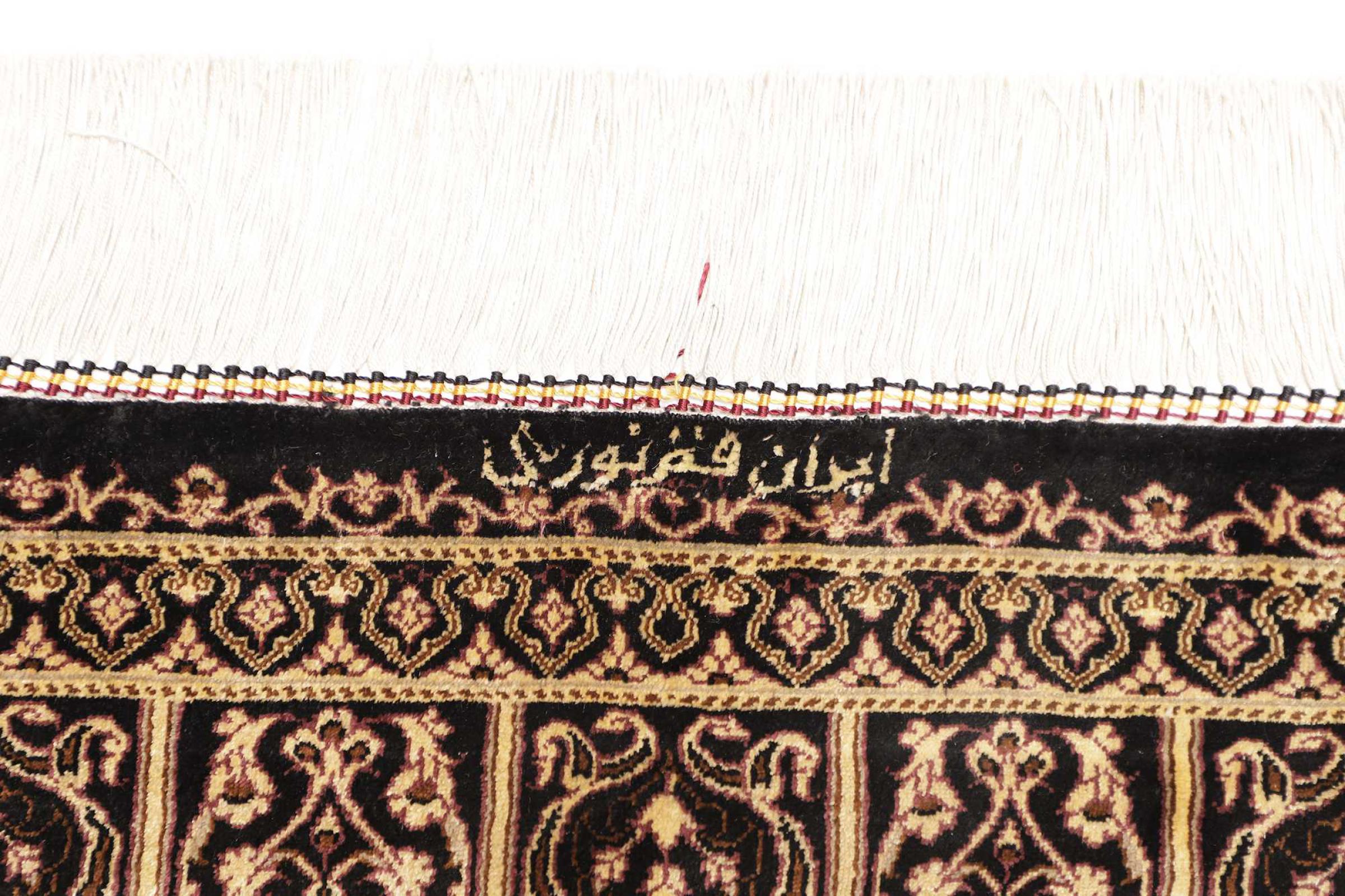 A Persian silk rug stands for pure luxury. This rug in particular, since Qom (also called Qum) silk rugs are known to be the most sophisticated and to count among the finest Persian rugs. Only a skilled master is able to craft such a rug, which easily takes over one year work time. The natural silk from this area is highly popular and said to be the highest-quality silk ever made. It has a most beautiful shine and is even sufficiently robust for frequented rooms.