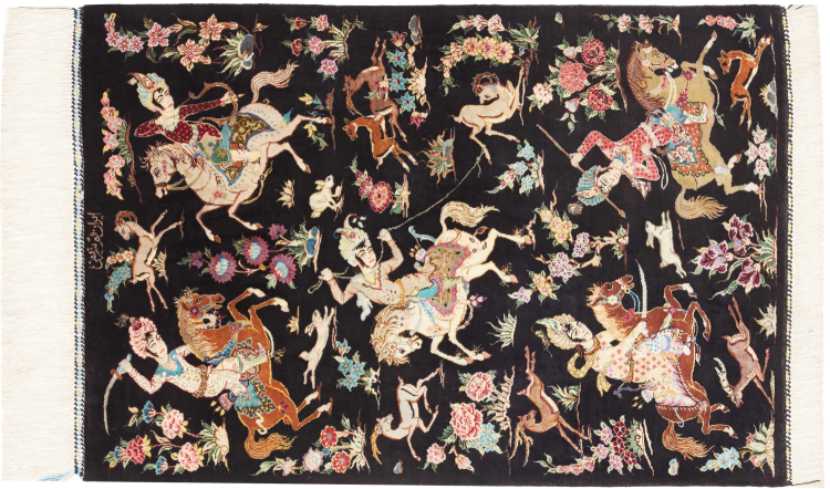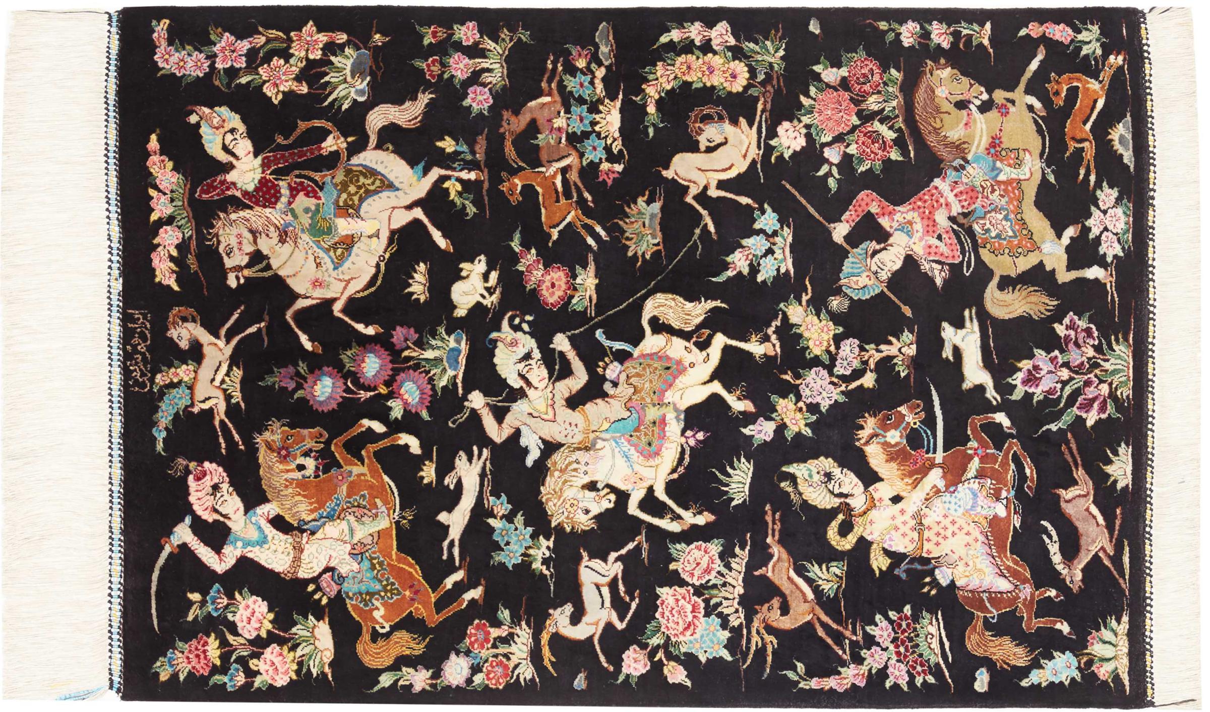 A Persian silk rug stands for pure luxury. This rug in particular, since Qom (also called Qum) silk rugs are known to be the most sophisticated and to count among the finest Persian rugs. Only a skilled master is able to craft such a rug, which easily takes over one year work time. The natural silk from this area is highly popular and said to be the highest-quality silk ever made. It has a most beautiful shine and is even sufficiently robust for frequented rooms.