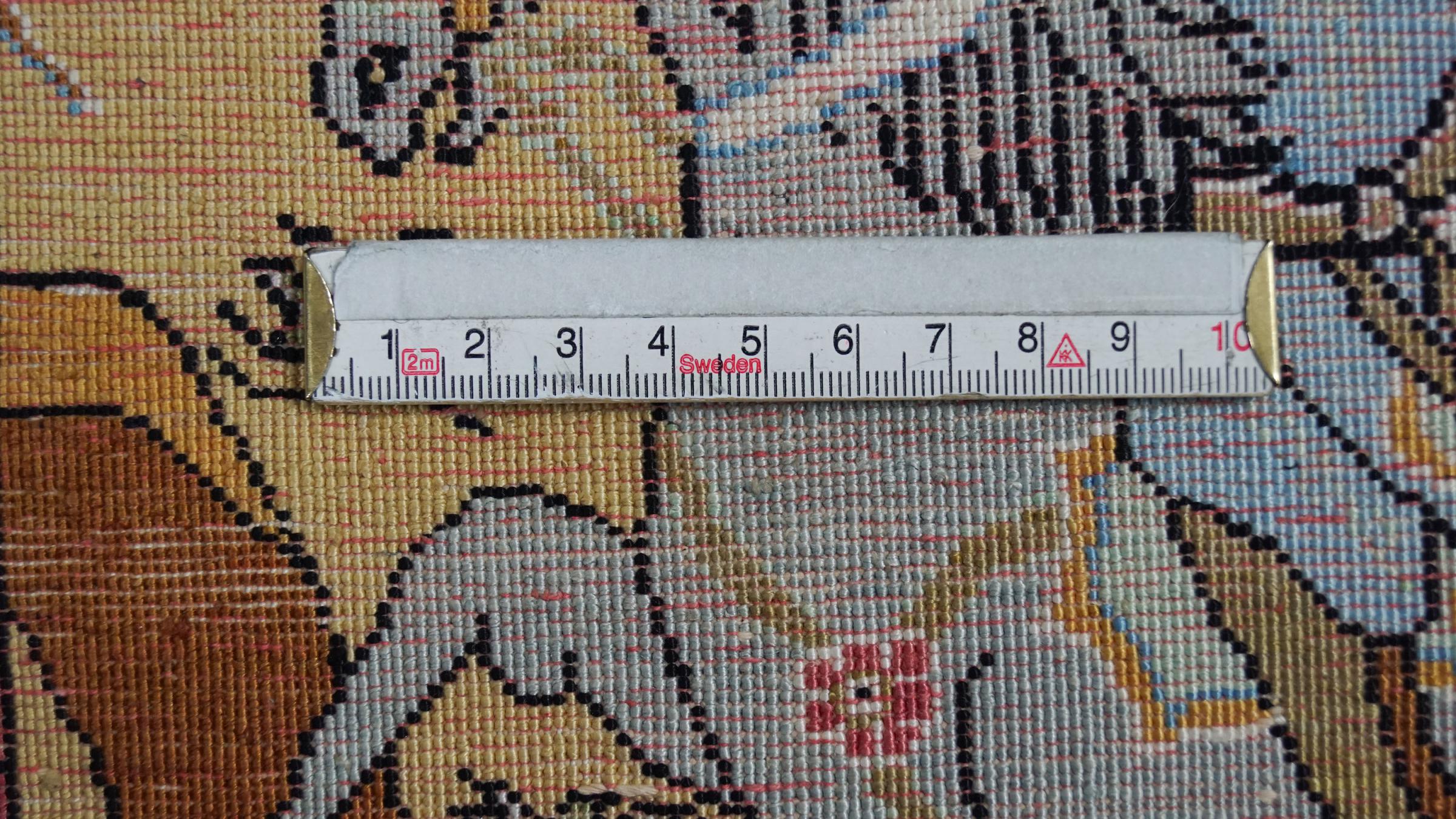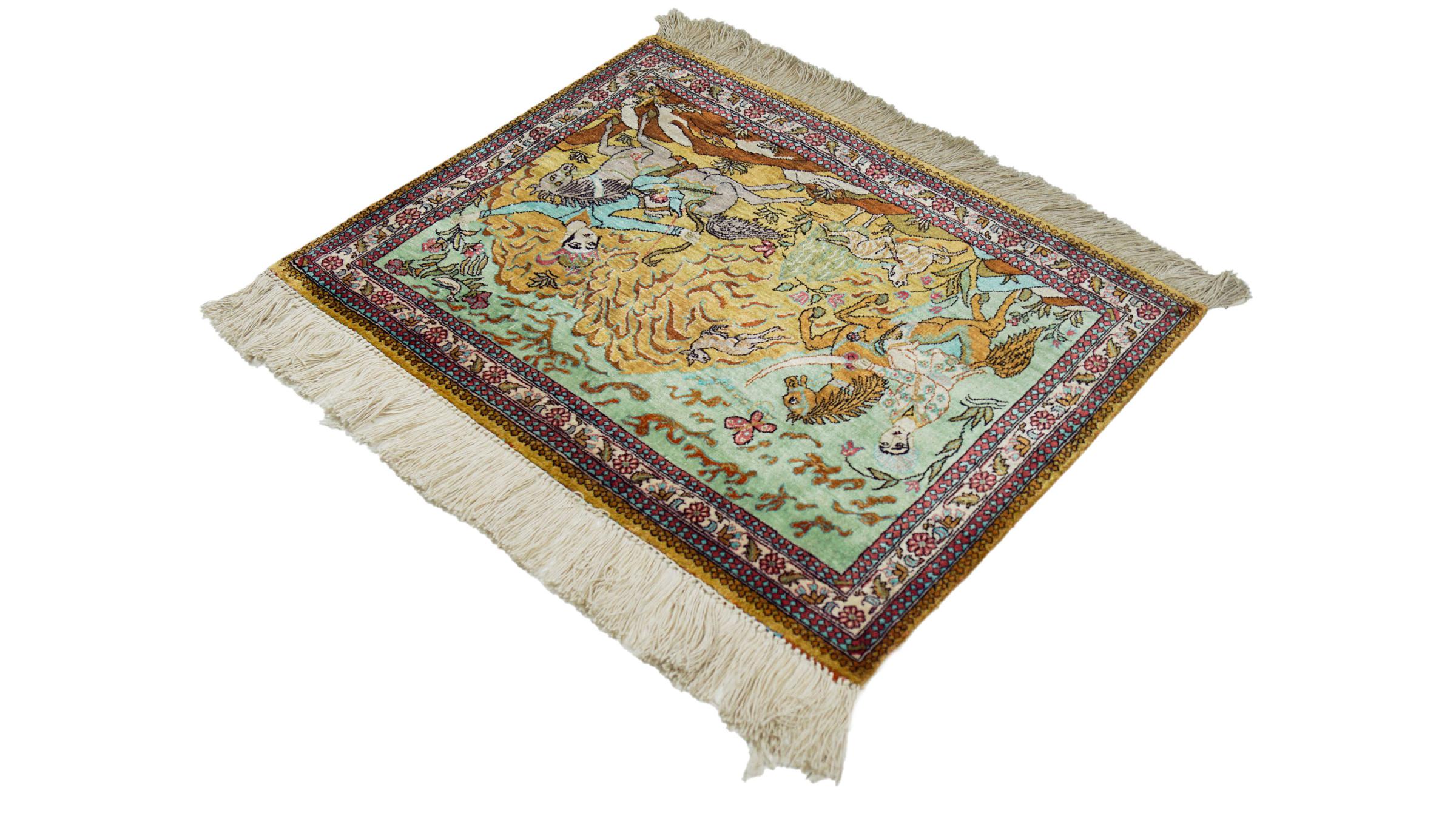 Rug ID: 31609300721482 Size: 2'9"x2'2" ft Thickness: ap. 0.16 in Knot density: 413 / square inch Manufacturing: Knotted by hand Pile: Silk Warp: Silk Origin: Persia / Iran Age: Old, 30-50 years Weight: ap. 2 lb In stock: Unique - Only 1 in stock