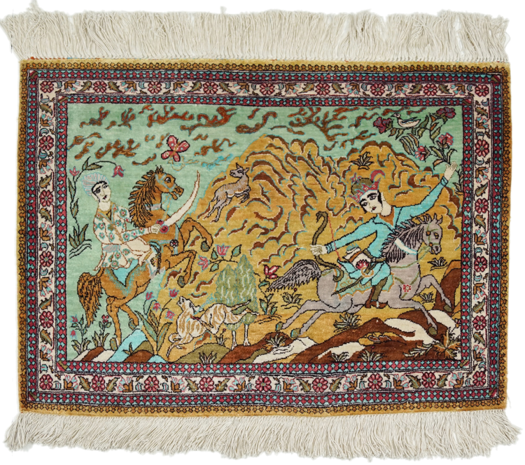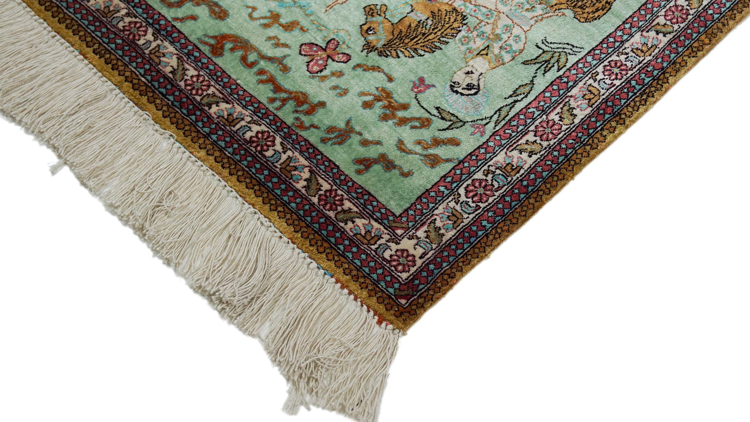 A Persian silk rug stands for pure luxury. This rug in particular, since Qom (also called Qum) silk rugs are known to be the most sophisticated and to count among the finest Persian rugs. Only a skilled master is able to craft such a rug, which easily takes over one year work time. The natural silk from this area is highly popular and said to be the highest-quality silk ever made. It has a most beautiful shine and is even sufficiently robust for frequented rooms.