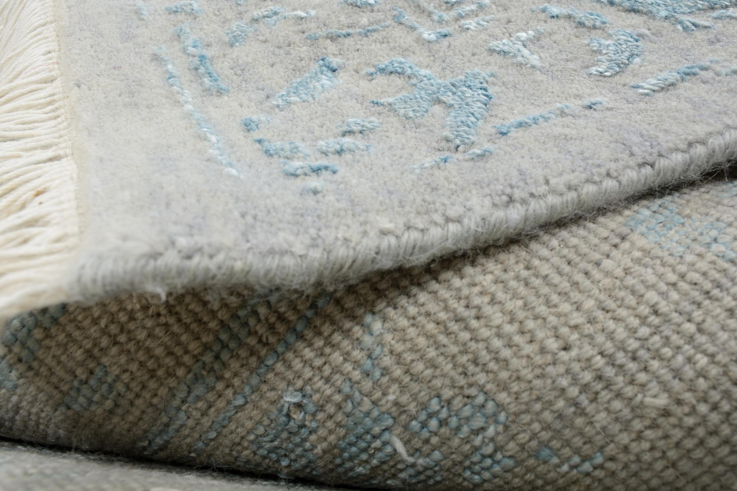 Rug ID: 66861006019917 Size: 9'10"x8'1" ft Thickness: ap. 0.47 in Knot density: 129 - 161 / square inch Manufacturing: Knotted by hand Pile: Wool with bamboo-silk Warp: Cotton Origin: India Age: New Weight: ap. 64 lb In stock: Unique - Only 1 in stock