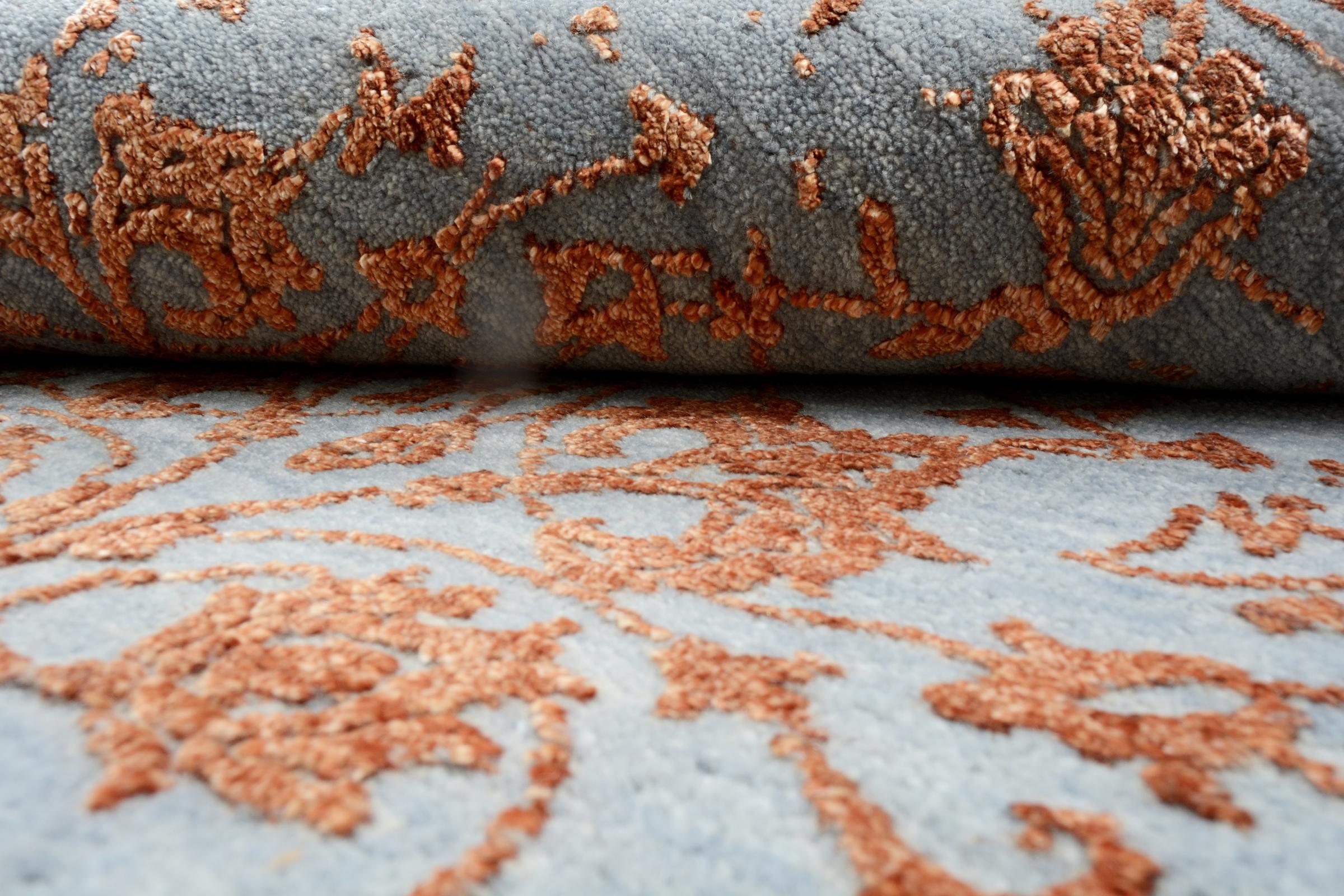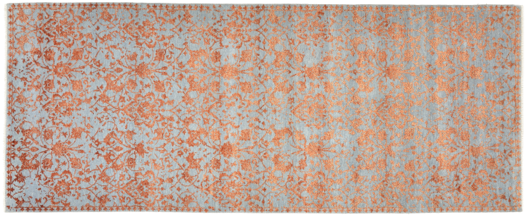 Rug ID: 127062005879209 Size: 10'2"x4'0" ft Thickness: ap. 0.47 in Knot density: 129 - 161 / square inch Manufacturing: Knotted by hand Pile: Wool with bamboo-silk Warp: Cotton Origin: India Age: New Weight: ap. 33 lb In stock: Unique - Only 1 in stock