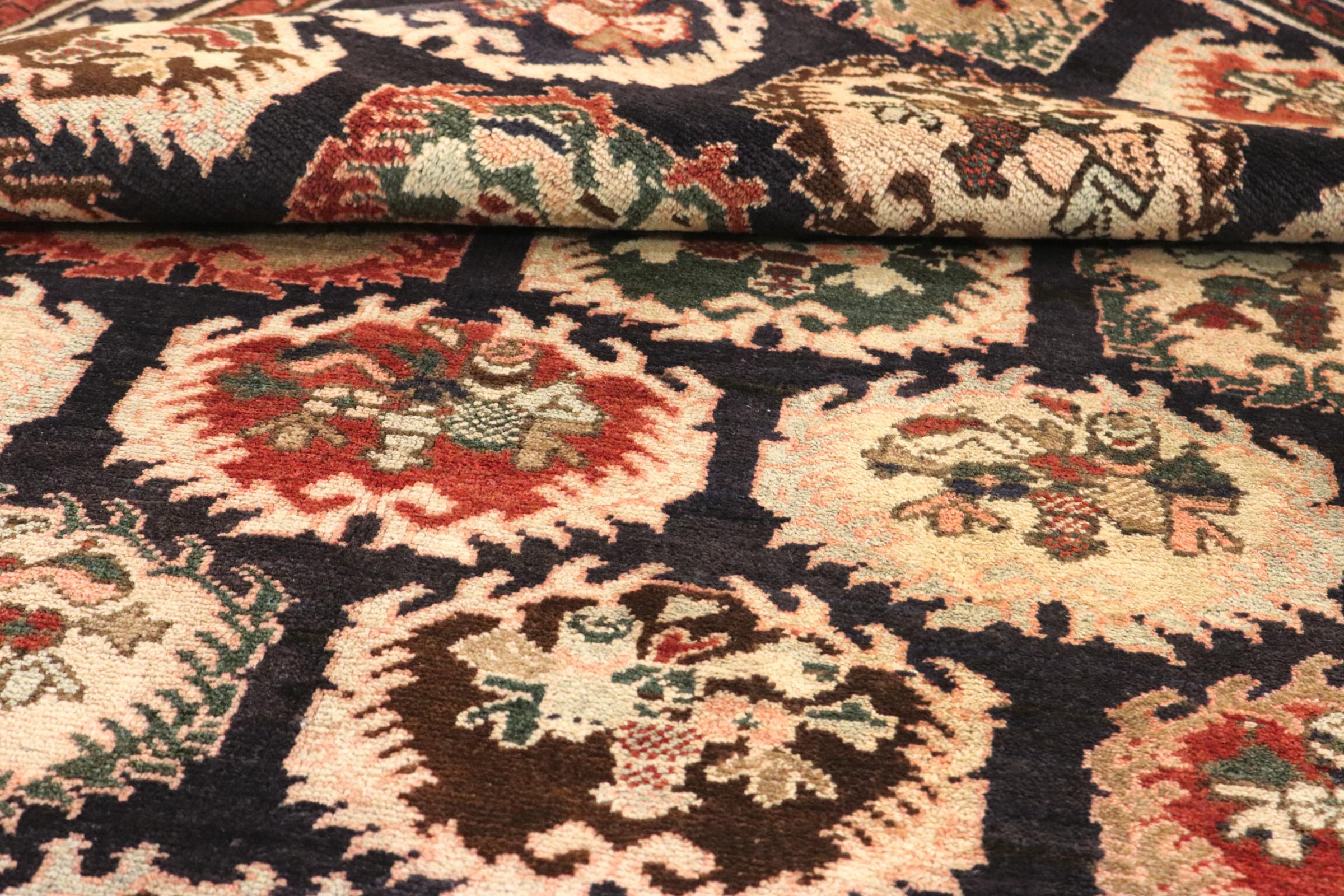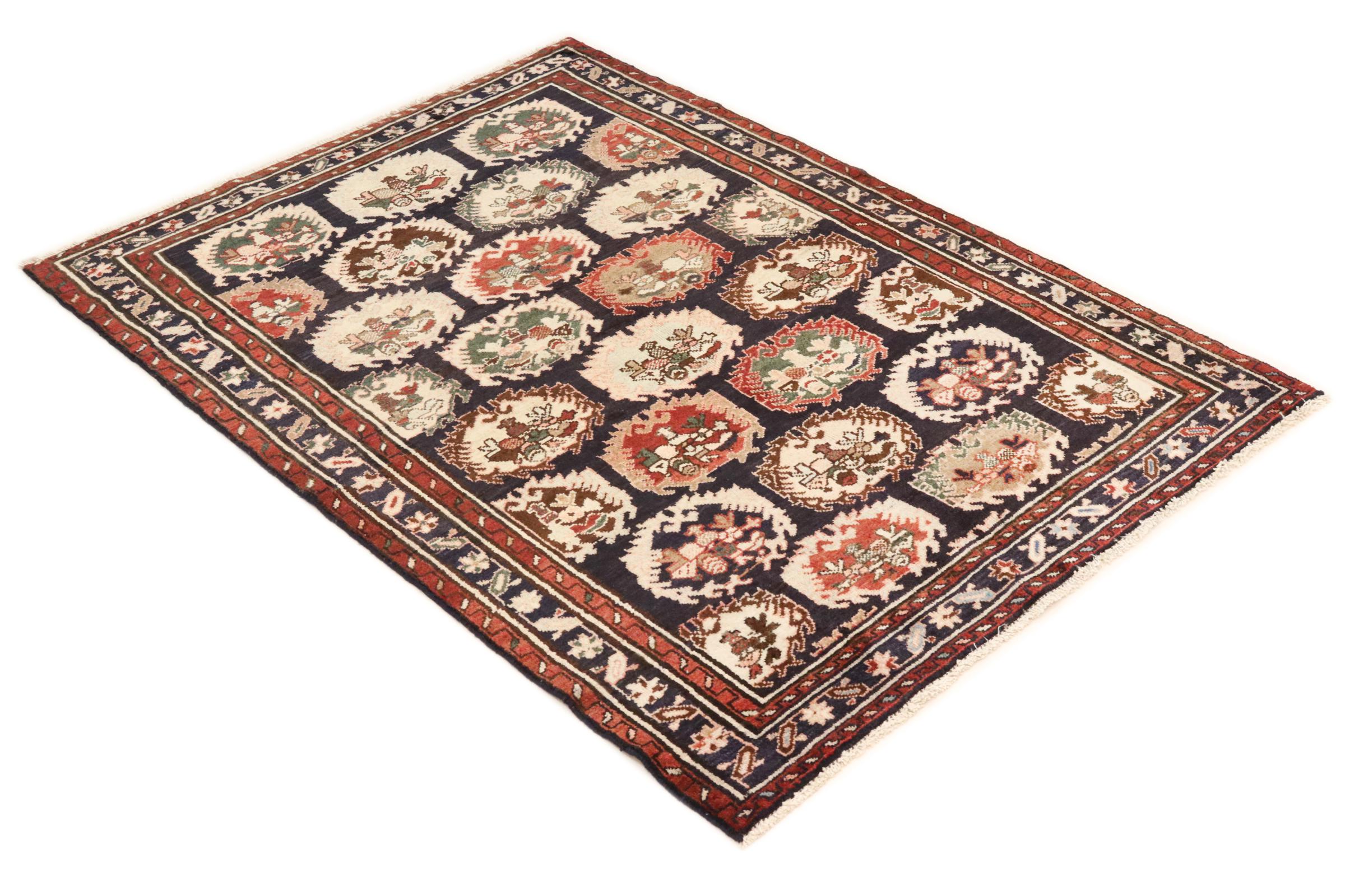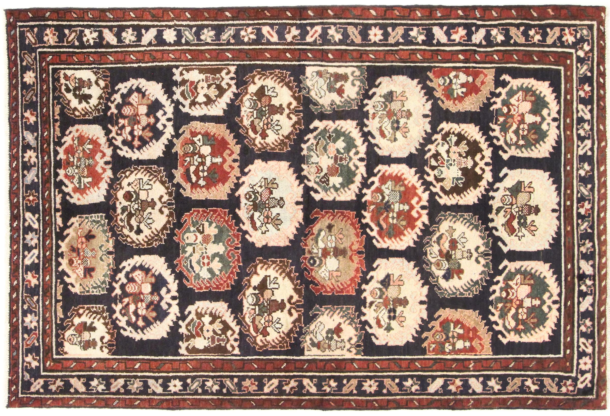 This carpet belongs to the village and nomadic carpets from Iran, the former Persia. This kind of carpets is hand knotted in smaller towns and villages in ancient tradition. Even nomads still knot Persian carpets in the open air. The carpets are knotted without a draft and entirely from memory. They are characterized by classical ornaments arranged in linear and geometric patterns. Thanks to their cultural and traditional origins, these rugs possess a unique character that embodies ancient Persia.