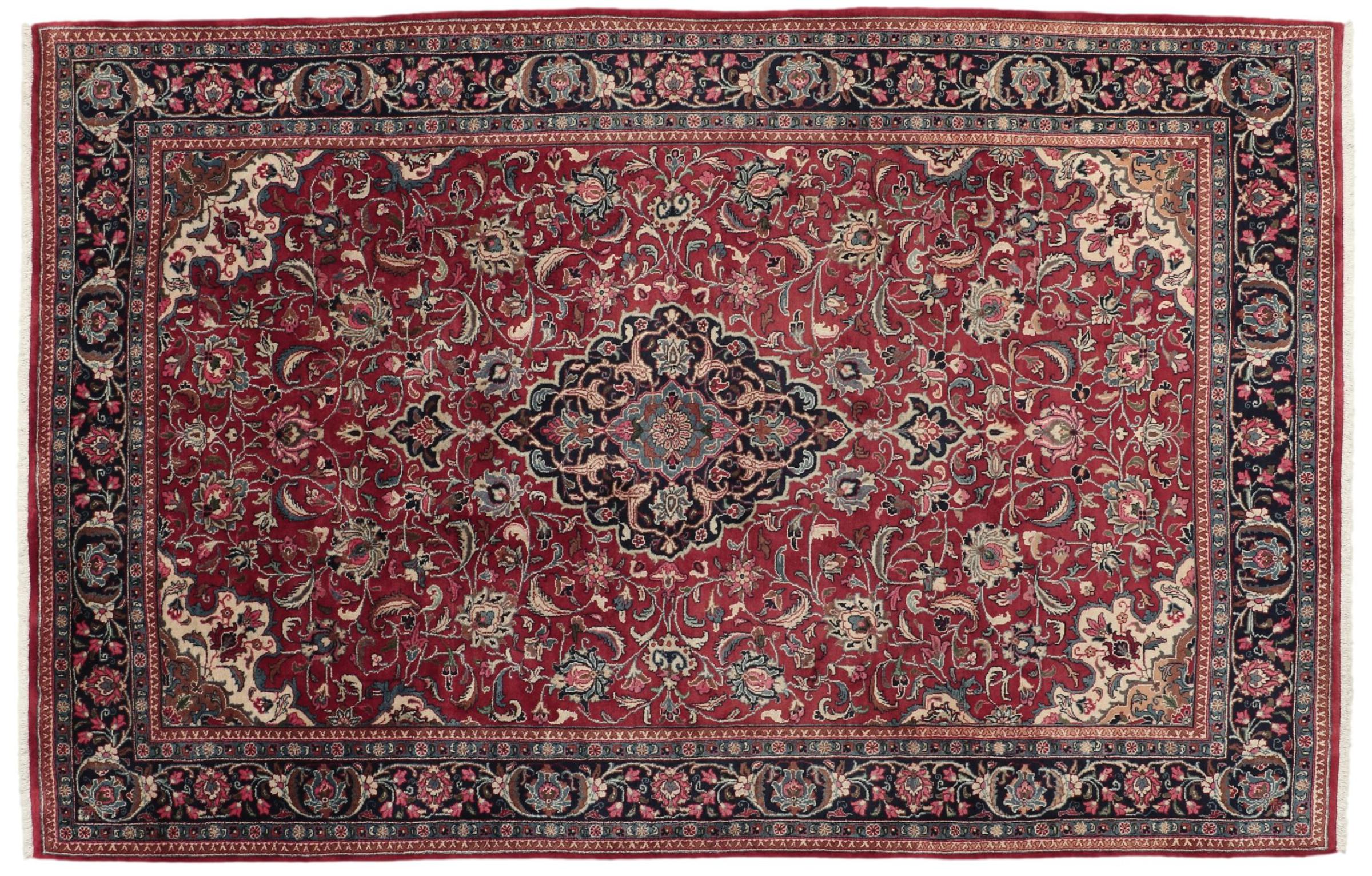 Many Persian Sarouk or Sarough rugs are extremely popular due to their faded red color tones. This Sarouk has been knotted by hand from fine sheep wool. Only natural dyes are used to color this rug. Especially American Sarouk rugs are demanded globally for their beautiful design combined to sophisticated Persian quality.