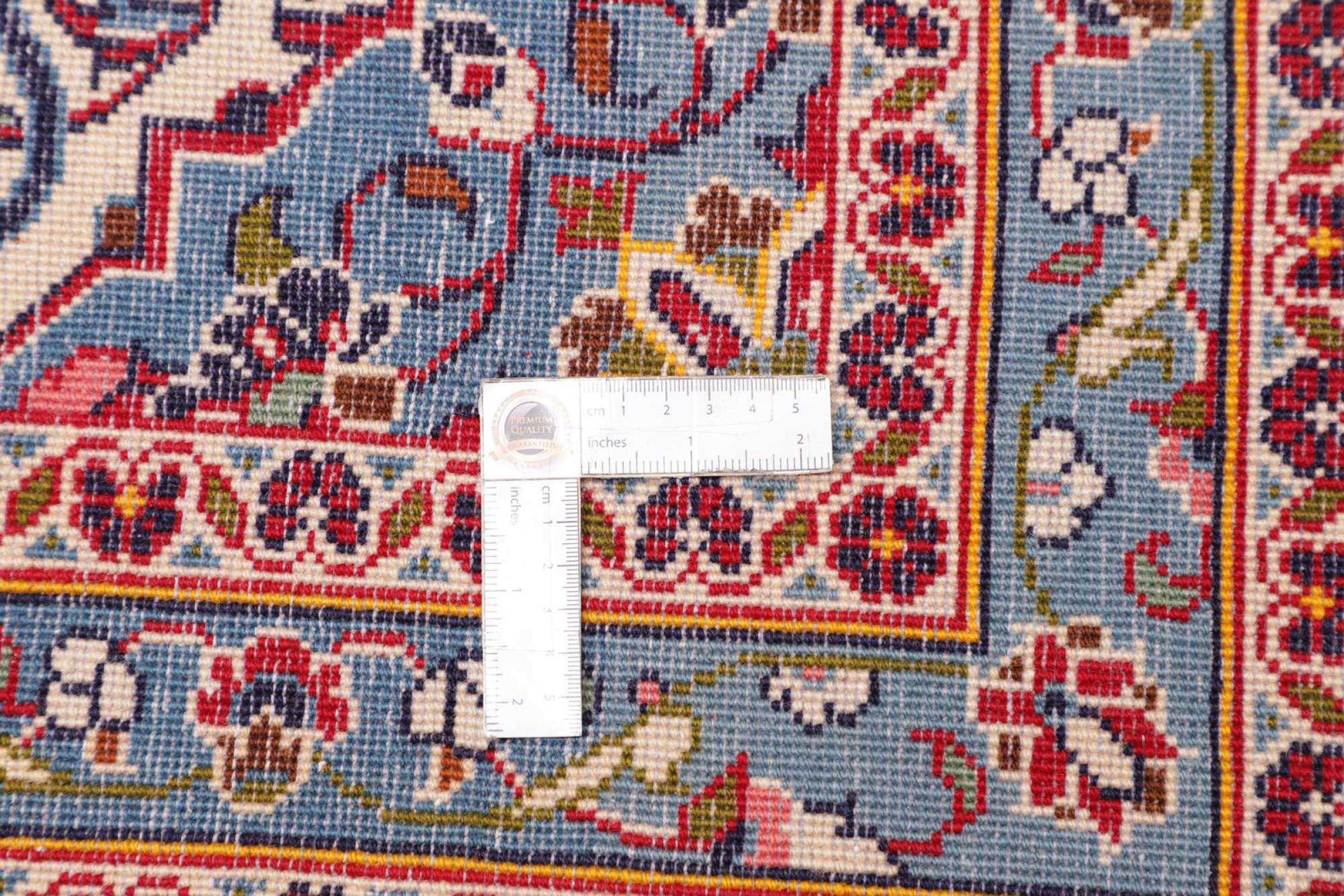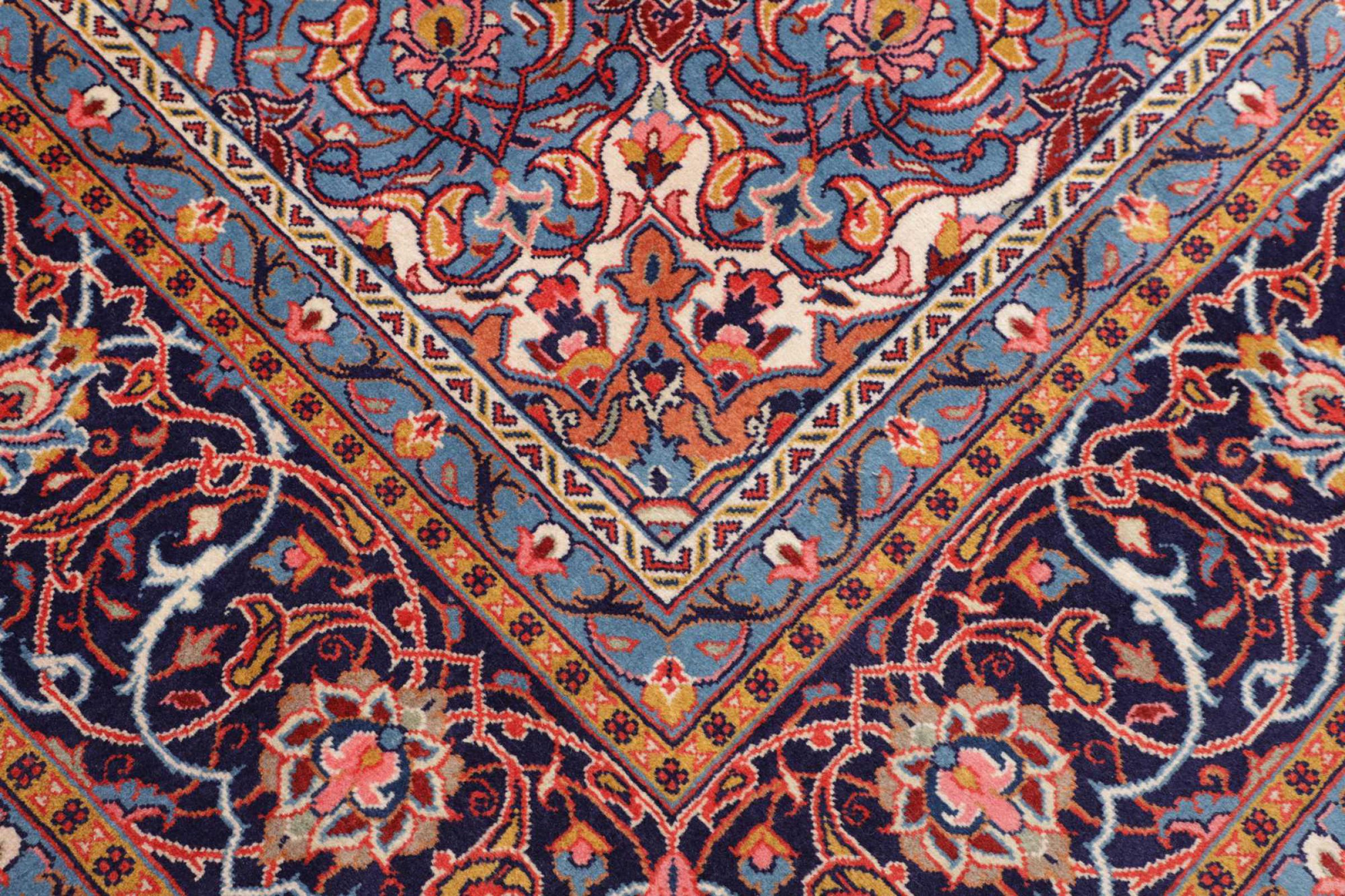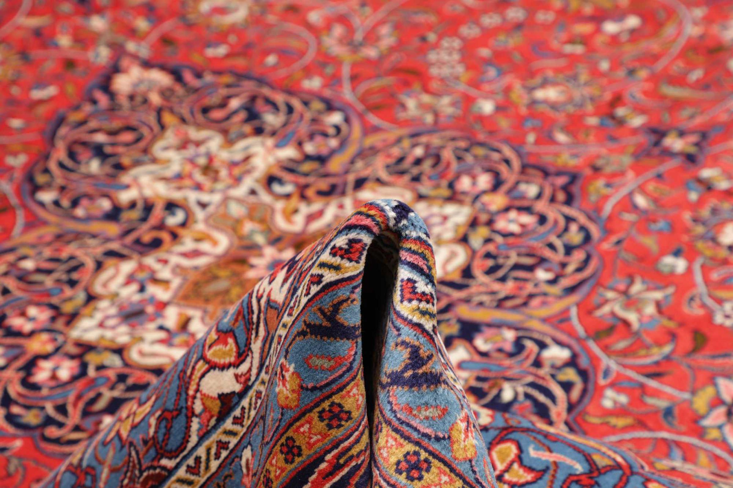 This rug is made of hand spun sheep wool of the highest quality. Especially in Iran (former Persia), Afghanistan and Pakistan wool is still spun by hand before the actual knotting of the rug begins. Wool has proven itself as a natural and extremely hard-wearing material over centuries. Among other things, it has dirt-repellent and heat-insulating properties. At the same time, wool is incomparably soft and has a natural shine.