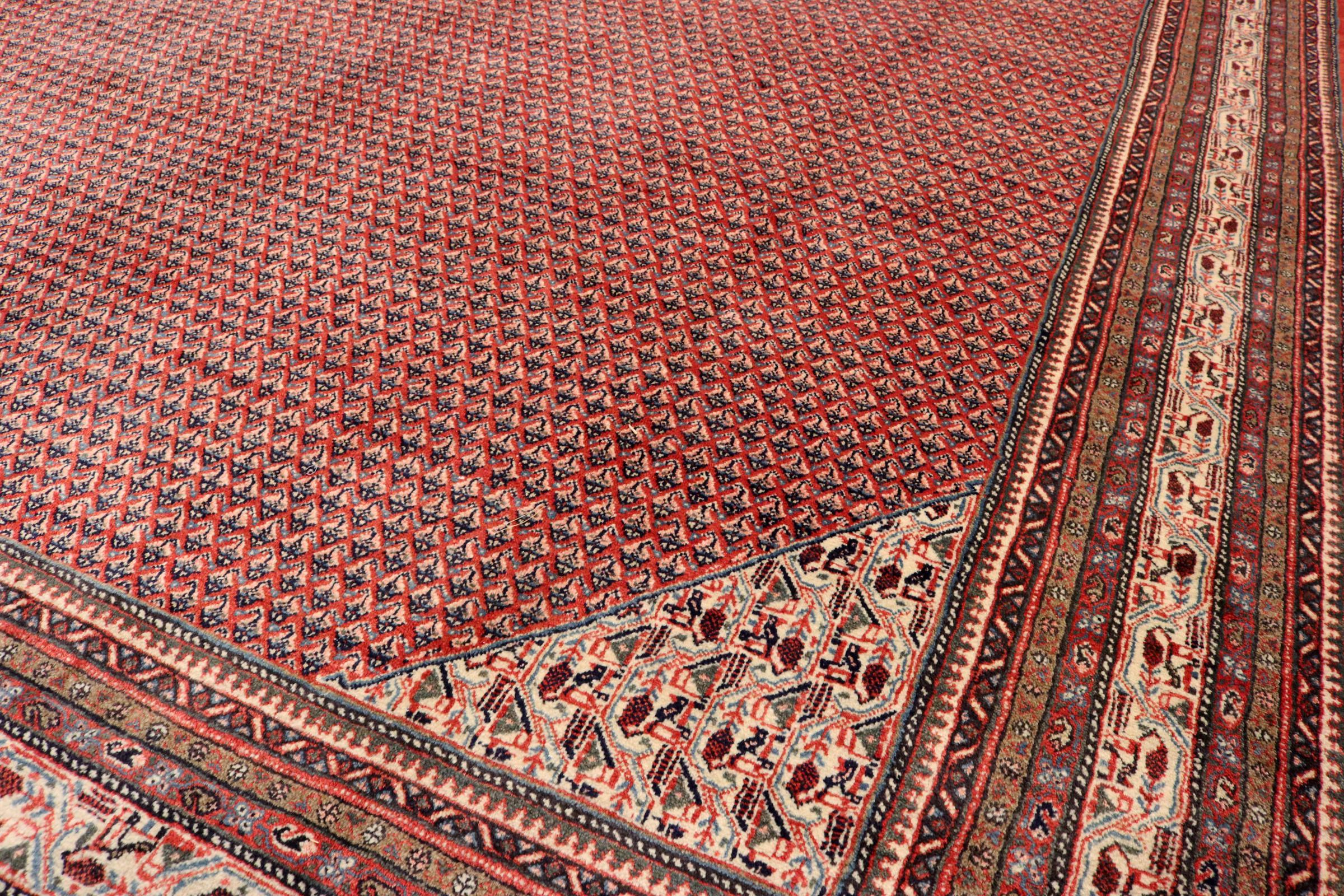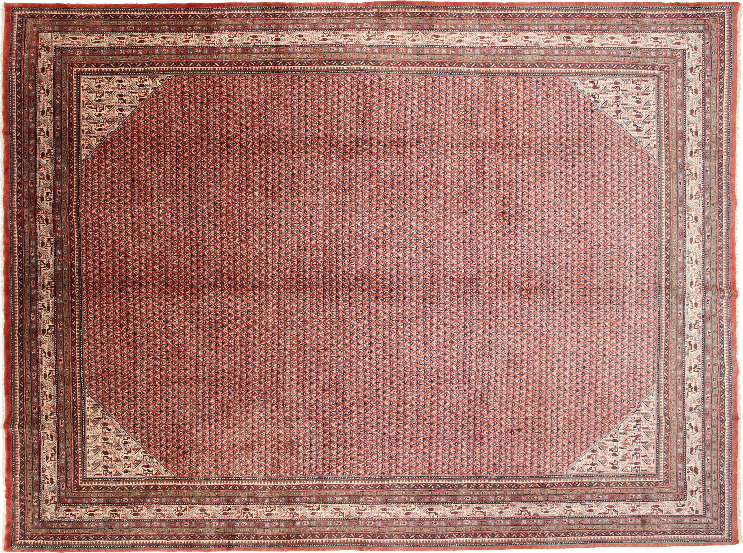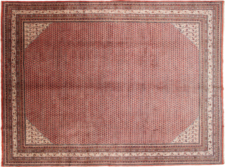 Rug ID: 128295008399787 Size: 14'3"x10'4" ft Thickness: ap. 0.47 in Knot density: 129 - 161 / square inch Manufacturing: Knotted by hand Pile: Handspun wool Warp: Sheep wool Origin: Persia / Iran Age: New Weight: ap. 121 lb Also know as Sarough Mir In stock: Unique - Only 1 in stock