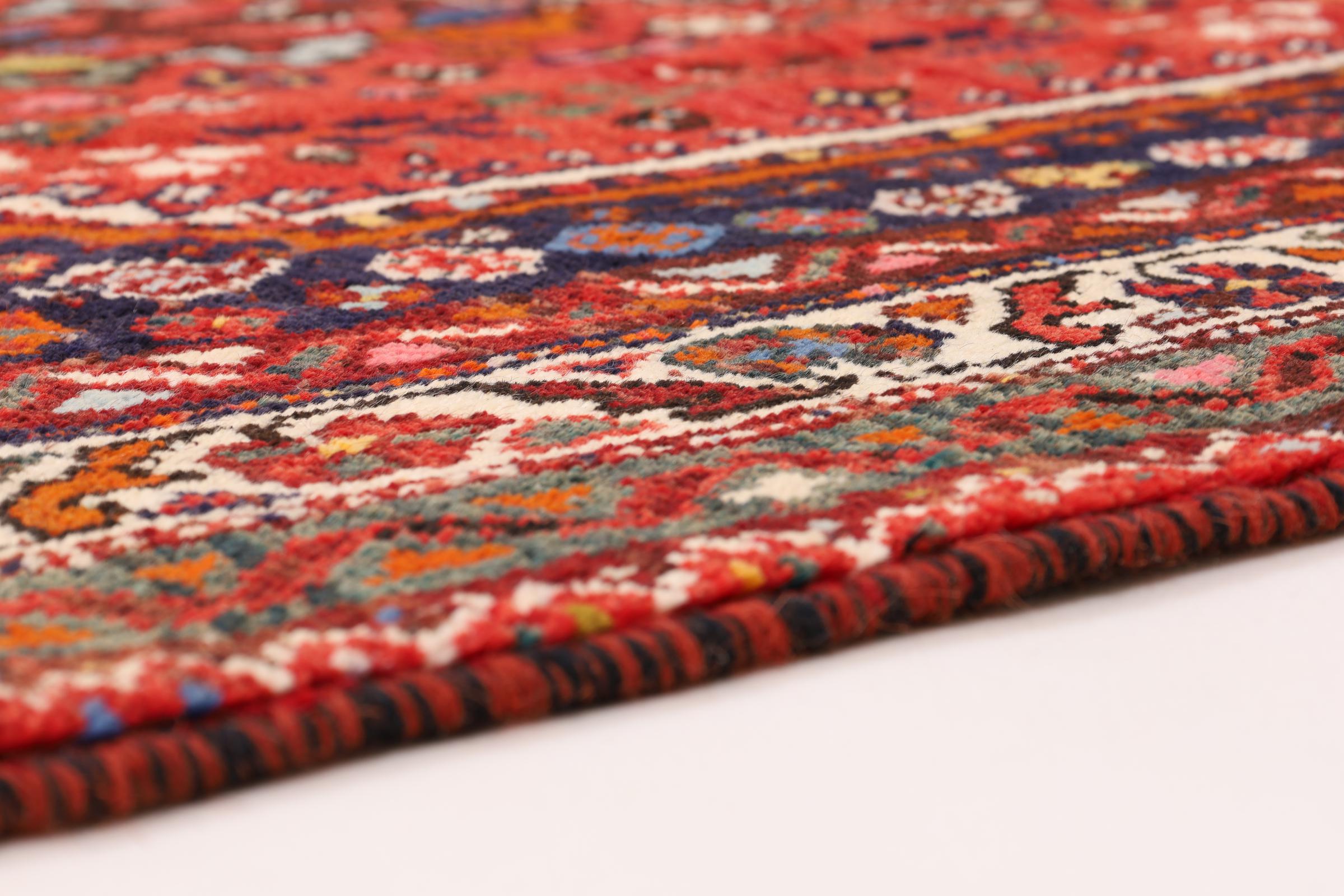This carpet belongs to the village and nomadic carpets from Iran, the former Persia. This kind of carpets is hand knotted in smaller towns and villages in ancient tradition. Even nomads still knot Persian carpets in the open air. The carpets are knotted without a draft and entirely from memory. They are characterized by classical ornaments arranged in linear and geometric patterns. Thanks to their cultural and traditional origins, these rugs possess a unique character that embodies ancient Persia.