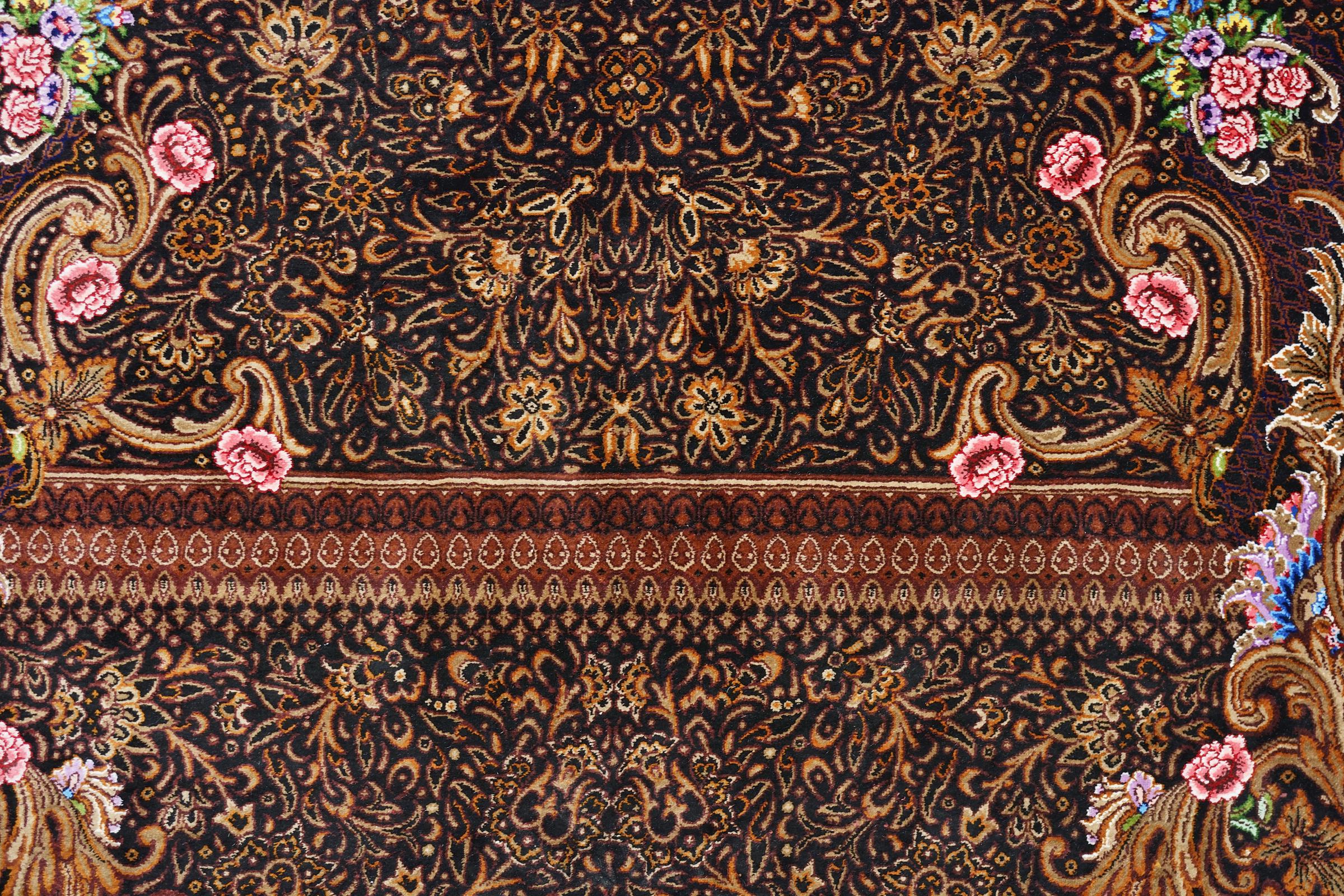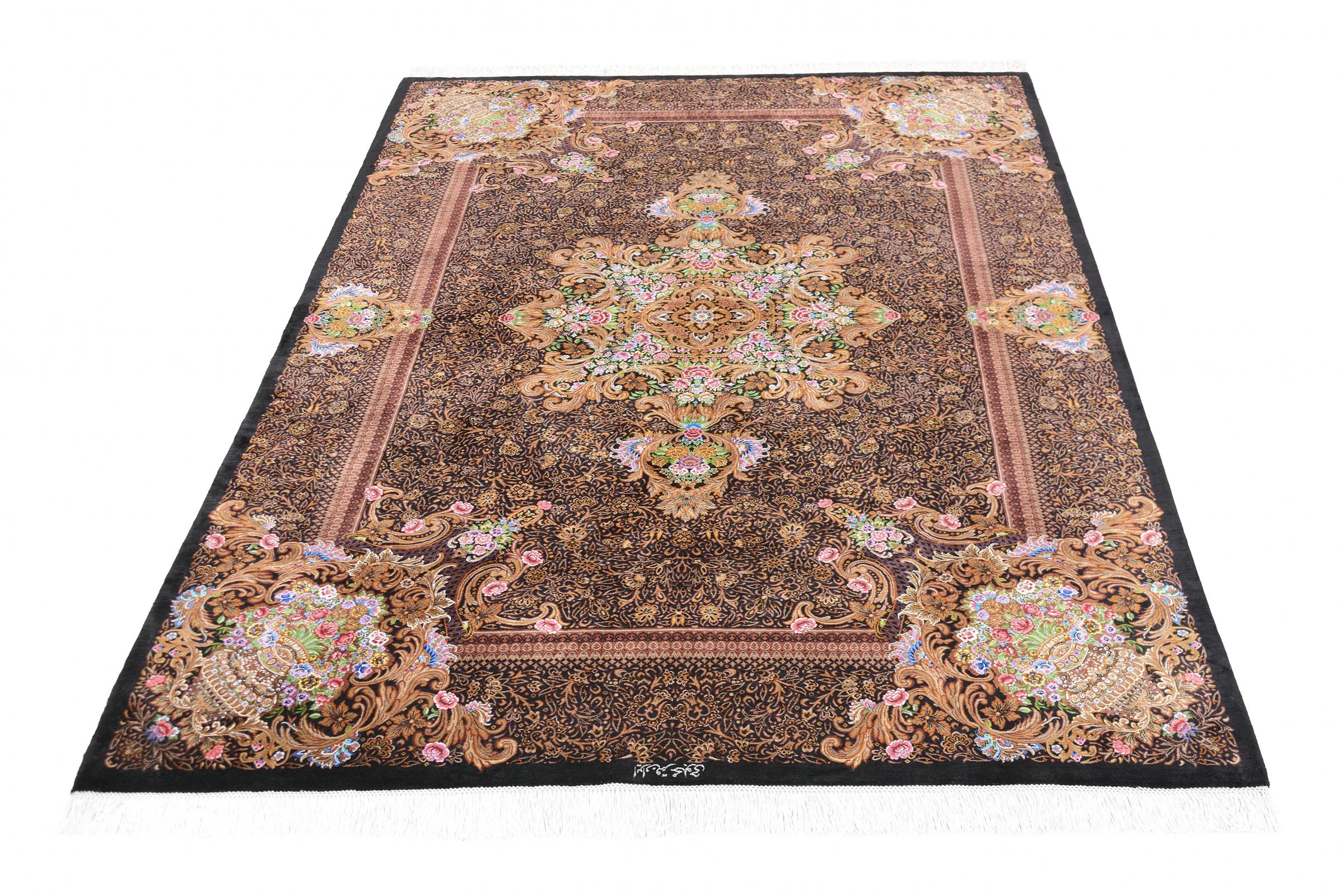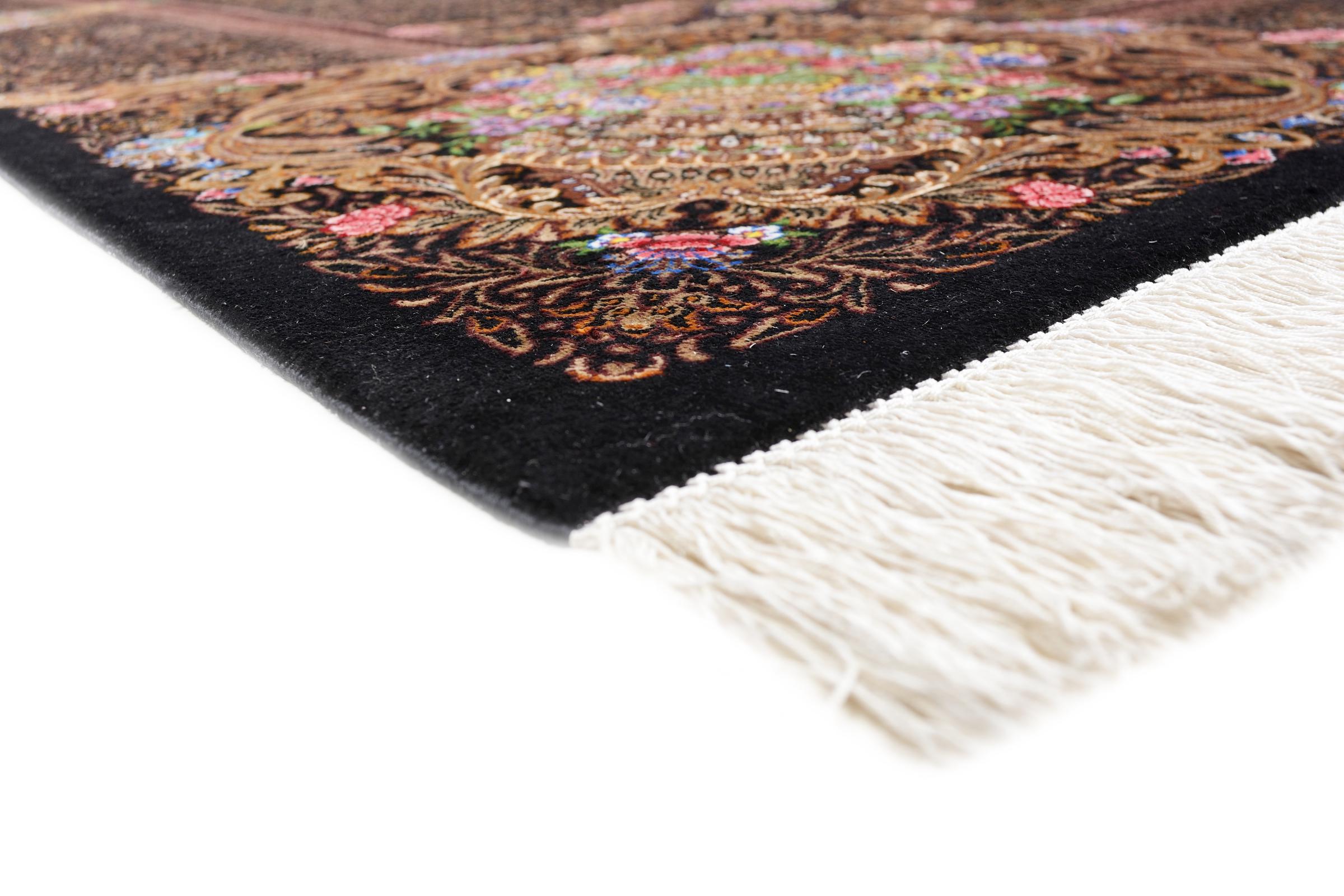A Persian silk rug stands for pure luxury. This rug in particular, since Qom (also called Qum) silk rugs are known to be the most sophisticated and to count among the finest Persian rugs. Only a skilled master is able to craft such a rug, which easily takes over one year work time. The natural silk from this area is highly popular and said to be the highest-quality silk ever made. It has a most beautiful shine and is even sufficiently robust for frequented rooms.
