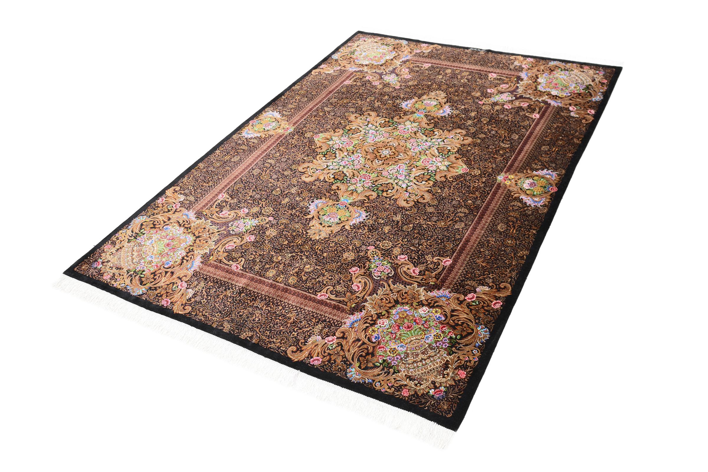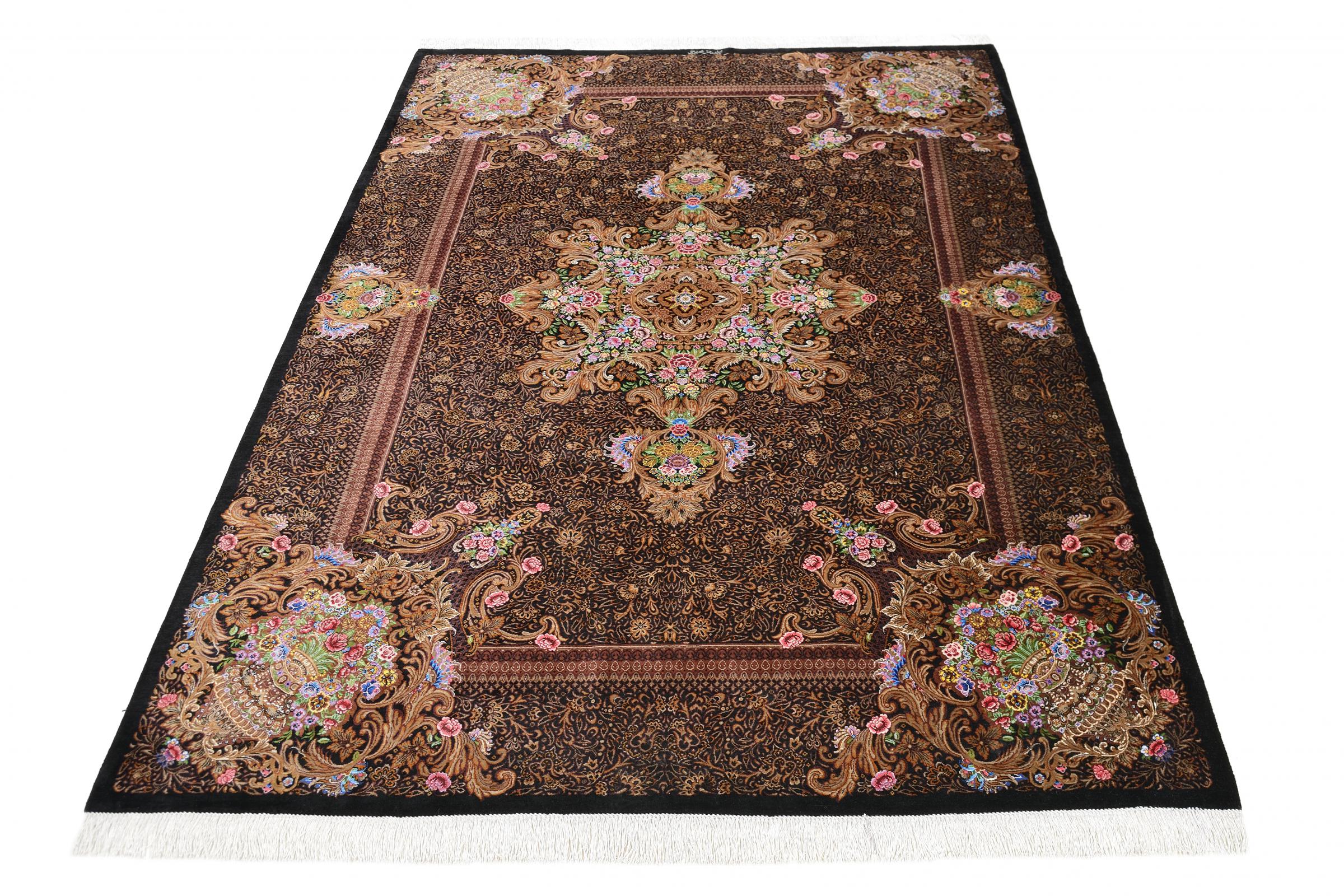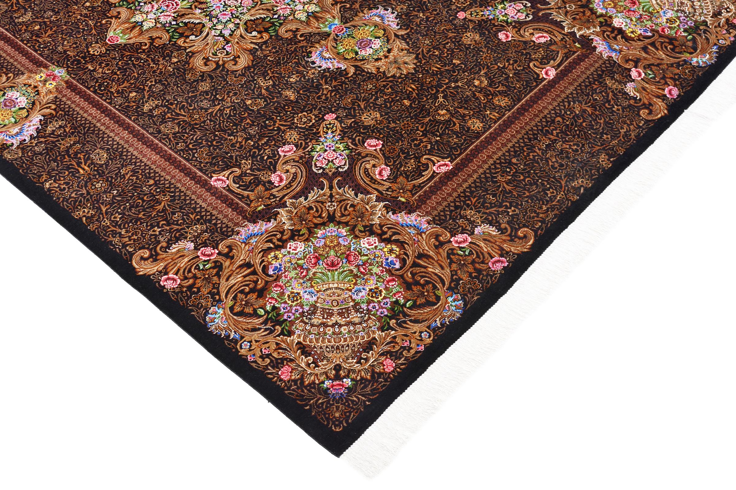 A Persian silk rug stands for pure luxury. This rug in particular, since Qom (also called Qum) silk rugs are known to be the most sophisticated and to count among the finest Persian rugs. Only a skilled master is able to craft such a rug, which easily takes over one year work time. The natural silk from this area is highly popular and said to be the highest-quality silk ever made. It has a most beautiful shine and is even sufficiently robust for frequented rooms.