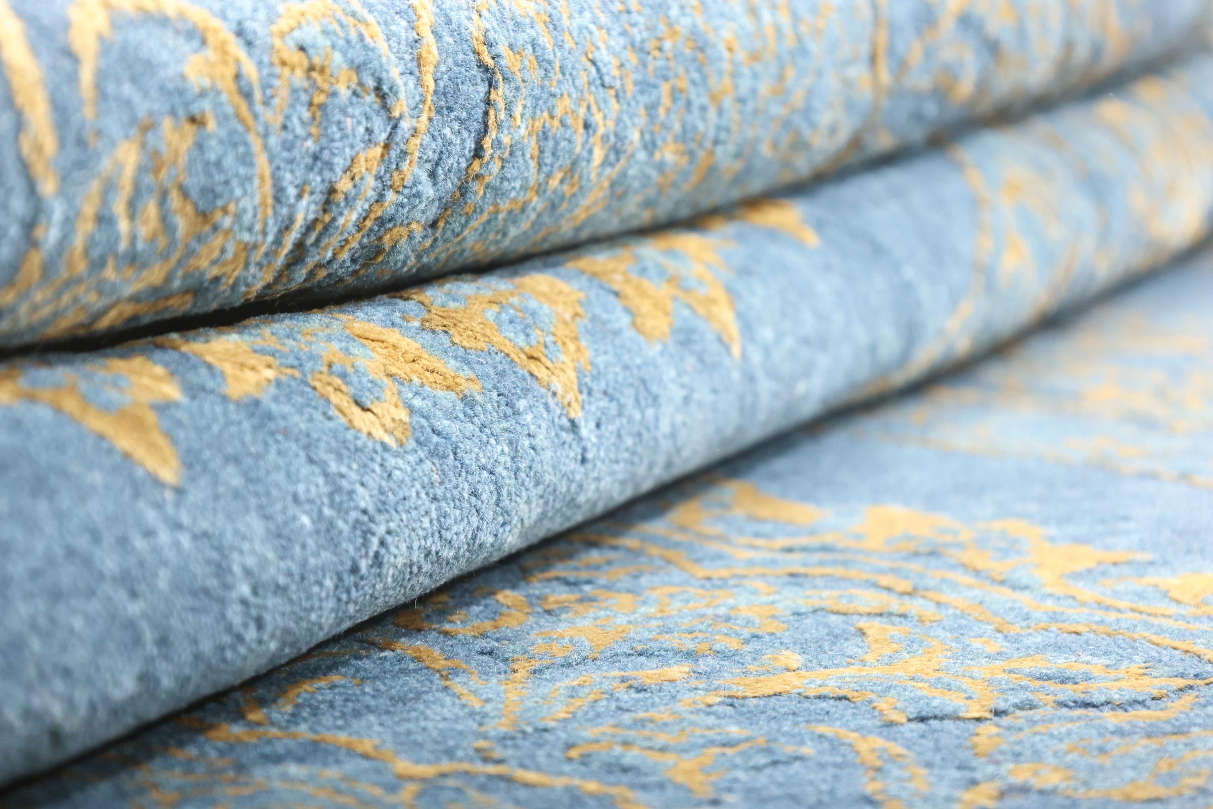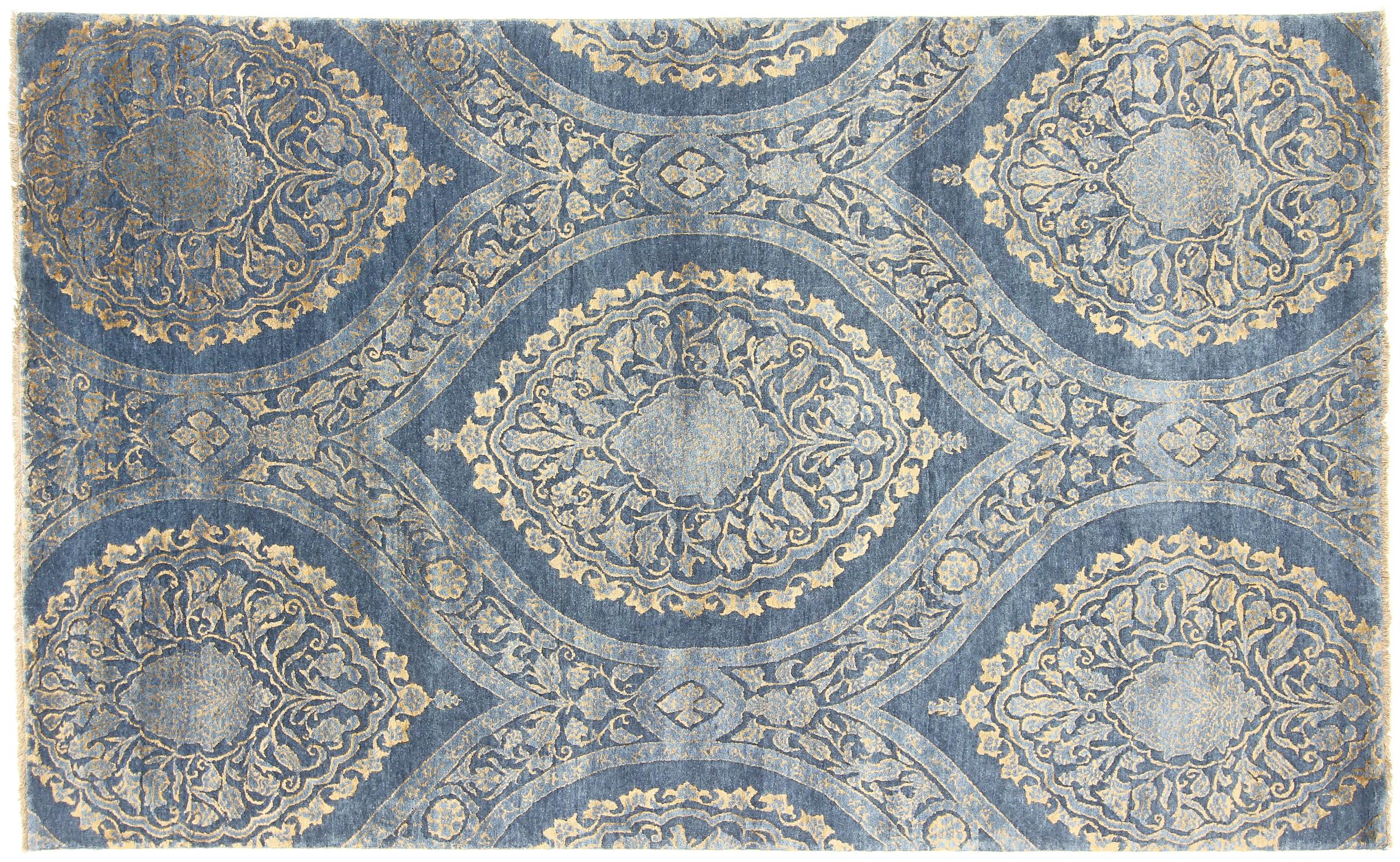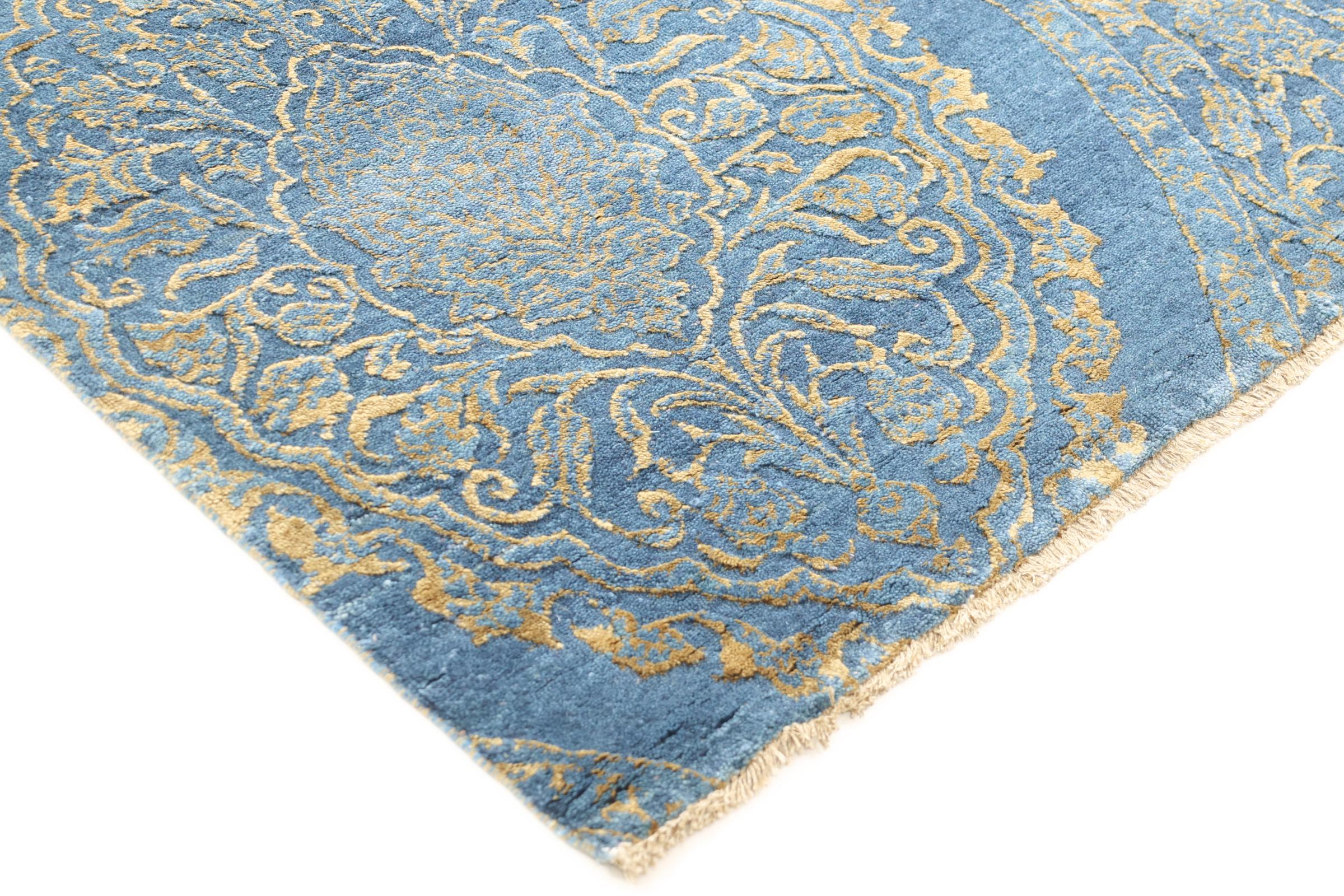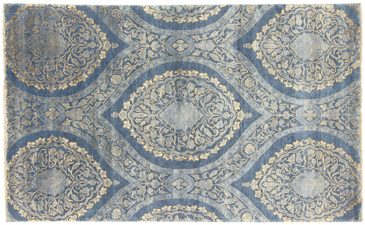 Rug ID: 1682250030123 Size: 8'8"x5'4" ft Thickness: ap. 0.47 in Knot density: 82 - 103 / square inch Manufacturing: Knotted by hand Pile: Wool with bamboo-silk Warp: Cotton Origin: India Age: New Weight: ap. 33 lb In stock: Unique - Only 1 in stock