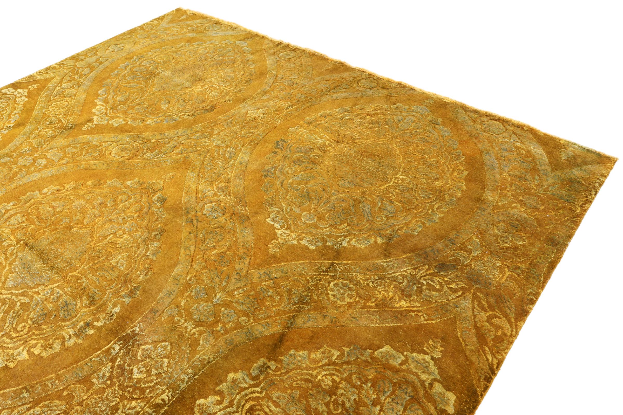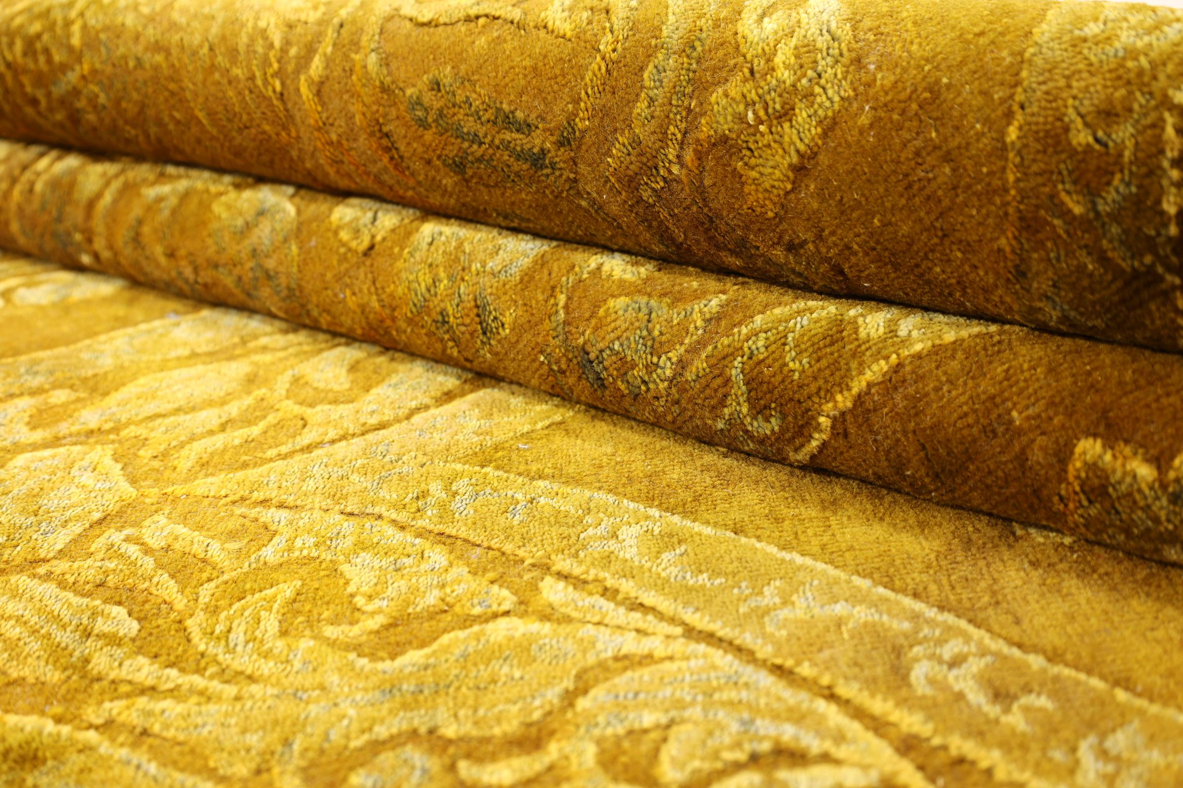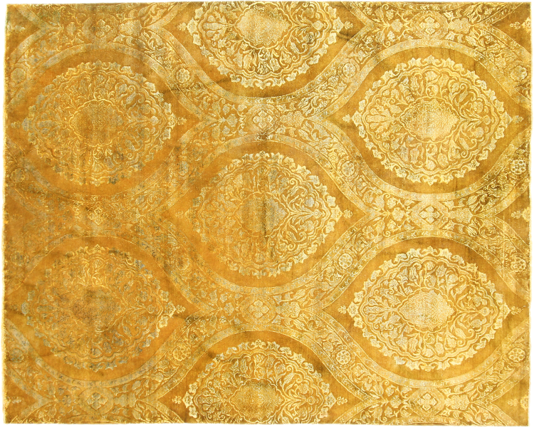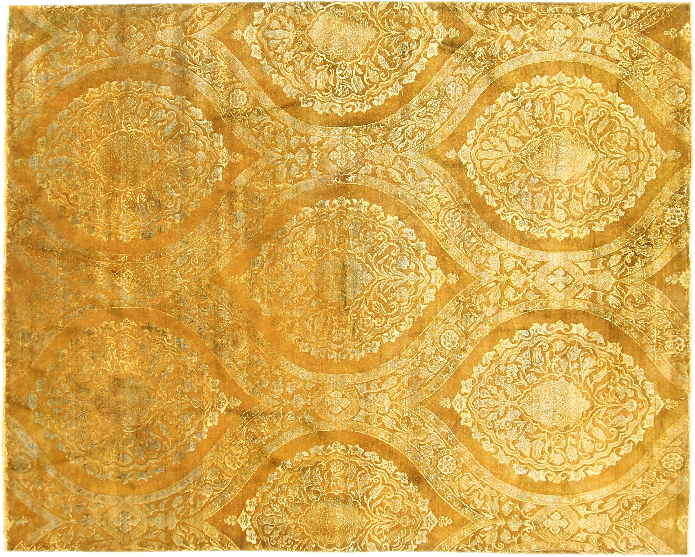 Rug ID: 1684920030368 Size: 9'7"x7'9" ft Thickness: ap. 0.47 in Knot density: 82 - 103 / square inch Manufacturing: Knotted by hand Pile: Wool with bamboo-silk Warp: Cotton Origin: India Age: New Weight: ap. 53 lb In stock: Unique - Only 1 in stock