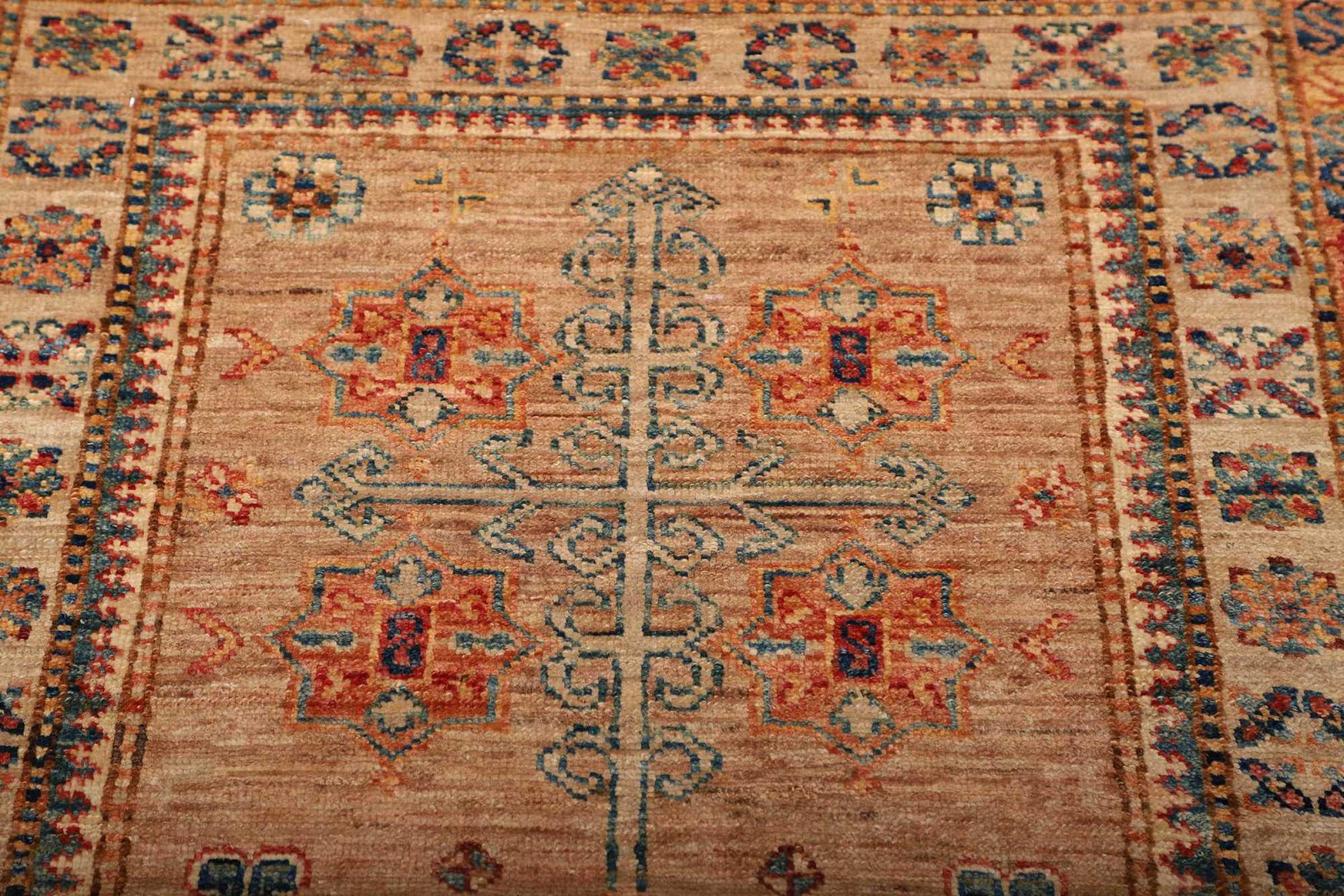 A large part of Pakistani rug production takes place in and around the cities of Lahore and Karachi. Many of the rug knotters of that time fled to Pakistan during the war with India and settled there. Today, especially hand-knotted Pakistan Bukhara rugs are well-known. Similar to the Afghan oriental rugs, Pakistani rugs are also made in dark colours and mostly have shades of red. Even the well-known elephant foot pattern (repeating octagonal pattern) can be found on a Pakistani.