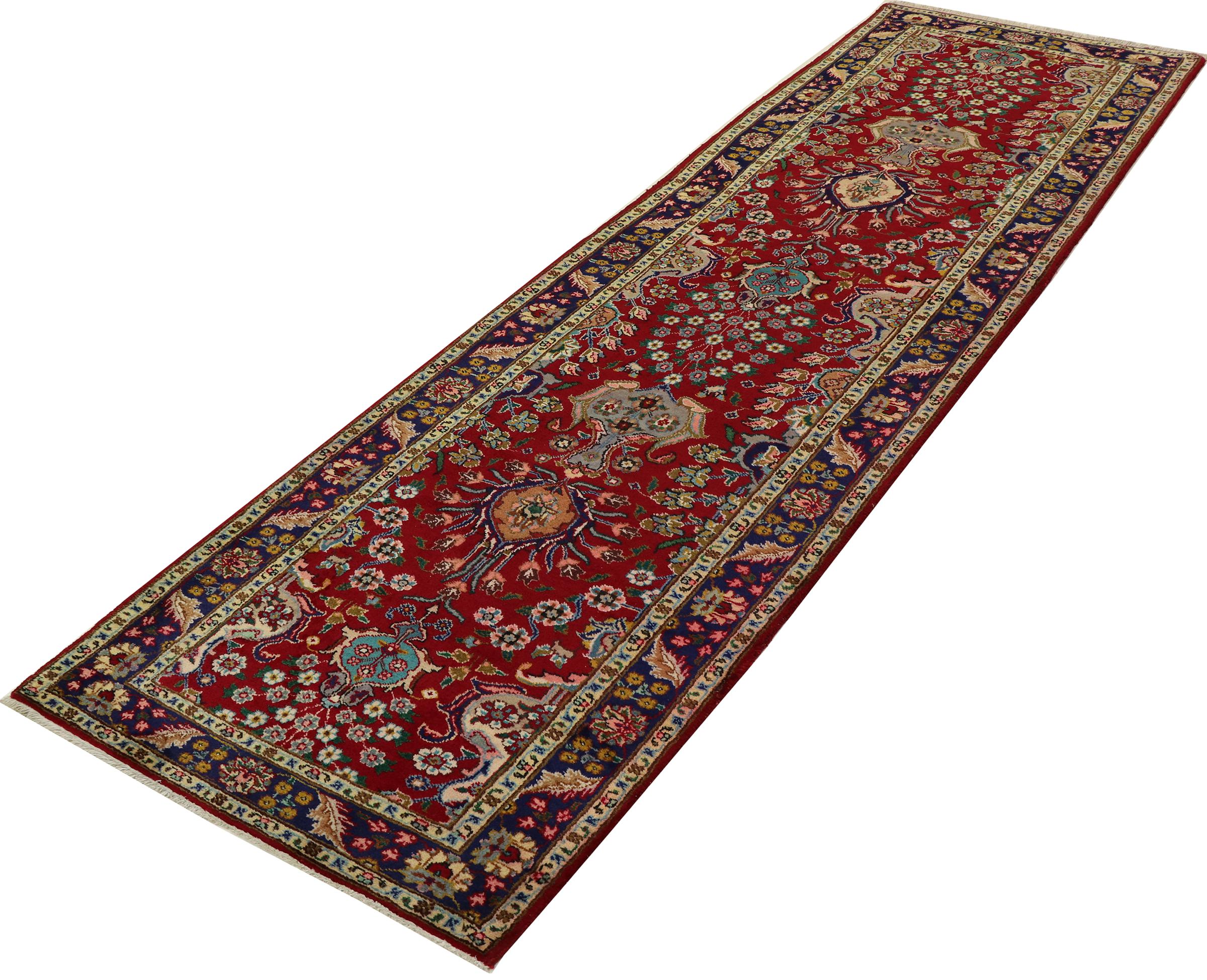 Rug ID: 303934004077384 Size: 9'9"x2'8" ft Thickness: ap. 0.2 in Knot density: 129 - 161 / square inch Manufacturing: Knotted by hand Pile: Handspun wool Warp: Cotton Origin: Persia / Iran Age: New Weight: ap. 18 lb Also know as Tabris, Tabriz, Tebris, Tebriz, Täbris, Village In stock: Unique - Only 1 in stock