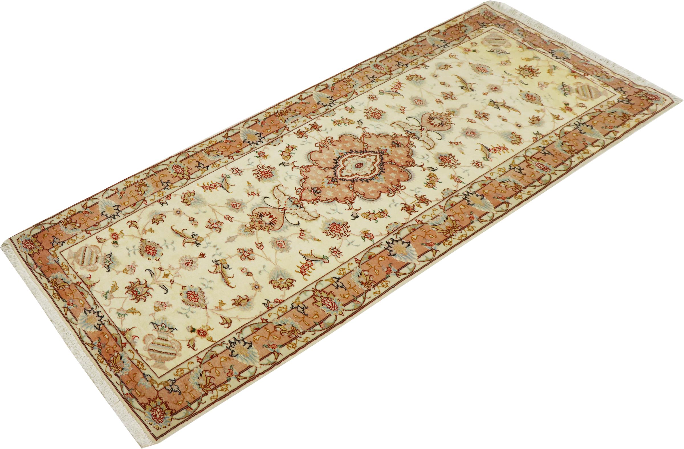This Tabriz originated from the city Tabriz in Persia. It is of a more coarse quality than a 50Raj or higher classifications. This rug has been made of soft sheep wool and dyed by natural colors. Tabriz rugs benefit from a great reputation due to their centuries old tradition in the most sophisticated craftmanship.