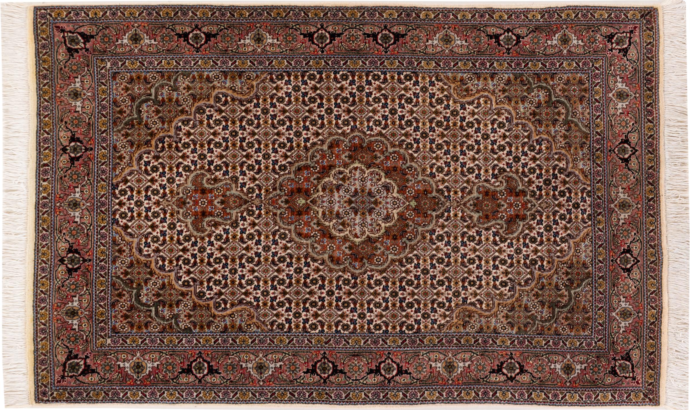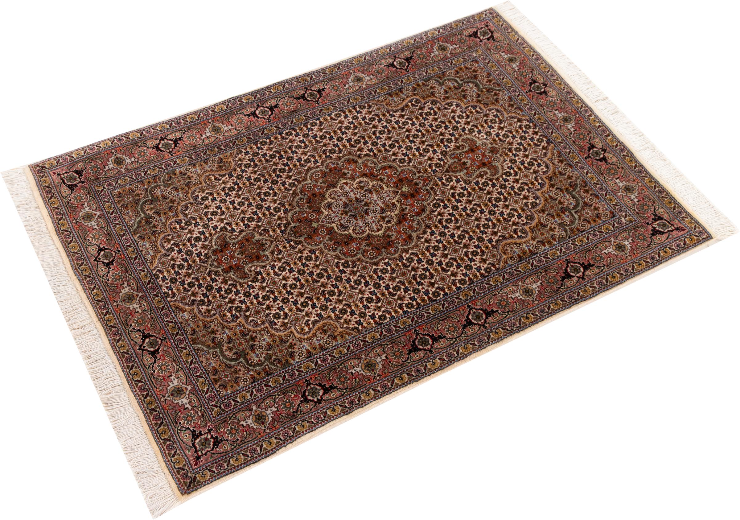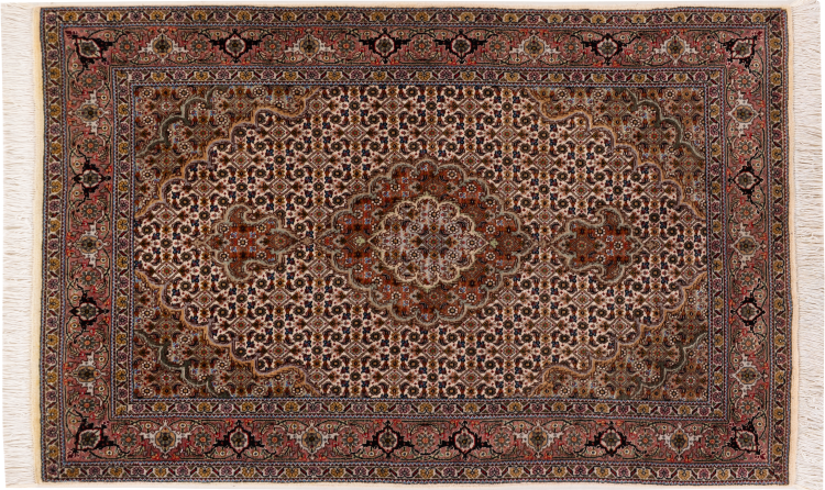 Rug ID: 30699300105523 Size: 4'0"x2'7" ft Thickness: ap. 0.28 in Knot density: 284 - 316 / square inch Manufacturing: Knotted by hand Pile: Wool with silk Warp: Cotton Origin: Persia / Iran Age: New Weight: ap. 7 lb Also know as Tabriz, Tabris, Täbris, Tebriz, Tebris, 40Raj, 50Raj In stock: Unique - Only 1 in stock
