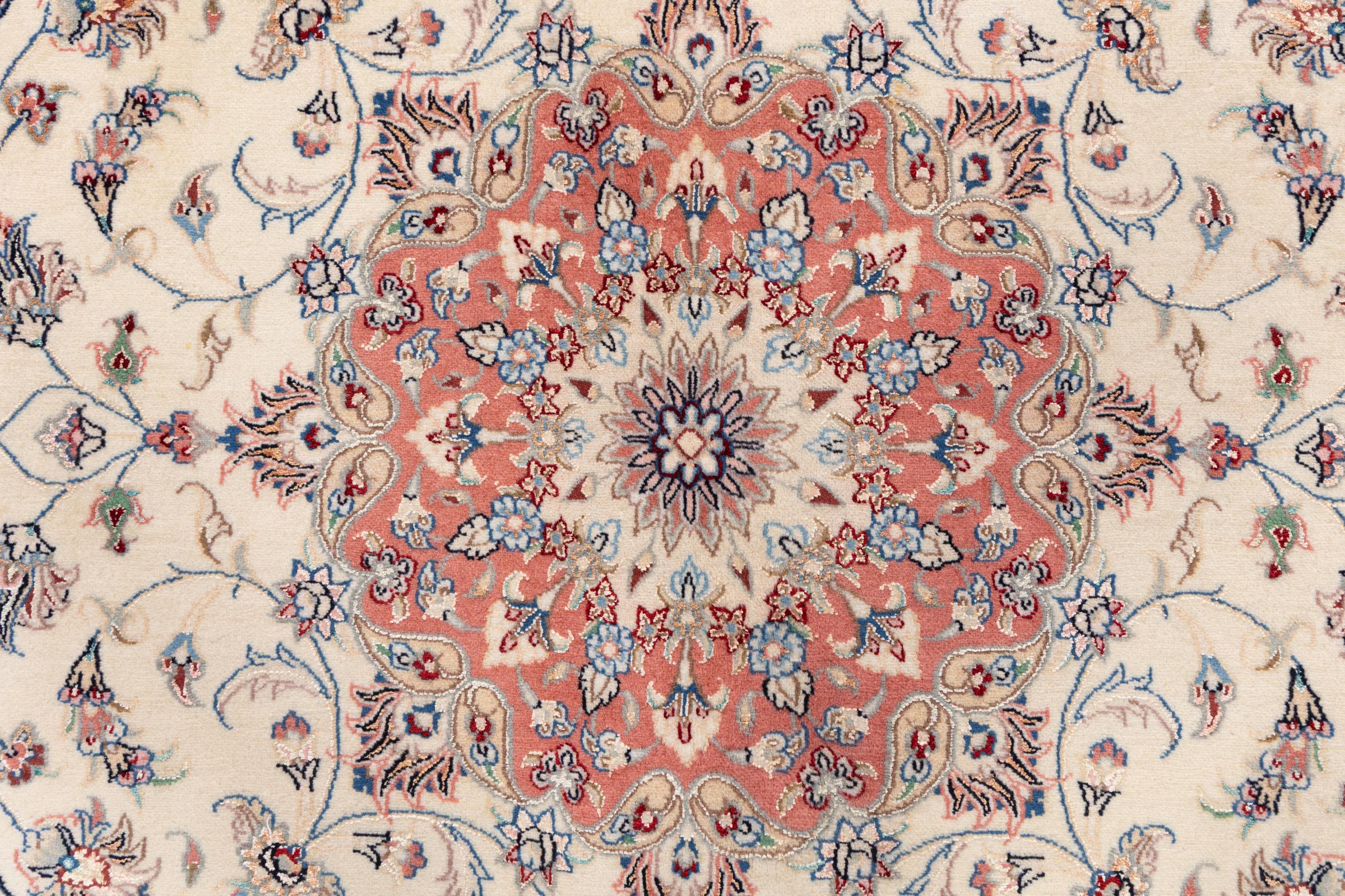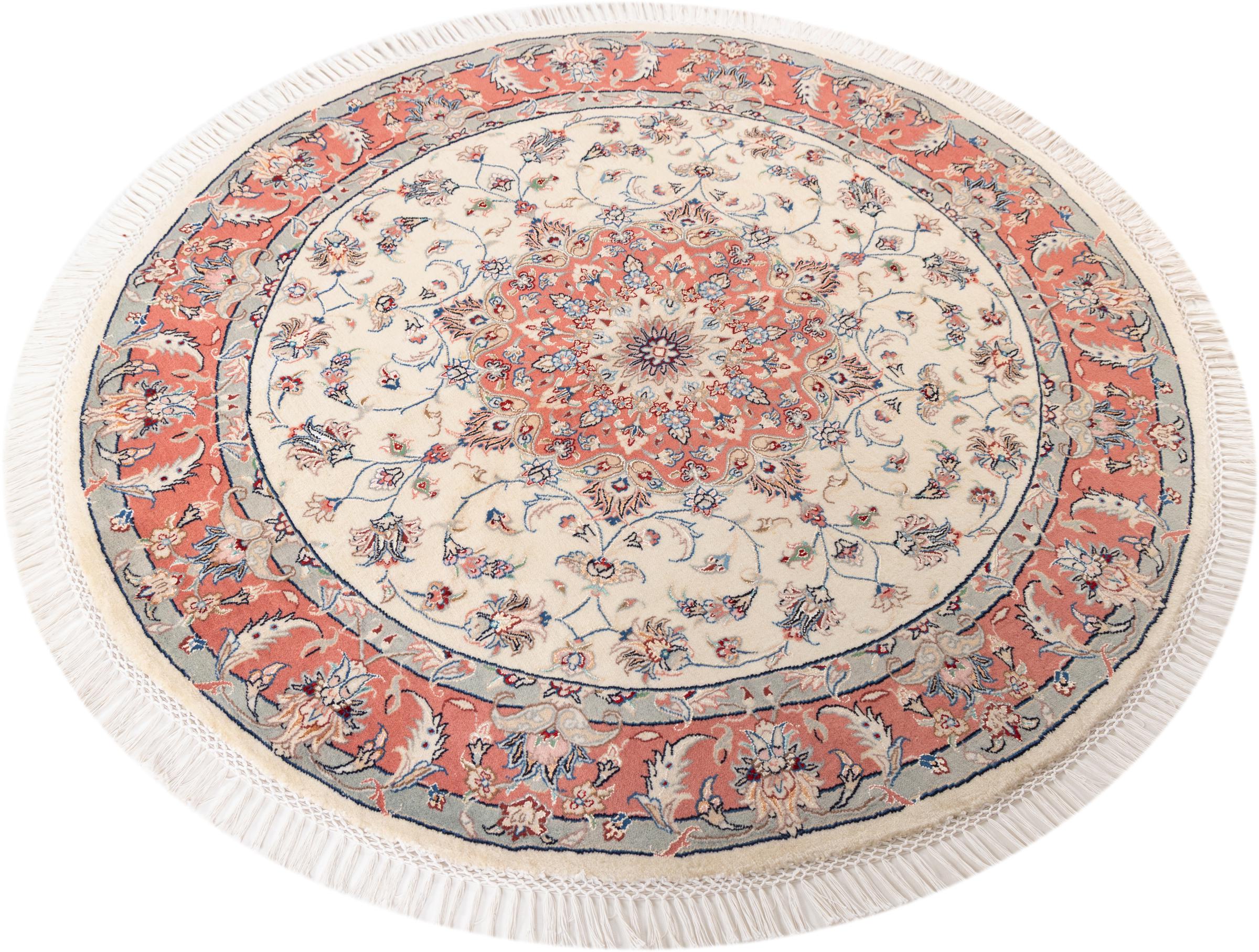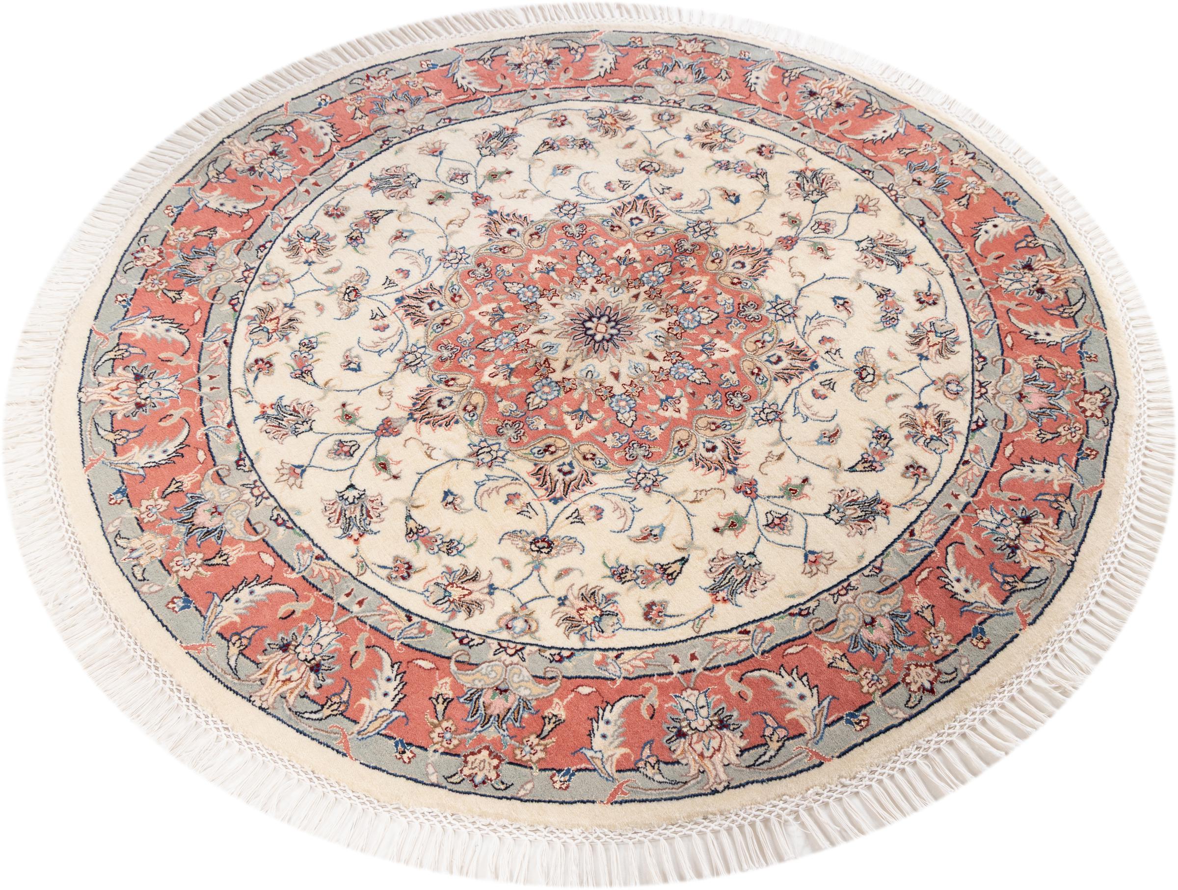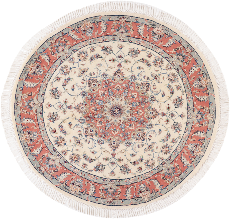 Rug ID: 442660042 Size: 5'0"x5'0" ft Thickness: ap. 0.31 in Knot density: 291 - 323 / square inch Manufacturing: Knotted by hand Pile: Wool with silk Warp: Cotton Origin: Persia / Iran Age: New Weight: ap. 15 lb Also know as Tabriz, Tabris, Täbris, Tebriz, Tebris, 40Raj, 50Raj In stock: Unique - Only 1 in stock